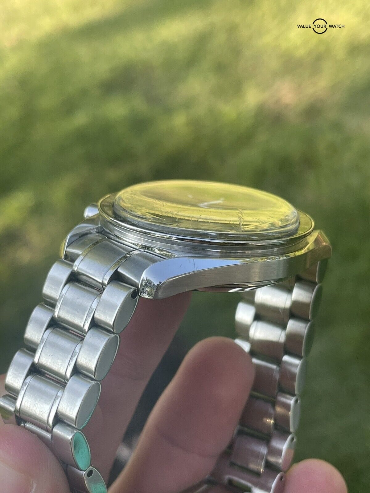 OMEGA Speedmaster Professional Moonwatch Chronograph 3570.50. Omega Speedmaster Professional Moonwatch Reference: 3570.50 Case Size: 42mm Condition: Watch is preowned and shows wear throughout — including in Hesalite crystal. Most notable scuff is at around 9-10. A polish and polywatch would clean this up nice. Watch runs excellent. See pics |