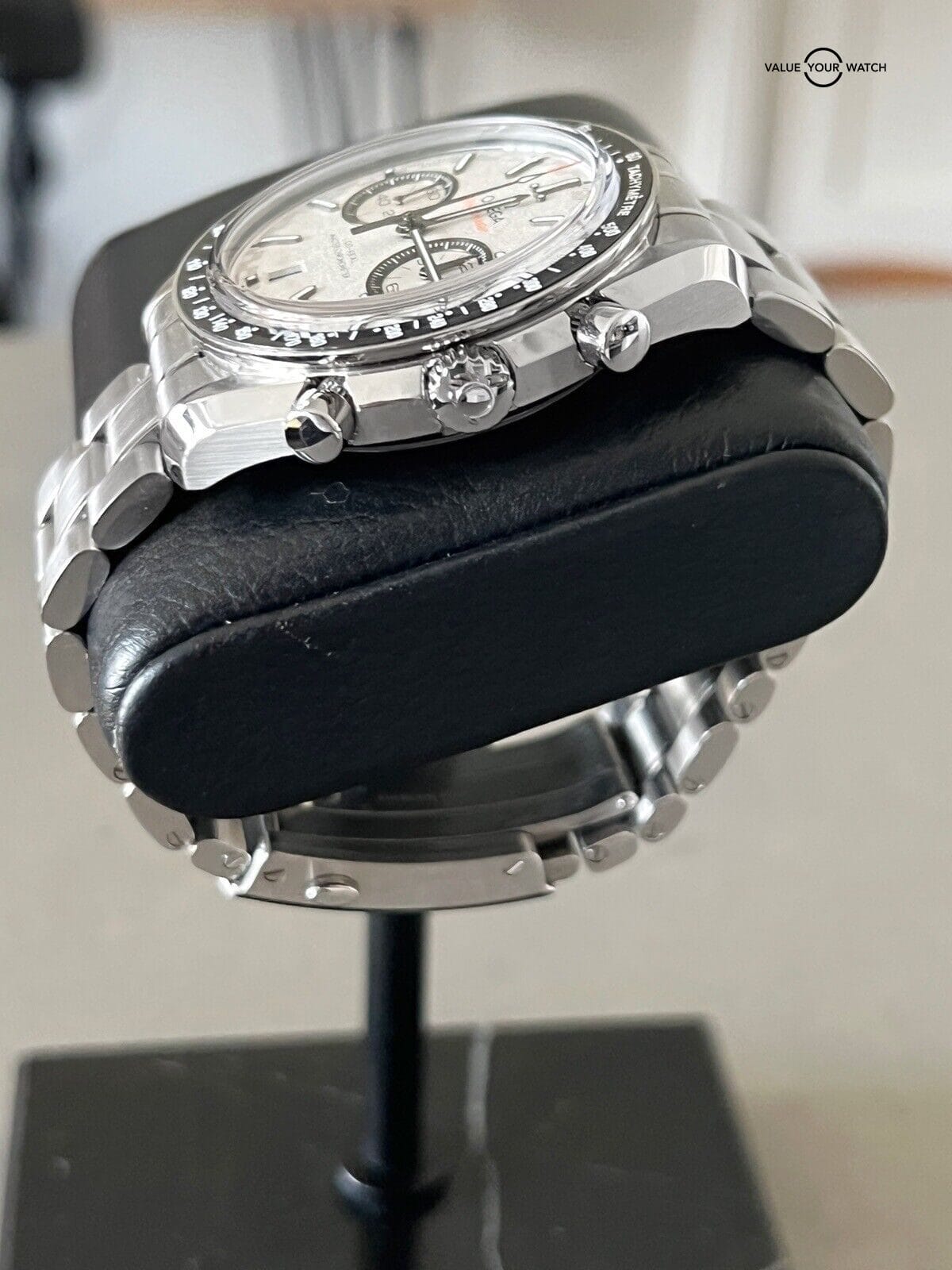 The OMEGA Speedmaster Racing Chronograph comes with its original box and papers, making it a valuable addition to any collection. This wristwatch is ideal for men who appreciate classic style and superior craftsmanship. Don’t miss the chance to own this stunning timepiece!
