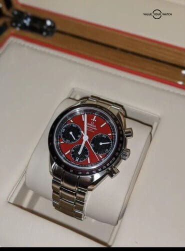 Comes with OEM rubber strap with black “Speedmaster” text and clasp.