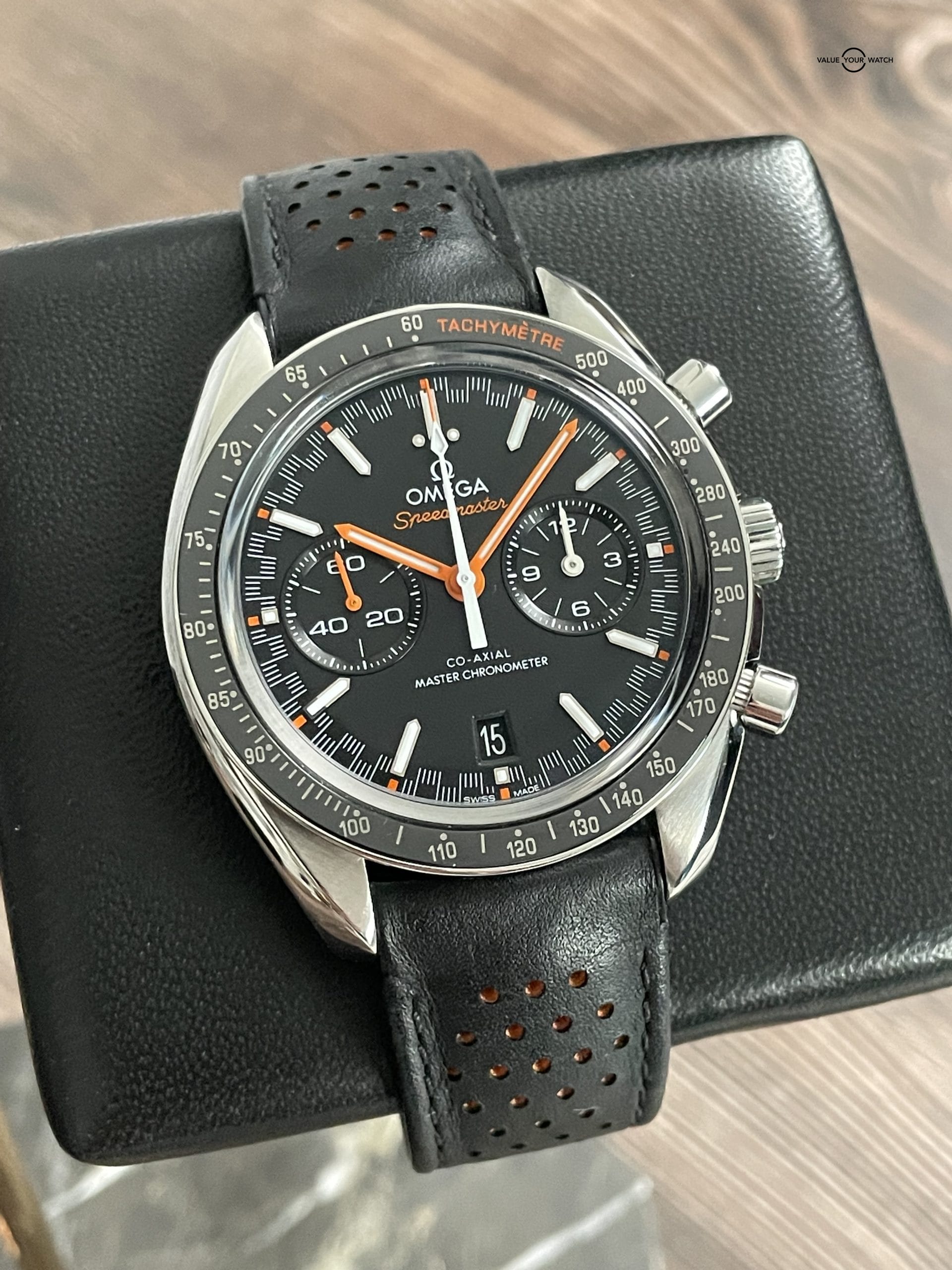 Omega Speedmaster Racing Co-Axial Master Chronometer Chronograph 44mm Black Orange Dial – 2021 Full Set!