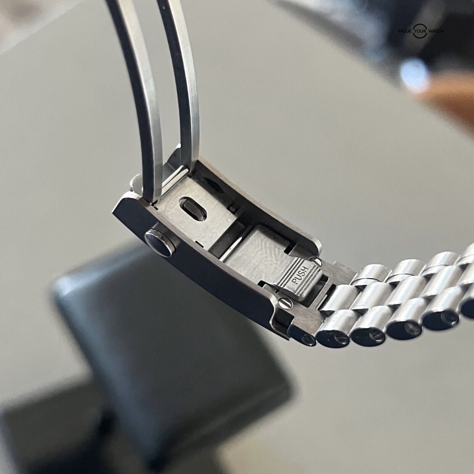 This watch comes both with the original sailcloth as well as an OEM Speedmaster metal bracelet.