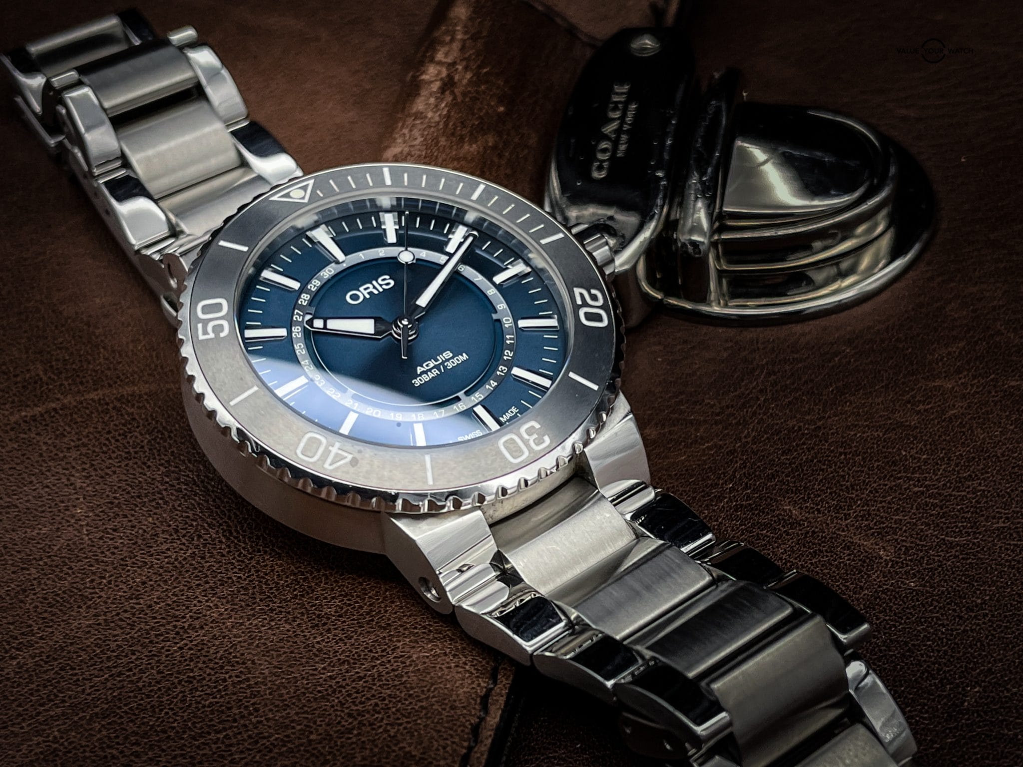 This piece had a limited run of 2,343 pieces. These days the watch is sought after by many collectors who prize the tungsten bezel insert, the robust 43.5mm case, and the rich yet not-too-saturated blue dial, keeping in line with its fluvial theme.