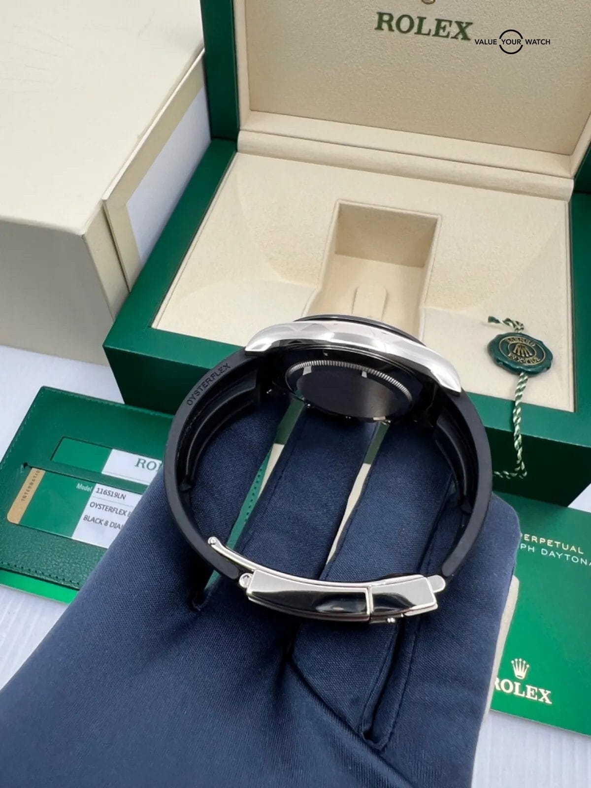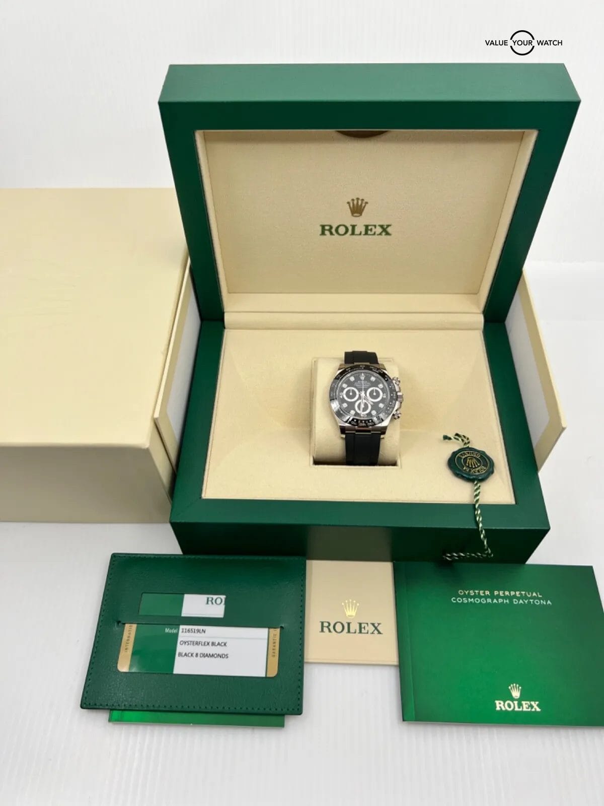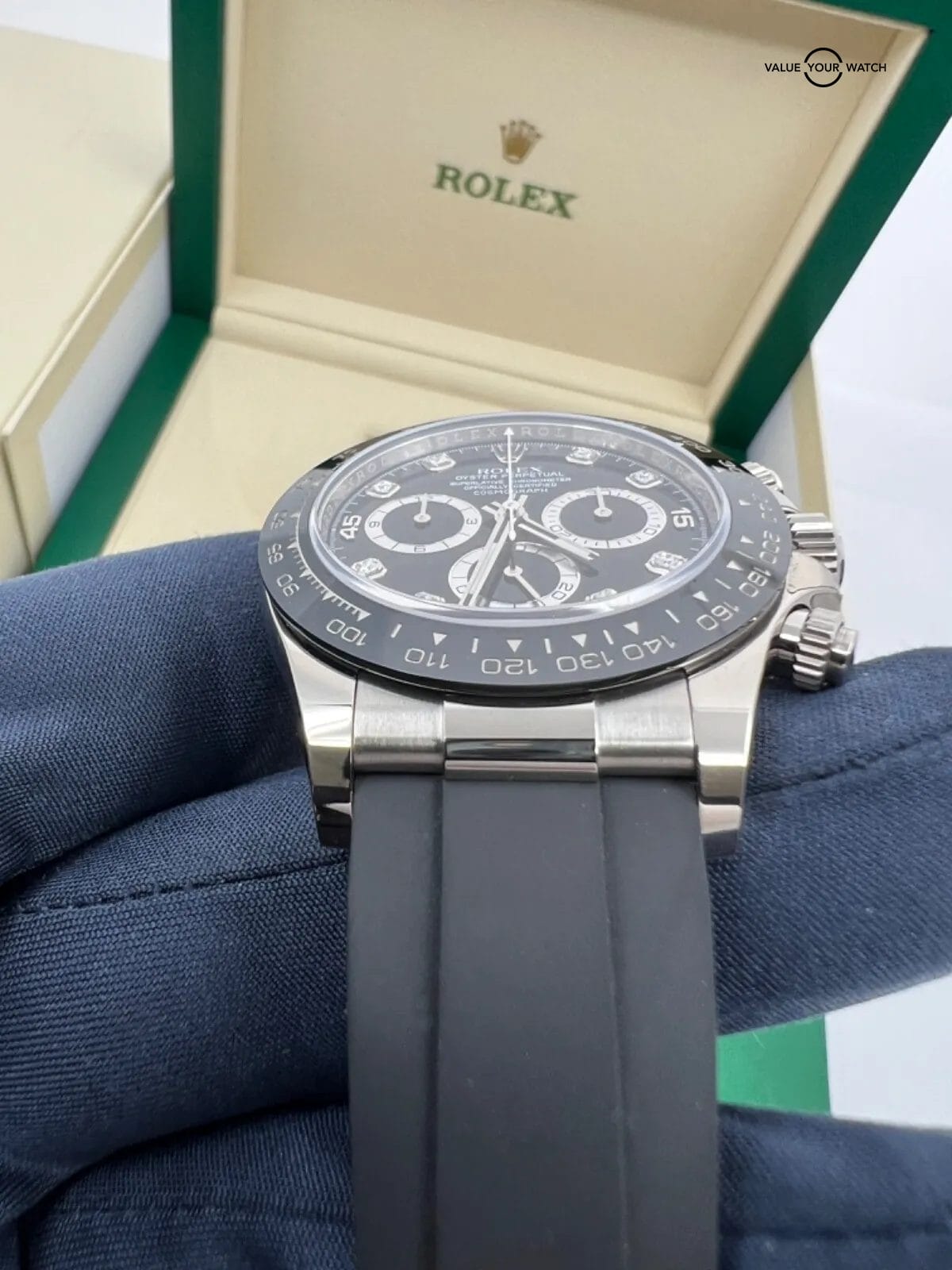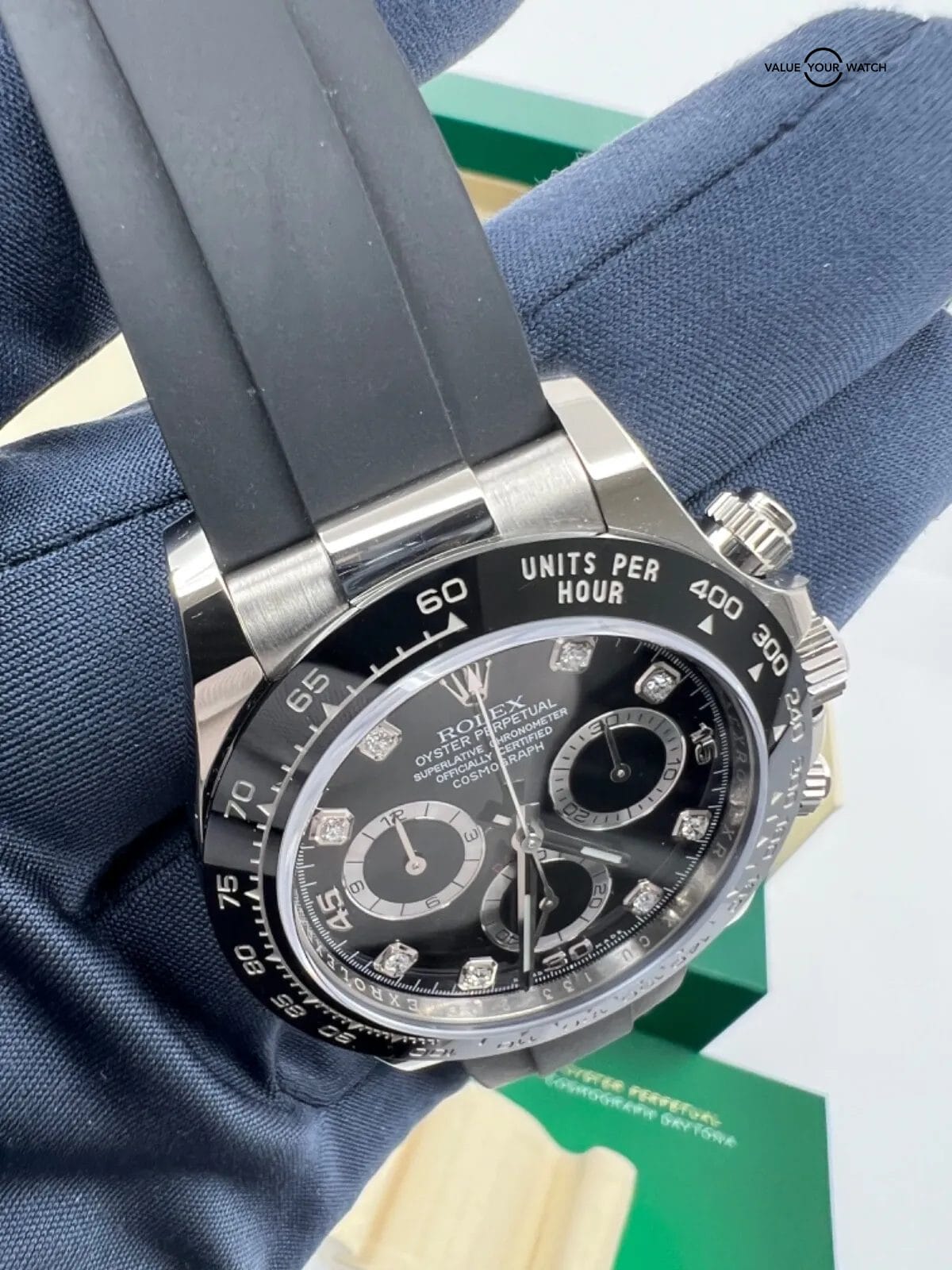 Specification: 2019 Mint Box and Papers Black Diamond Dial 18k White Gold Rolex Daytona