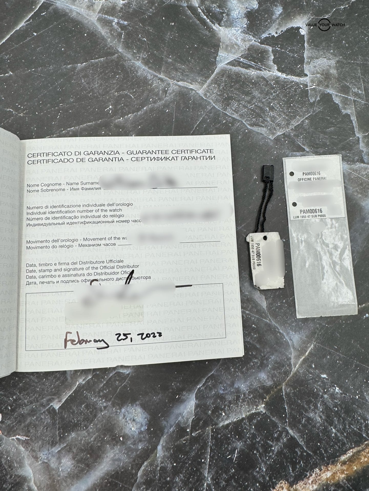 Box & Papers: Yes. Includes inner and outer box. Along with the original Panerai booklets and papers dated February 25, 2022.