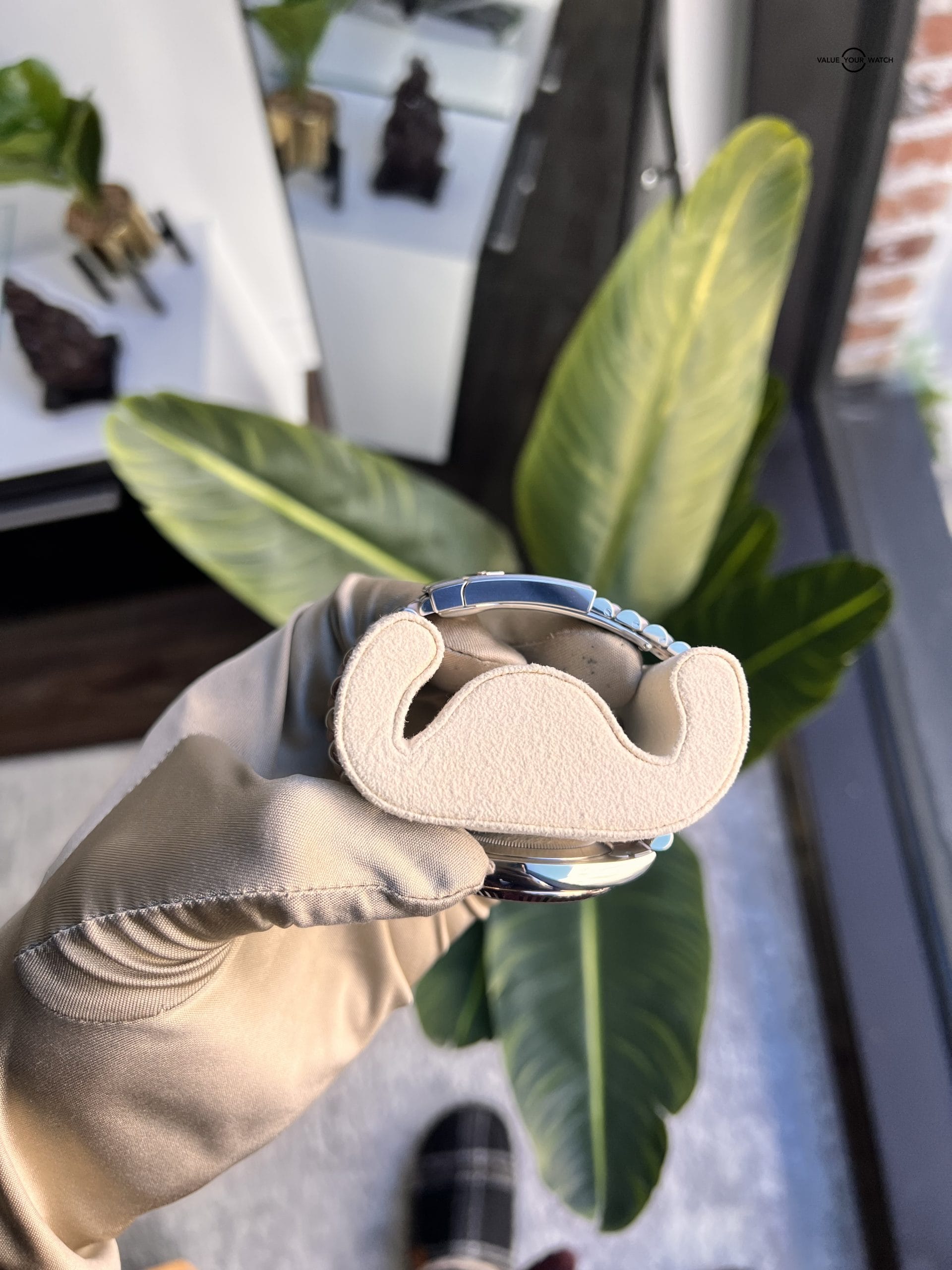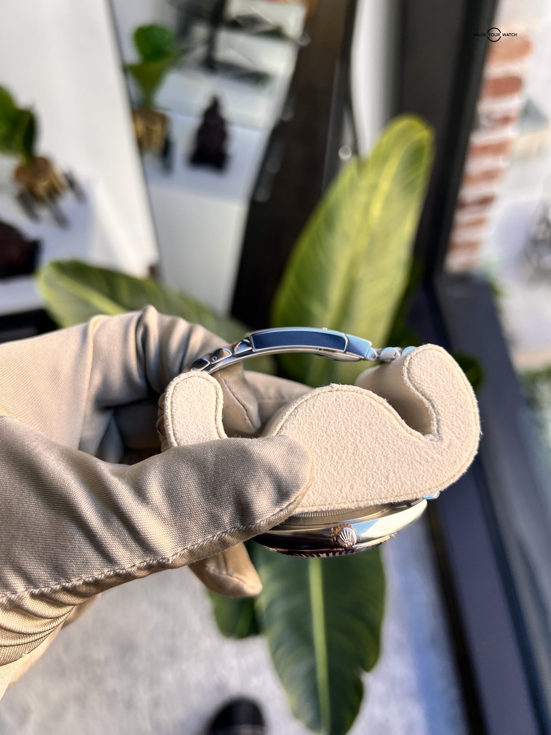 The timepiece is in an almost flawless state and running great. It is also still under manuafacturer warranty for 5 years from Rolex. Comes as a very complete set that includes the full links, hang tags (white and green), watch tag, warranty card and sleeve and booklets.