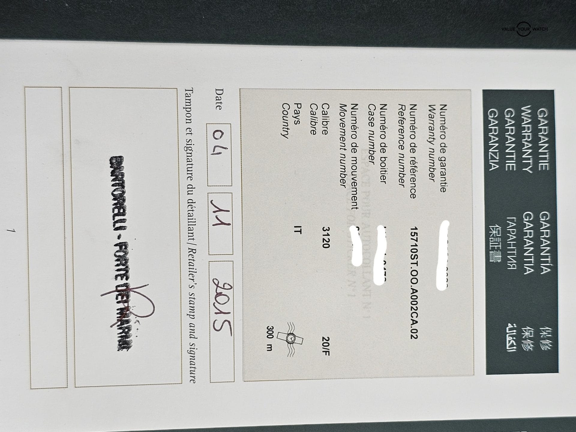 Timepiece is in amazing shape and comes as a full set with a warranty book dated 2015