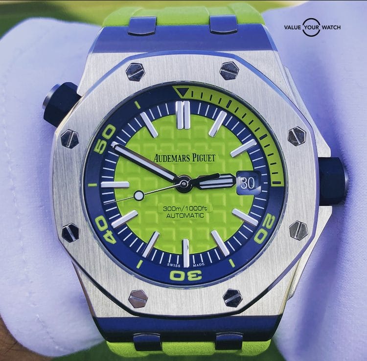 Limited Edition Audemars Piguet Royal Oak Offshore Diver Watch Lime Green Funky Color Edition 15710ST.OO.A038CA.01