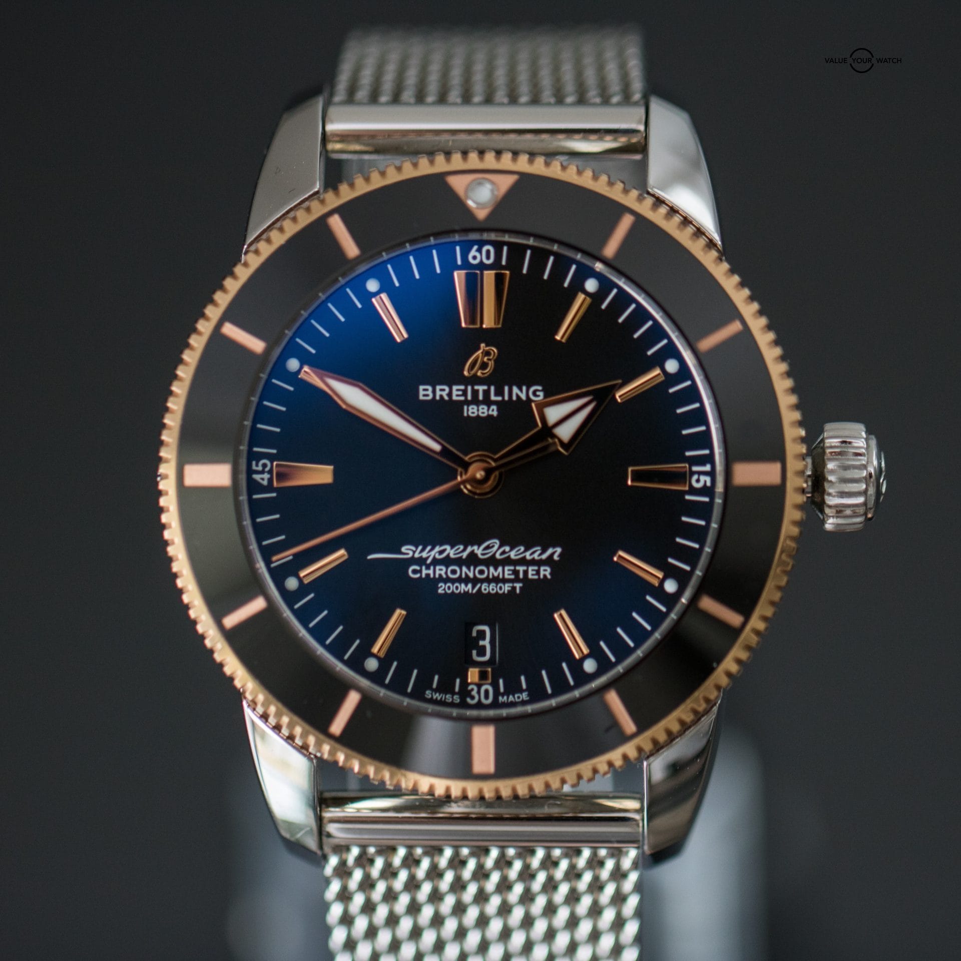 Breitling Superocean Heritage ll B20 44mm Gold Bezel Black Dial, Mesh Bracelet