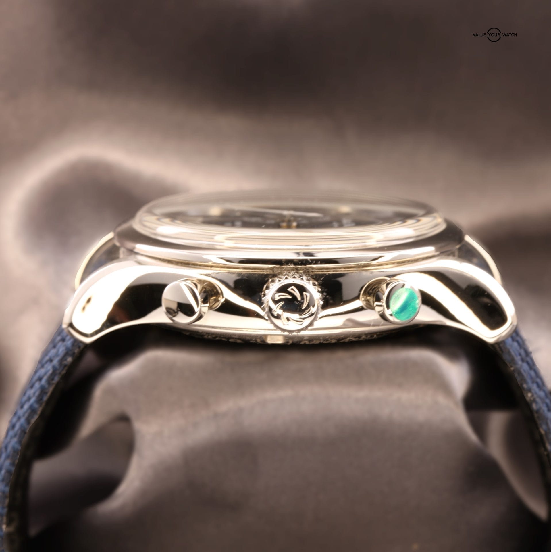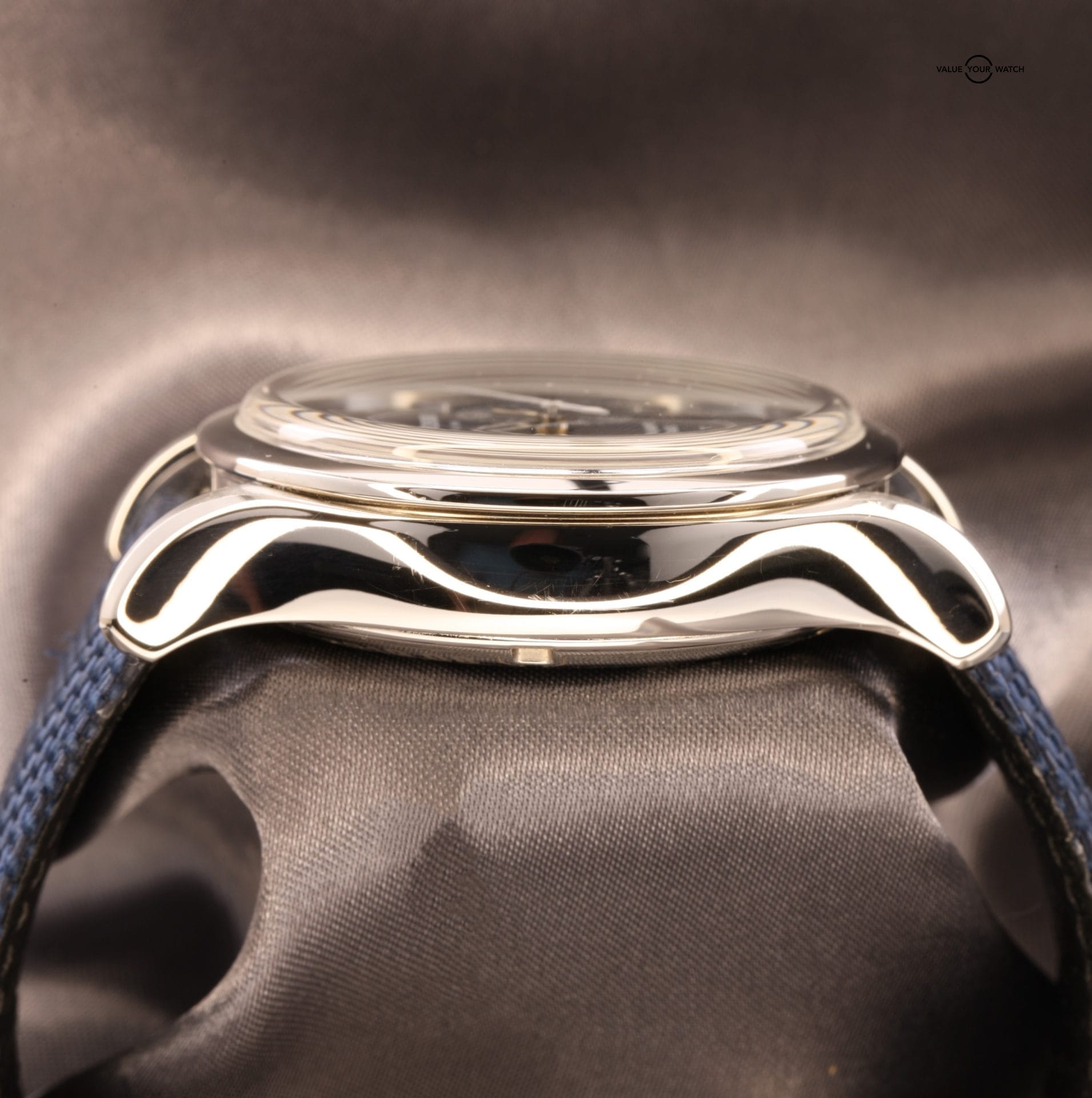 This timepiece is presented in excellent, preowned condition. It comes triple boxed with a travel case and manual. The strap has some minor signs of wear.