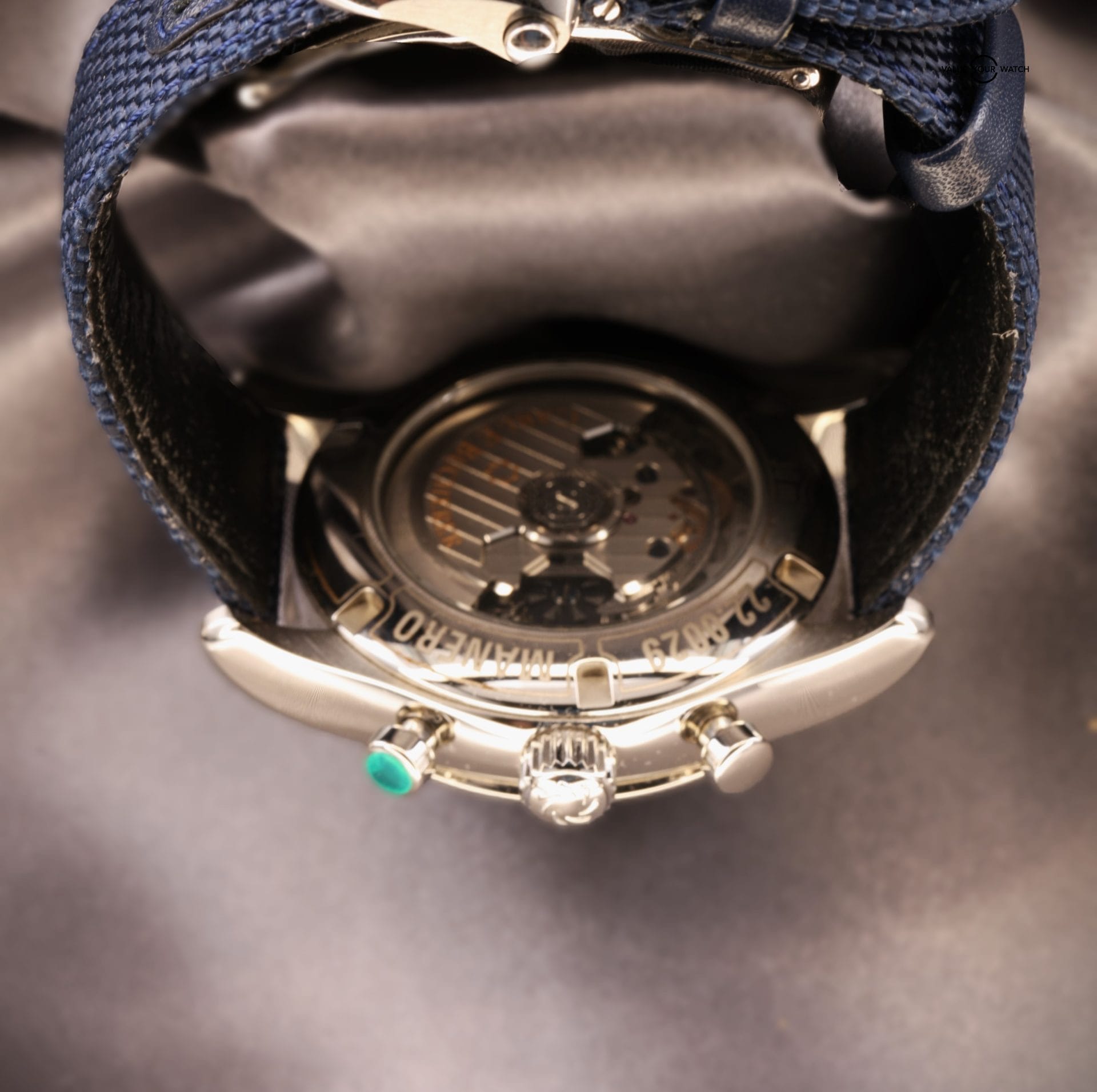 Introducing the first-class Manero Flyback timepiece, crafted by the esteemed founder of watchmaking in Lucerne. This exceptional watch embodies a perfect blend of luxury and aesthetic allure. Encased in polished steel, it houses a flyback chronograph movement with a transparent case back for a glimpse of its inner workings. The striking blue dial, featuring a combination of matte and glossy finishes, beautifully contrasts with the luminous silver arrow hour markers. It’s a timepiece that commands attention and admiration with every glance, whether checking the time or simply marveling at its beauty.