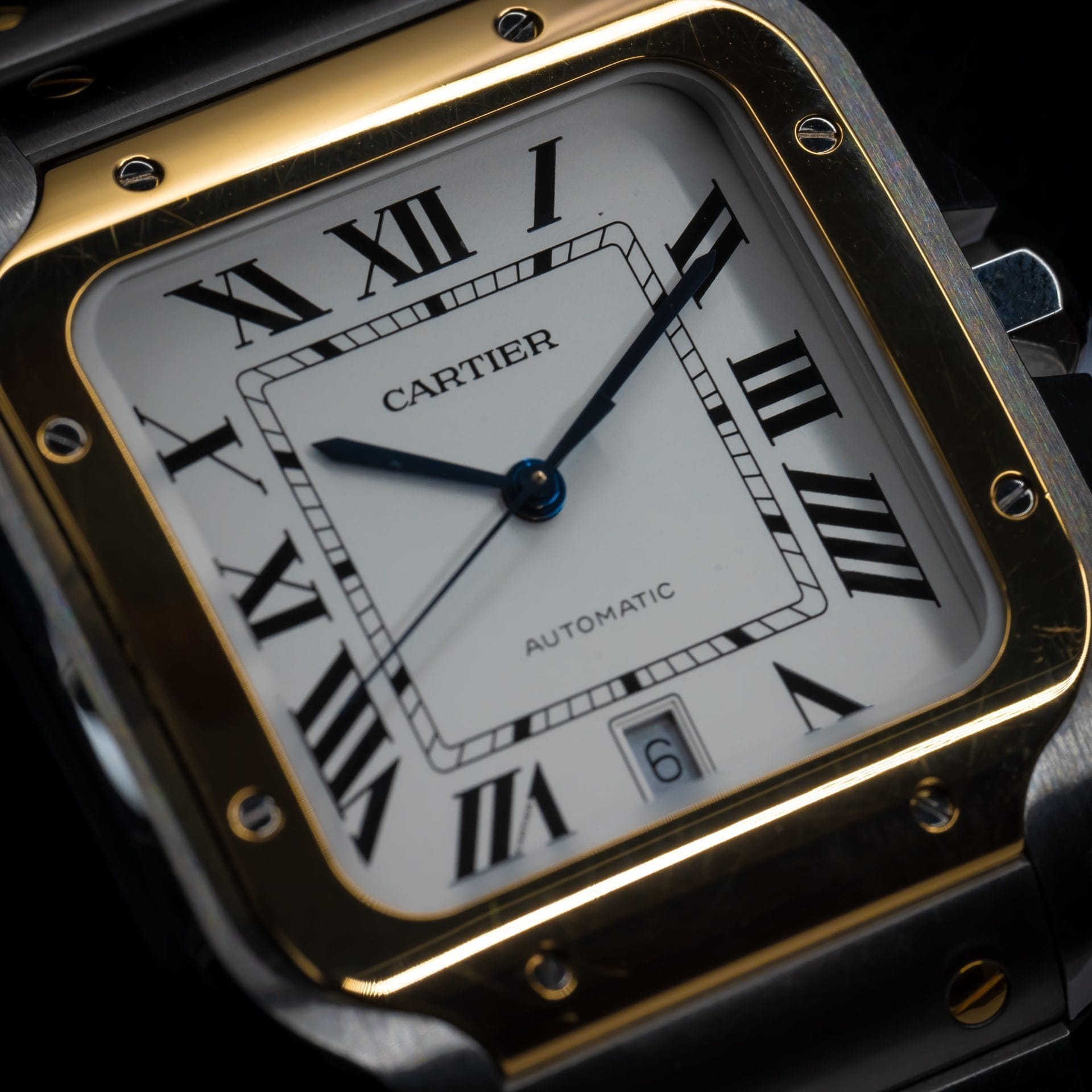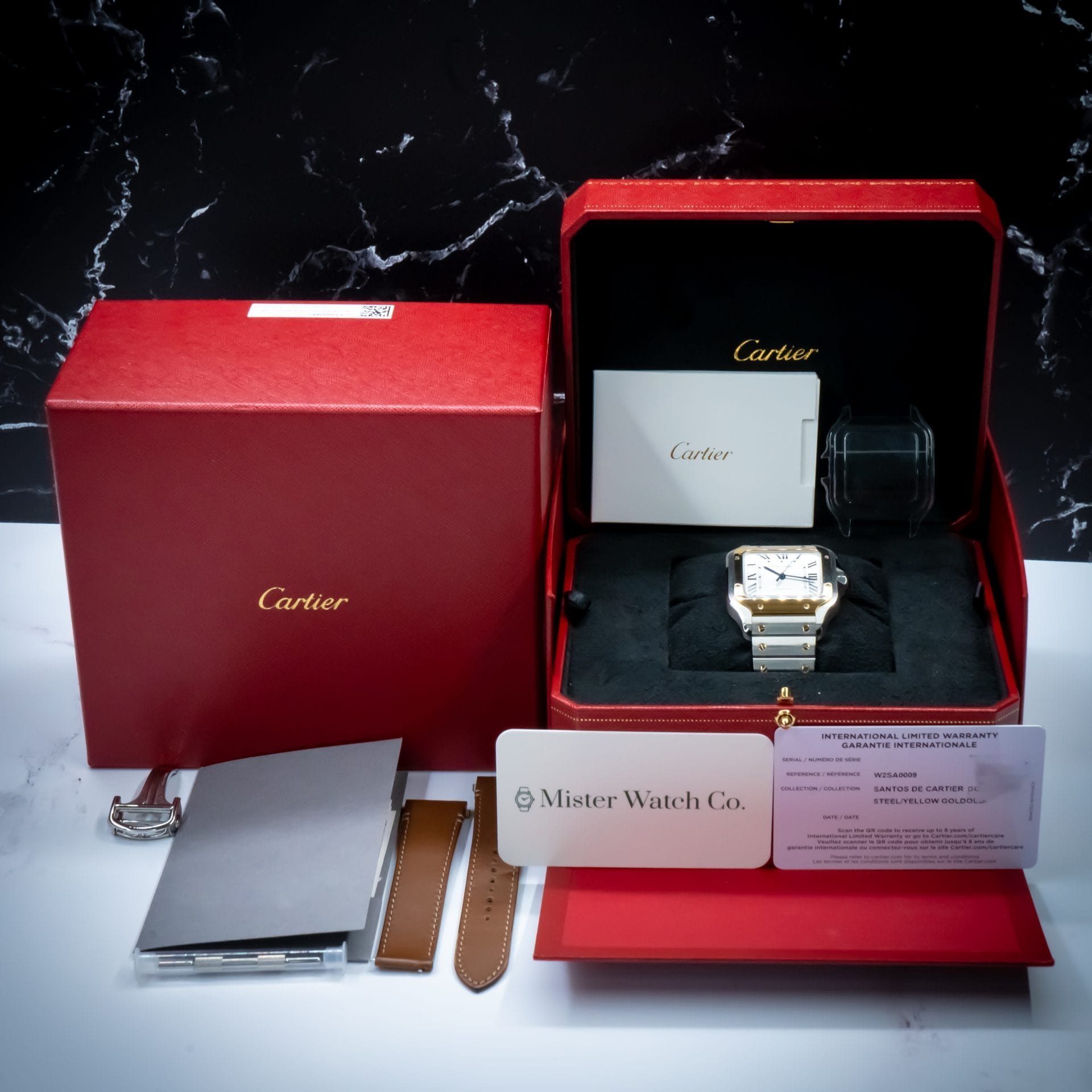 Cartier Santos Silver Dial 18KT Gold & Stainless Steel – W2SA0009 – Box & Papers