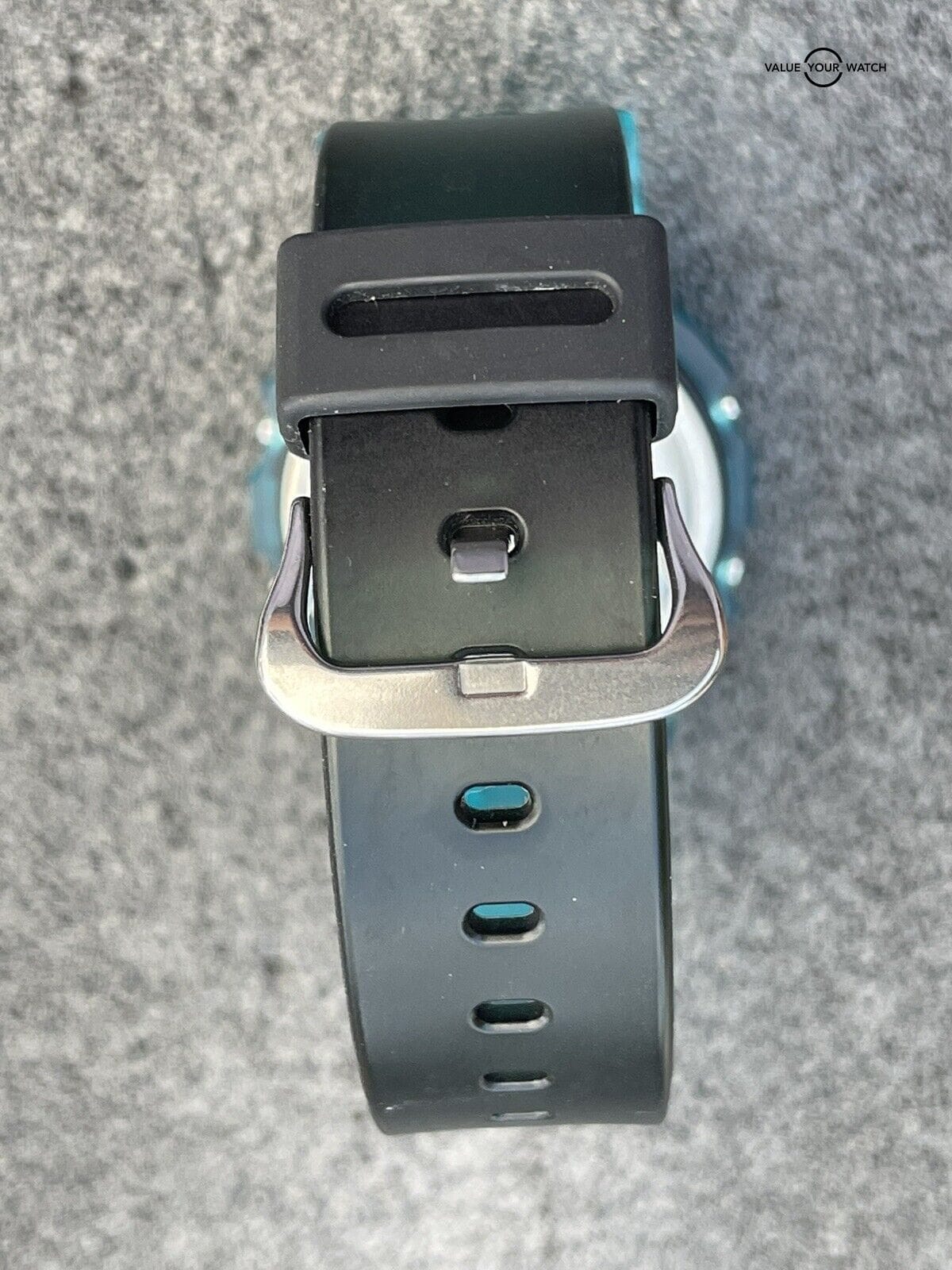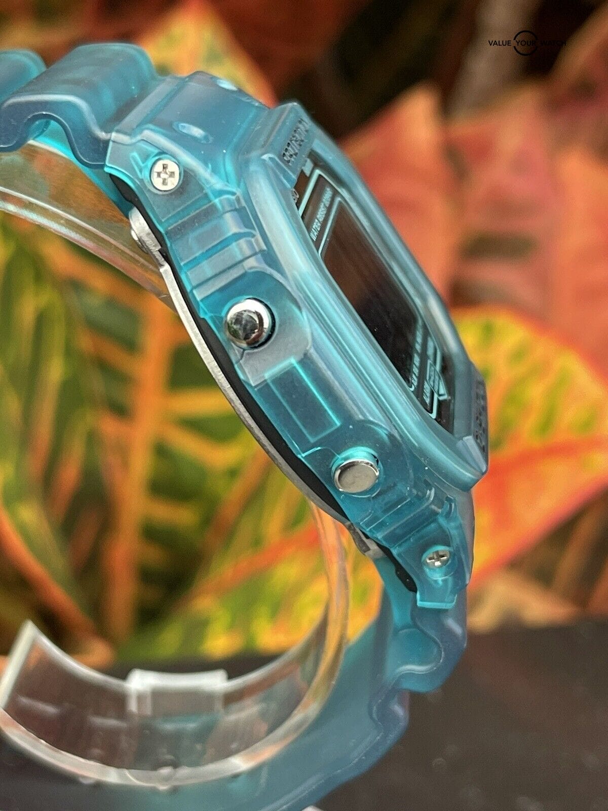 Here is a CASIO G-SHOCK DW-B5600G-2JF blue and black color way. This bluetooth enabled watch has the 3509 module. This watch is from an estate sale.