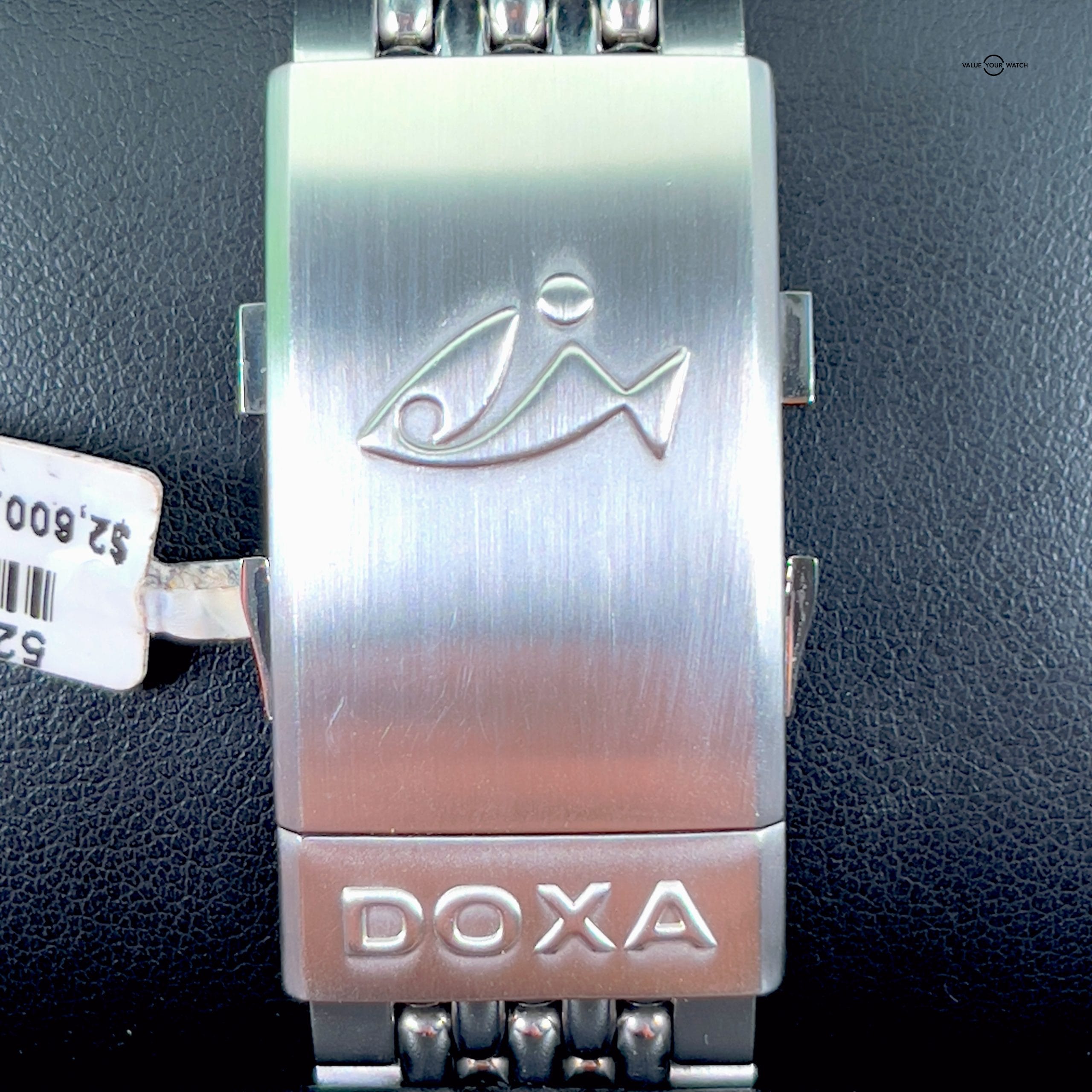 As a 50th Anniversary edition, this model includes special design elements and branding that celebrate Doxa’s diving legacy. The full set typically comes with the original box, warranty card, and documentation, adding to its collectability and value.