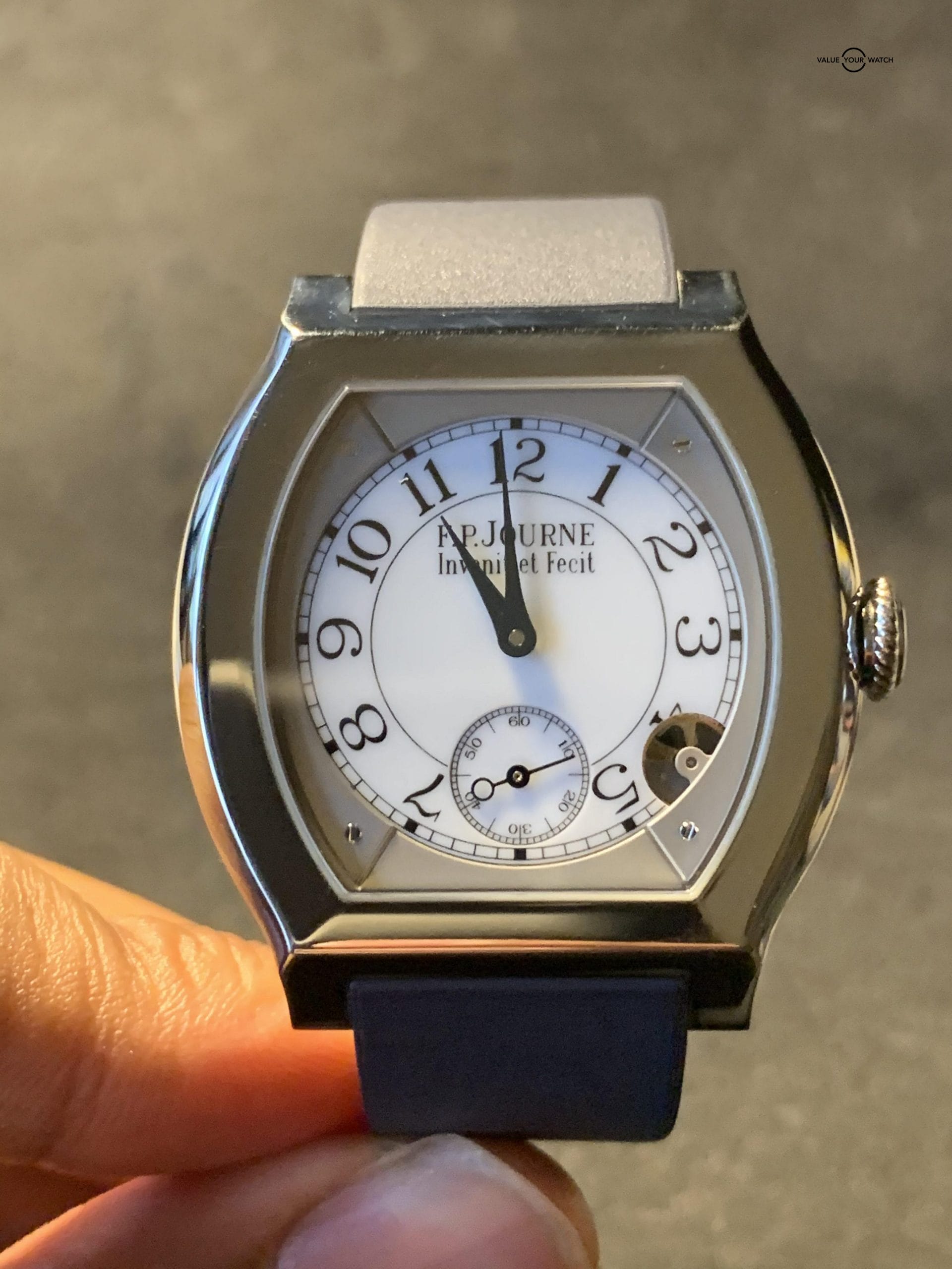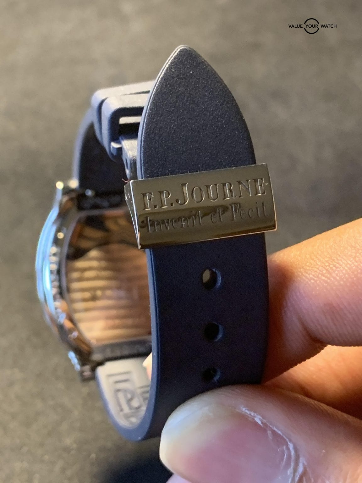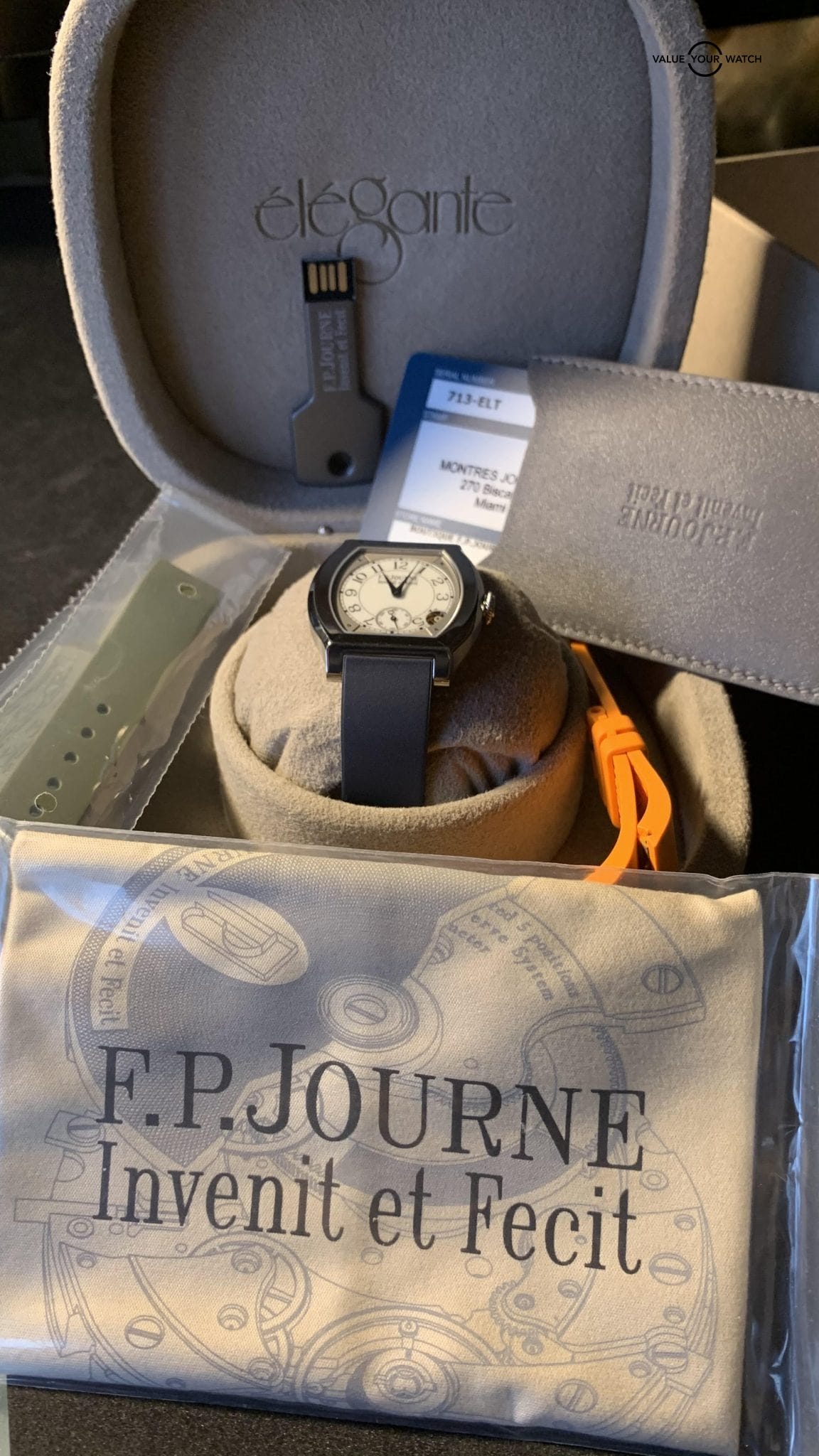 This Journe Elegante is 40mm and features the famed quartz movement and superluminova dial. It is like new and comes with 3 straps (navy, olive green, orange). Unattainable at boutiques, this model is likely to go up in value over the next year due to the low numbers Journe will produce this year.