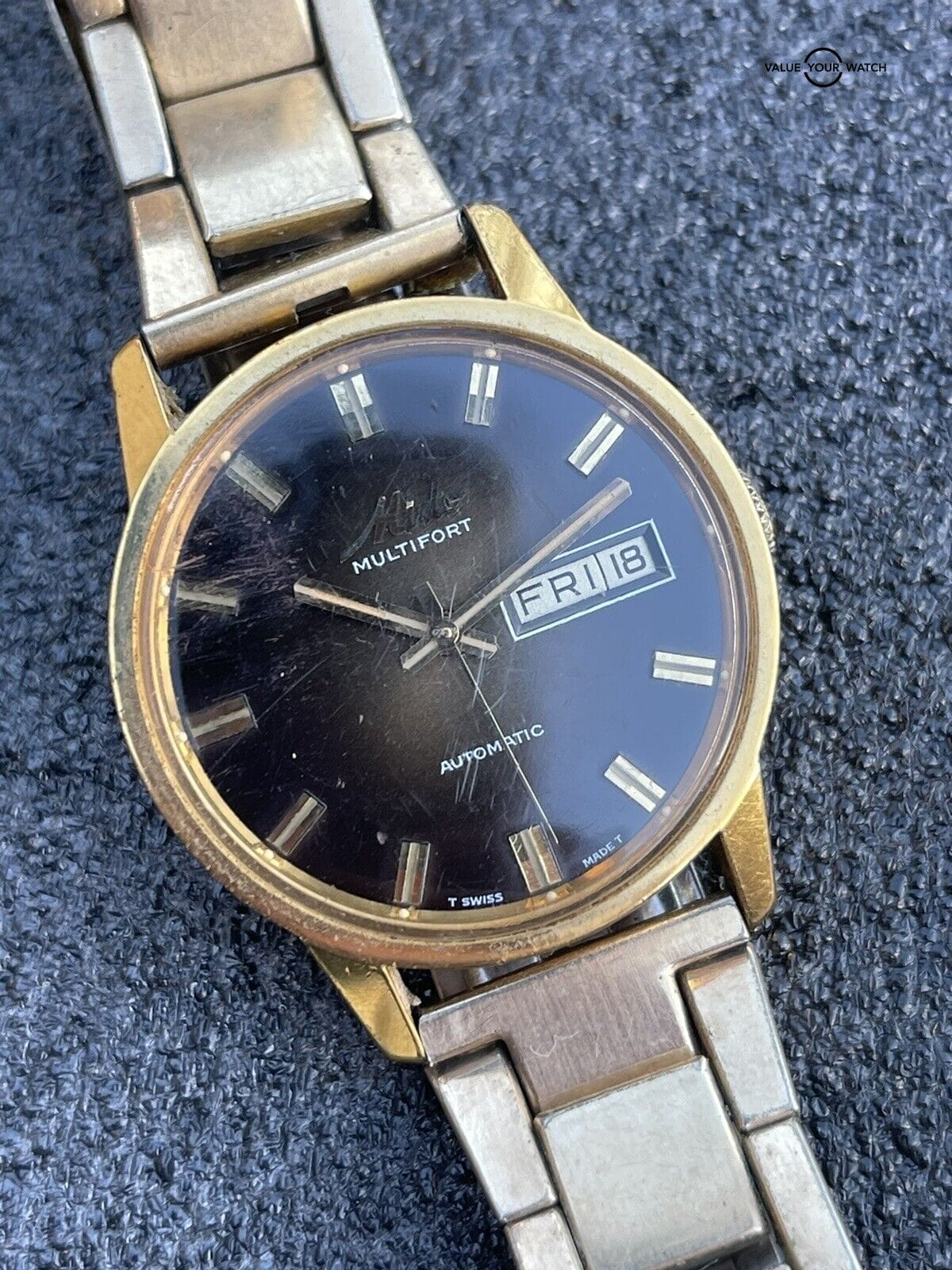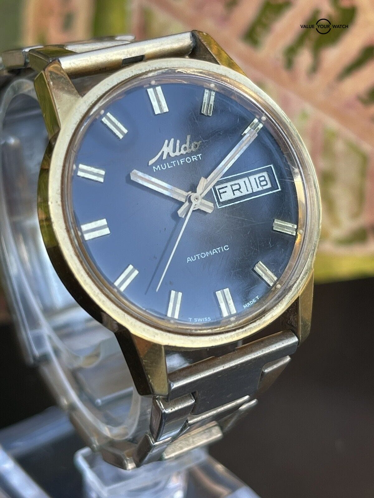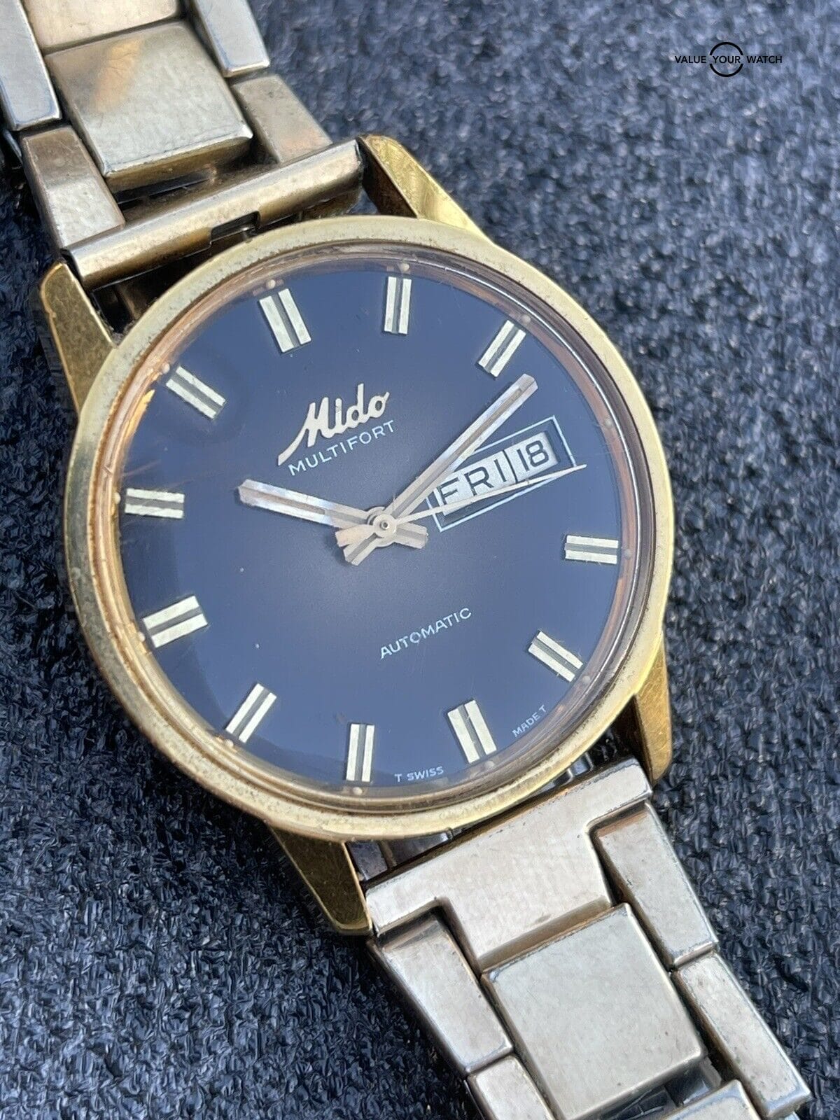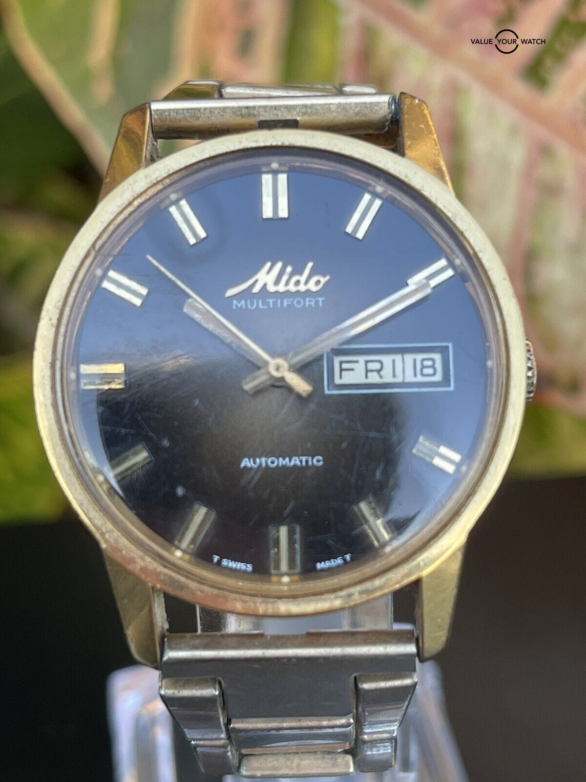 Here is a vintage Mido Multifort Automatic wrist watch with day date. This is from an estate sale and is running.