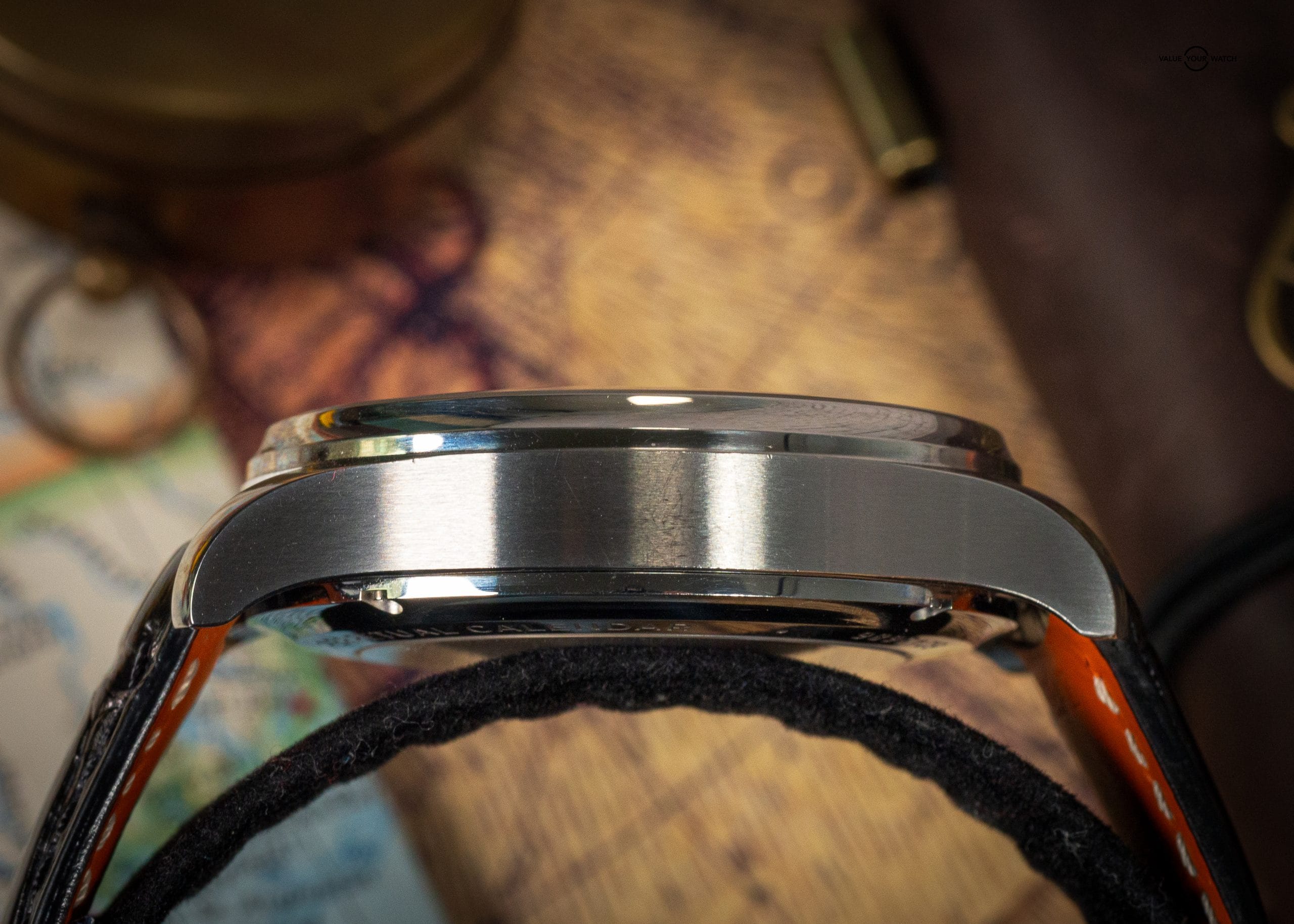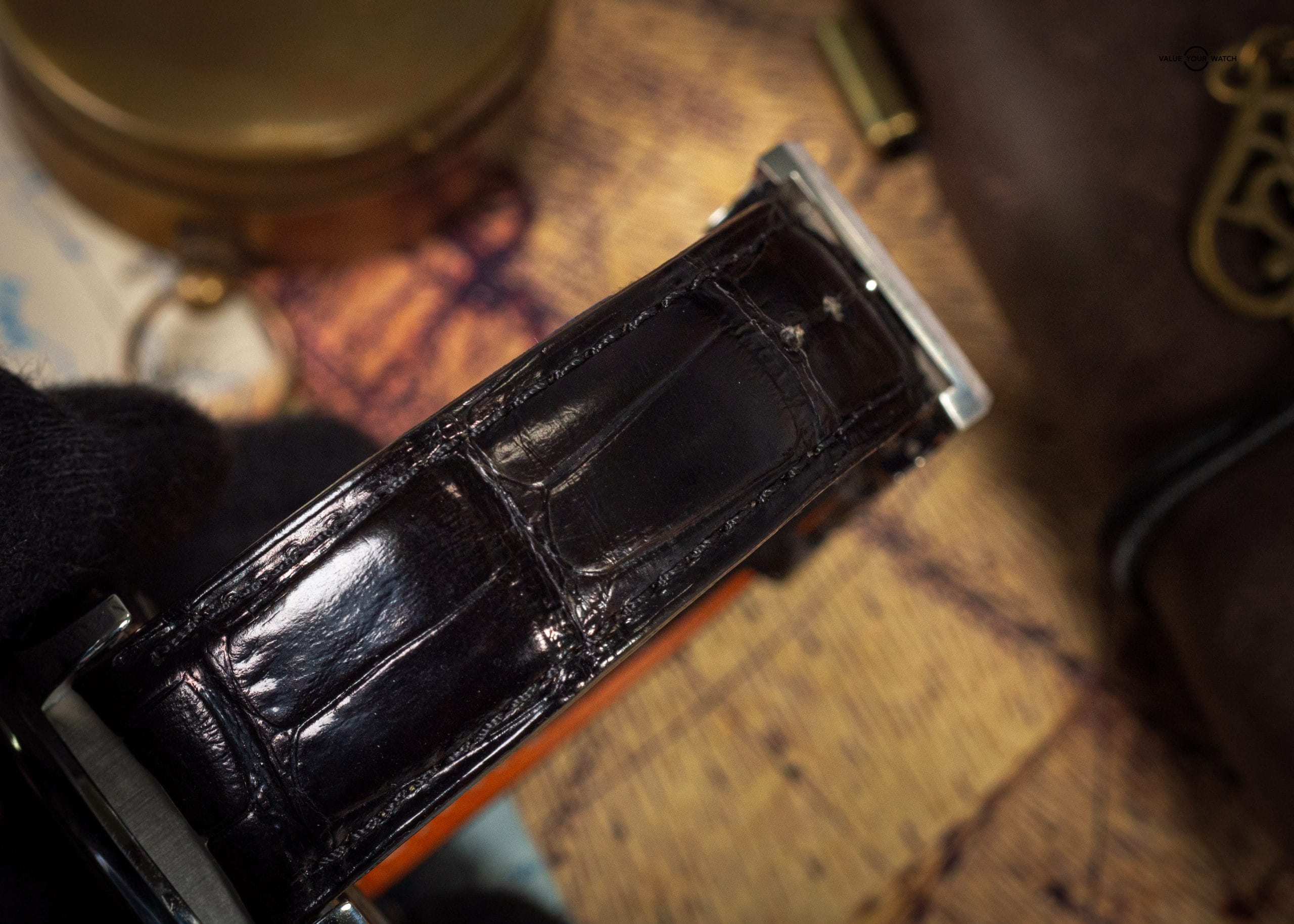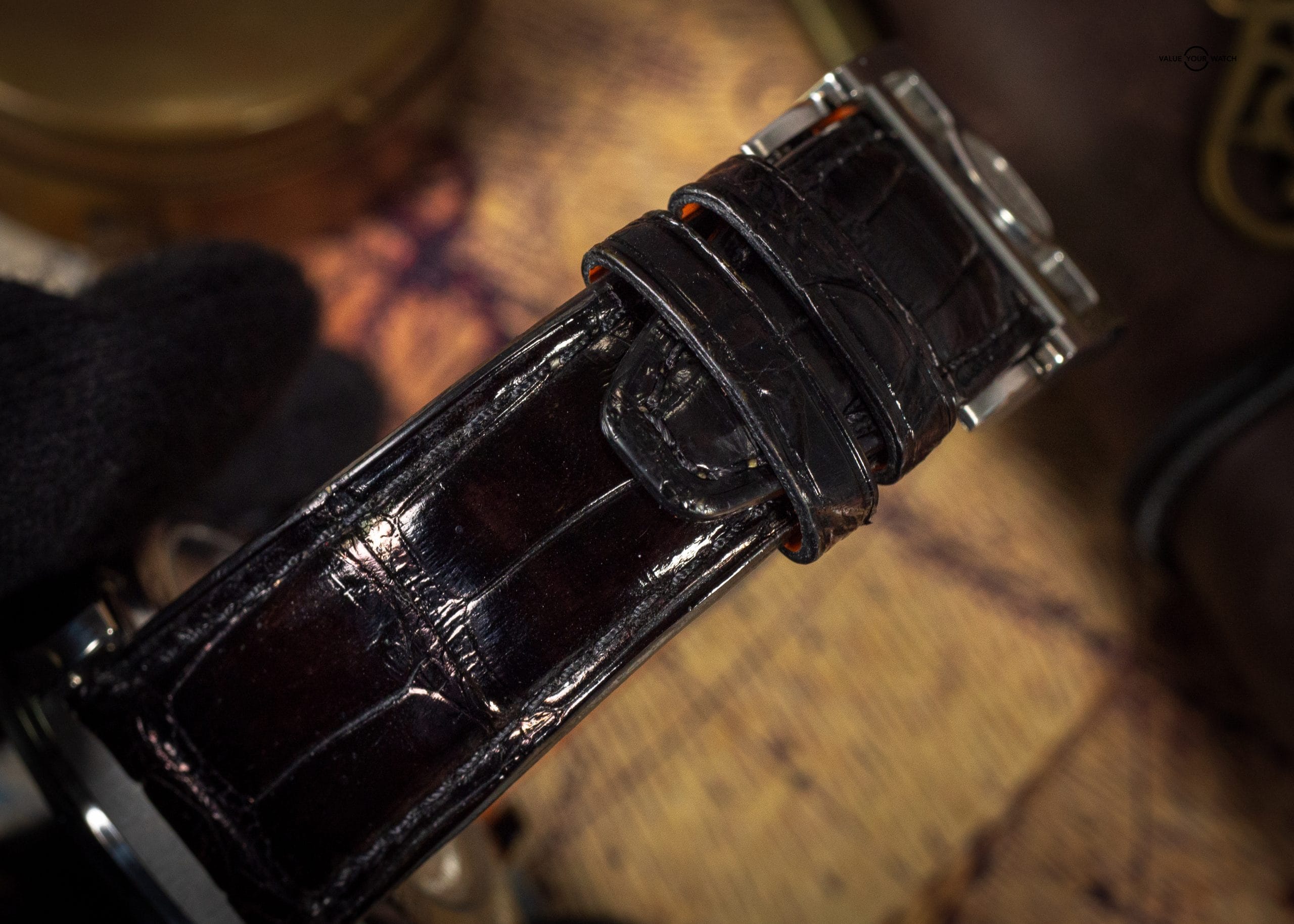 This is a “haute horology” personified with a movement mechanically programmed for 577 years! Complications include a date, day, & month wheel, along with a moonphase and leap year indicator that are all housed in a svelte 13.8mm thick case measuring 42.4mm. The rose gold hands and numerals complement the classy white dial and the 2-toned leather strap wears comfortably. All in all, this makes for one stunning dress watch that will no doubt impress for generations to come.