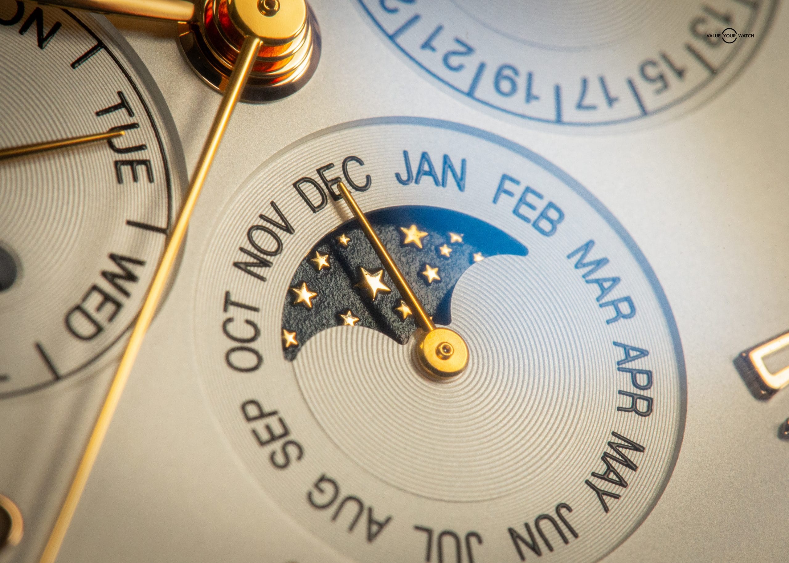 Complications – Date, day, month, leap year, and perpetual moon phase.