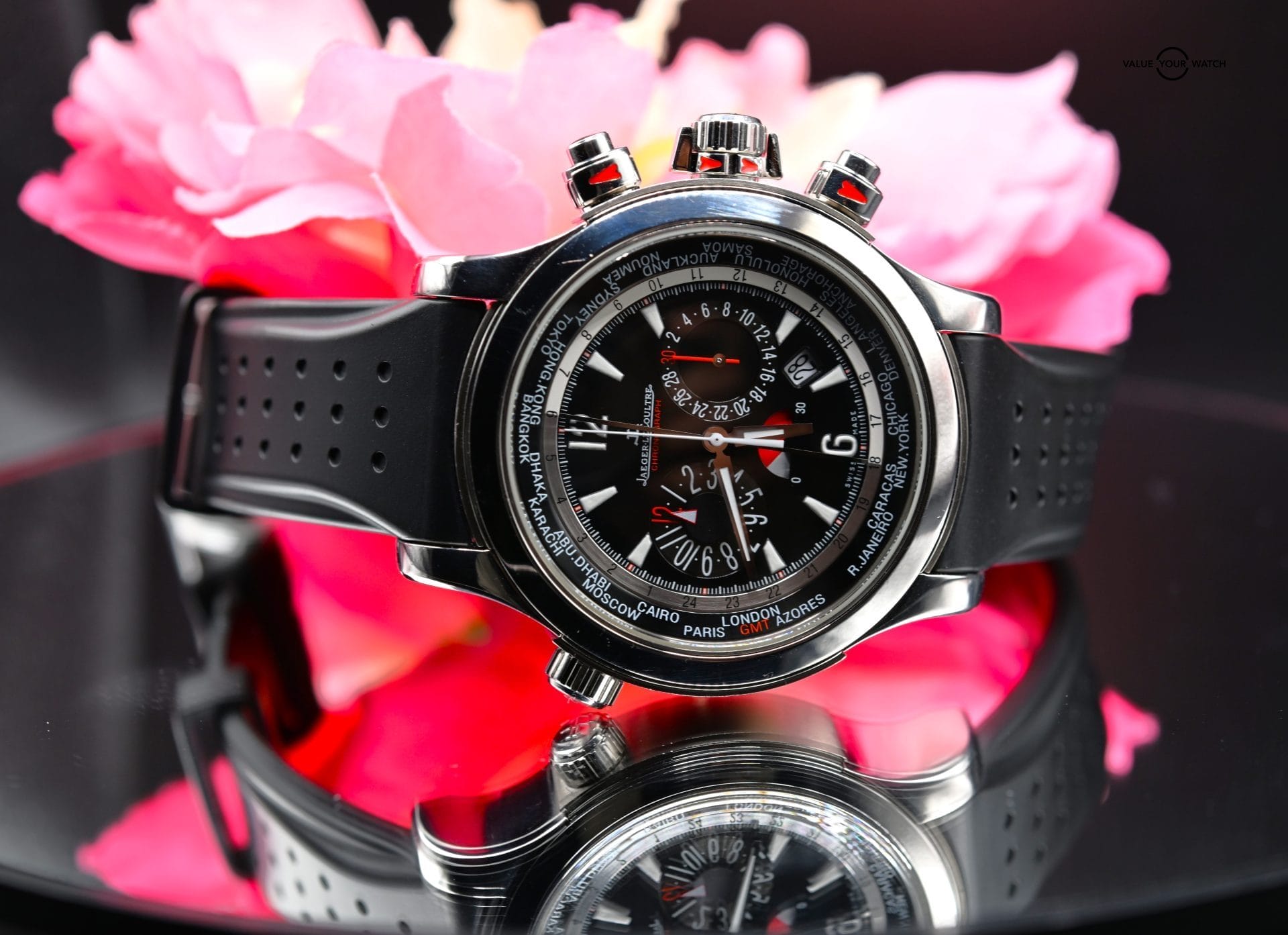 The JLC Master Compressor Extreme World Time Chronograph Limited Edition is defined as the watchmakers watch. Two hidden features, “quick strap change system” and “The inner Titanium Core”.