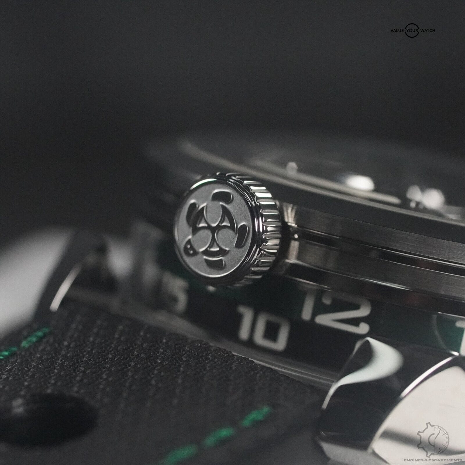 MB&F has established a reputation for making some of the most unique timepieces. This is an attainable head-turning piece with unique qualities. The upside down movement has the rotor facing the top of the watch, putting a mesmerizing spinning rotor on full display, while the time is read on the rotating rings around the side of the case. The green accents help to make this piece stand out, no matter the occasion.