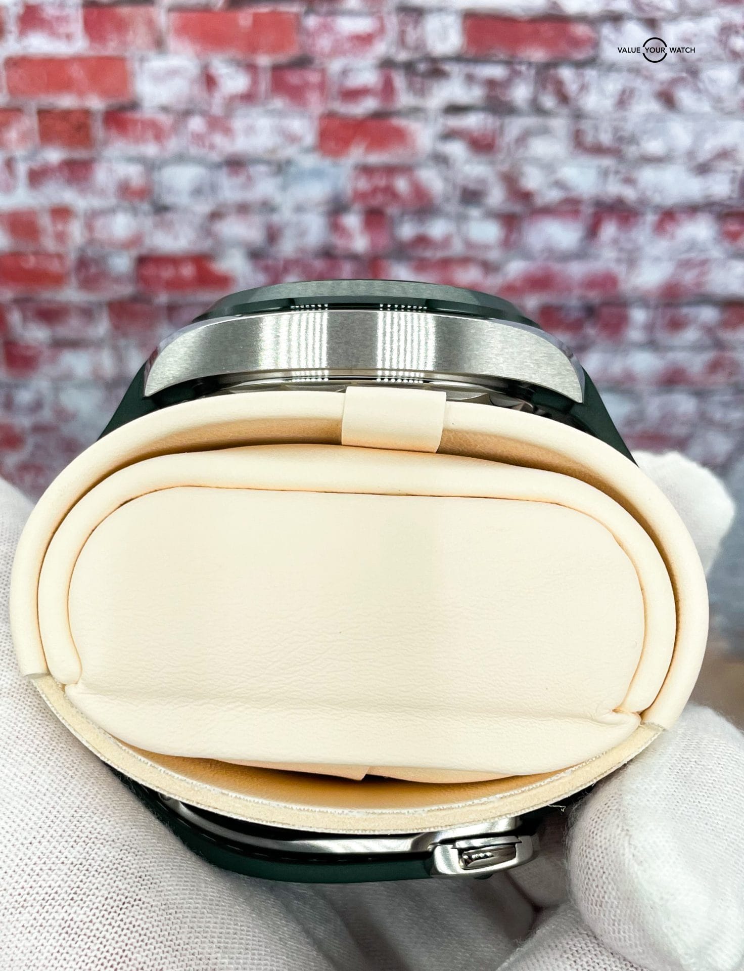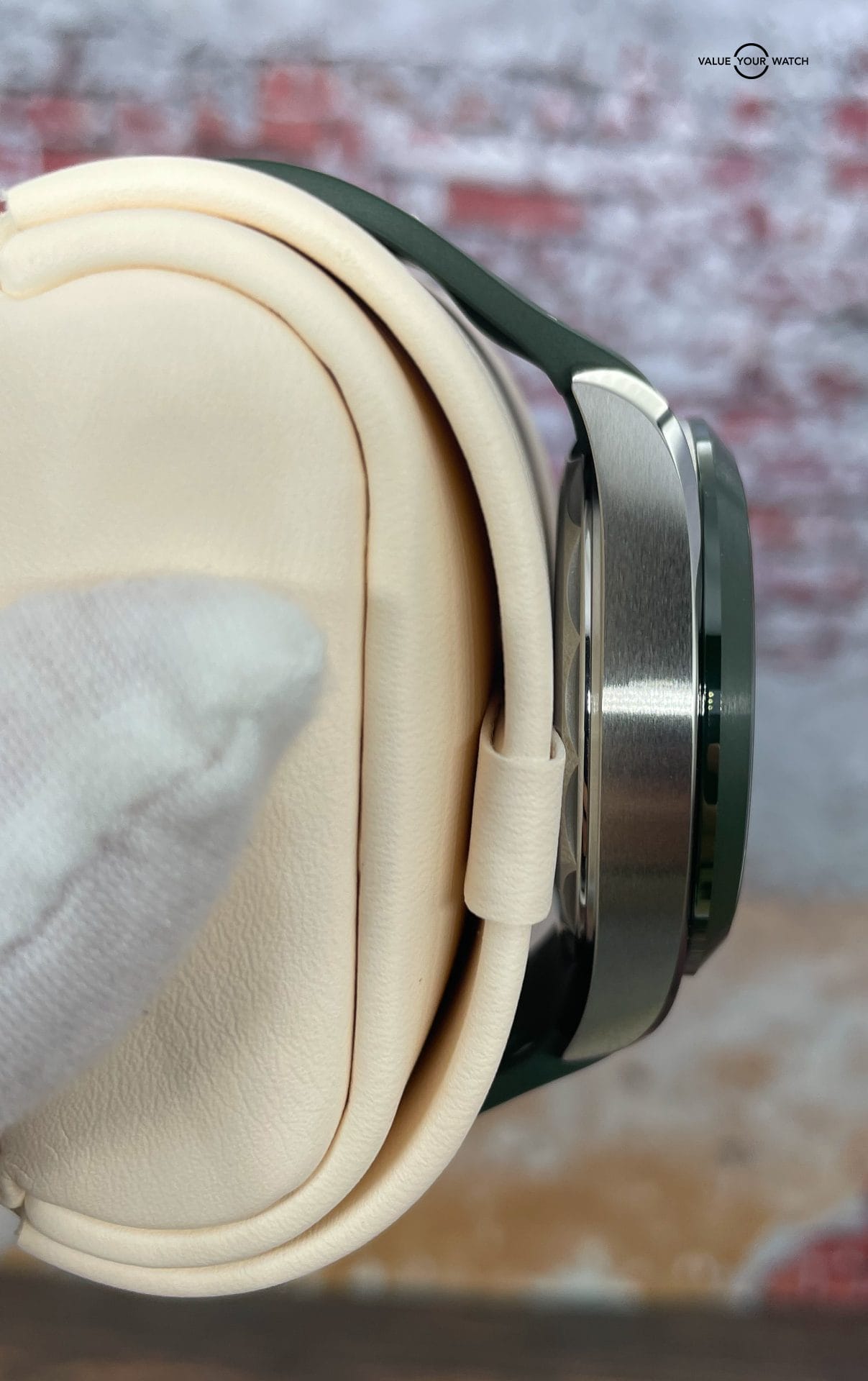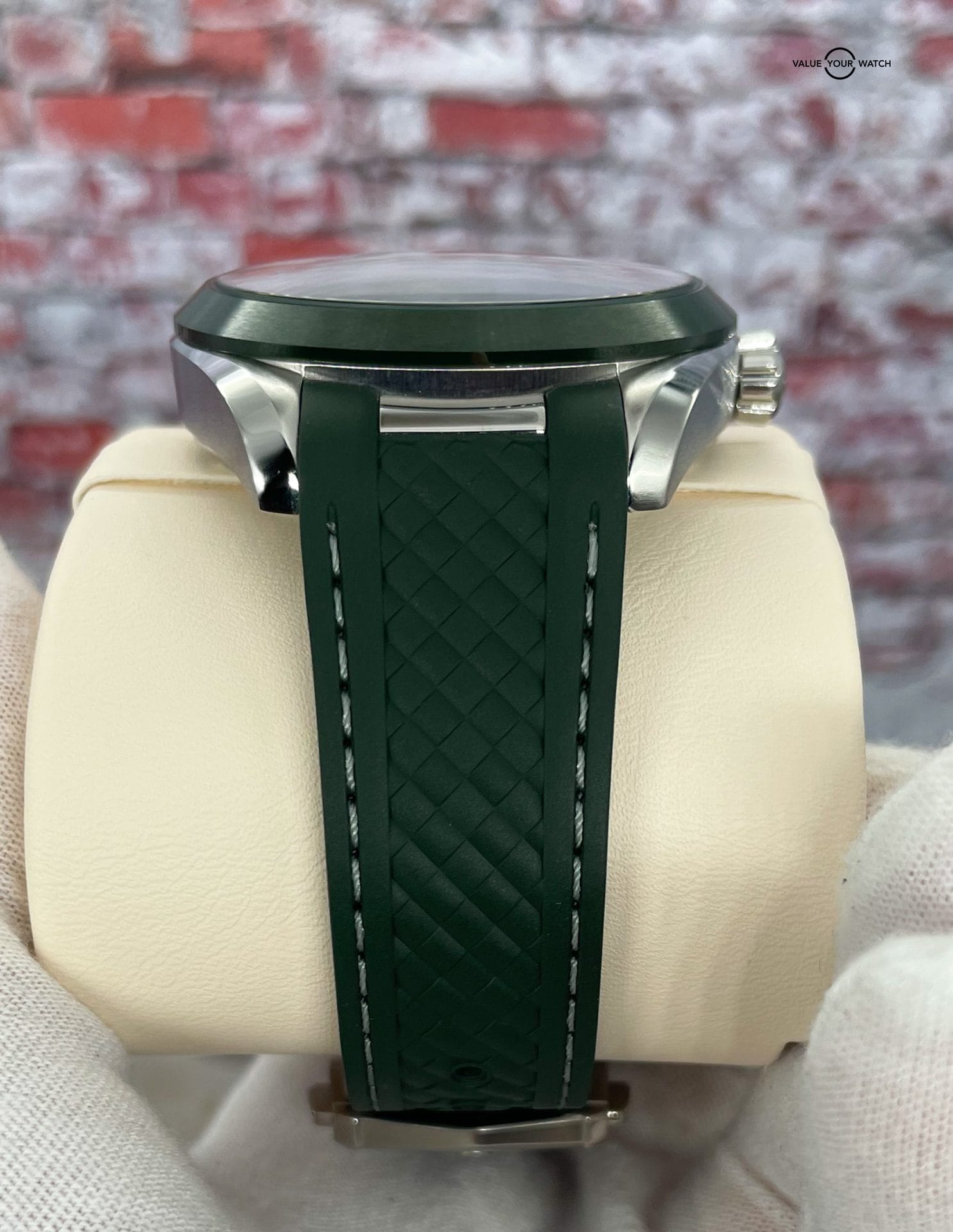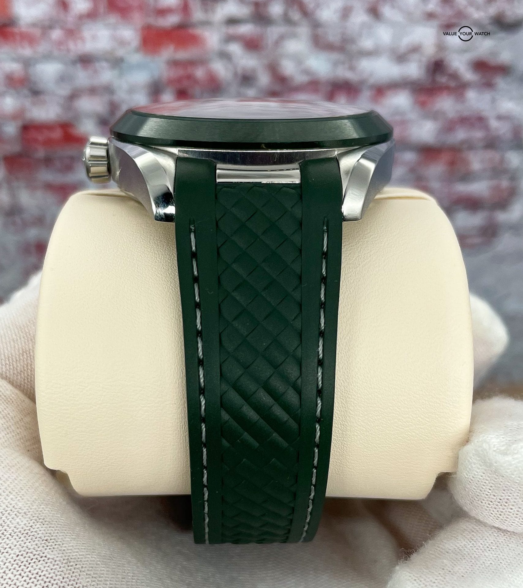 This piece is in excellent 2nd hand condition with no noticeable markings on the crystal or bezel. The casing is almost completely free of any markings but does show one miniscule marking on the edge of the upper right lug. The case back of the watch is in excellent shape overall but there are markings around the lugs, most likely from a strap change off the bracelet when new. The rubber strap and clasp show almost no signs of use, but have been worn. The bracelet came to me wrapped in plastic and is in excellent condition but does appear to have been worn lightly. Overall, the watch shows signs minimal of use and is in overall excellent condition. Please review all photos carefully for condition and contact us with any questions. Additional images can be provided on request.