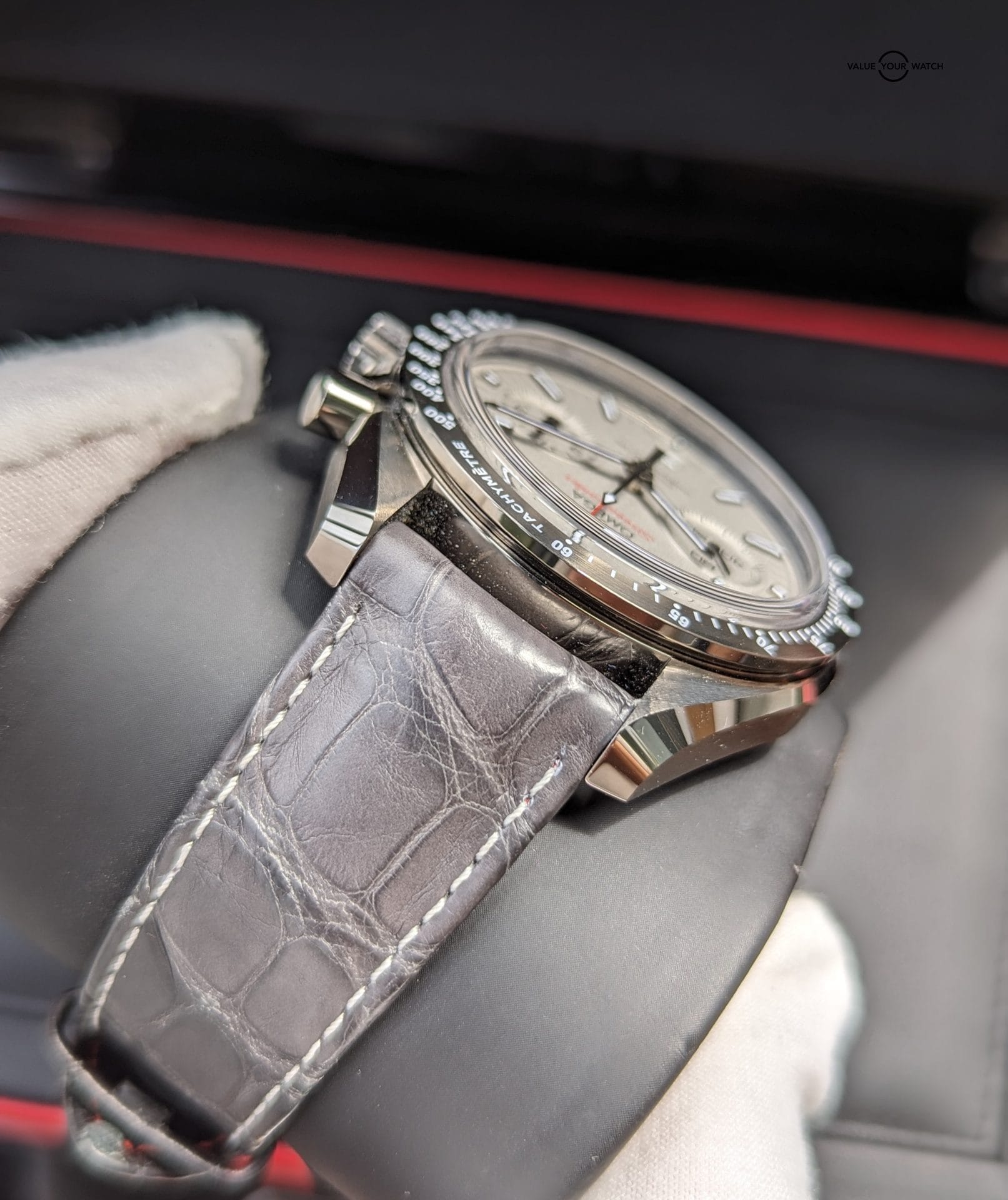 Available for purchase is one of the many special edition 0mega Speedmasters, this one being the “Grey Side of The Moon” featuring a full grey ceramic case in 44mm. The ceramic case houses 0mega’s Master Chronometer Co-Axial chronograph Calibre 9300 movement, viewed through a sapphire see through case back. The case itself is stunning, with multiple finishes, doesn’t appear like ceramic at first look. The Grey edition has a dial that is sandblasted Platinum. If you are looking for a Speedmaster with little more unique twist, this is definitely one to consider!