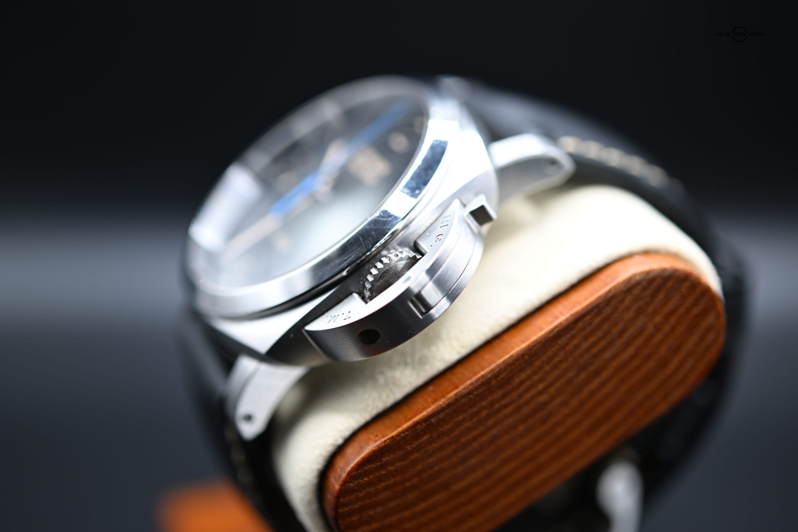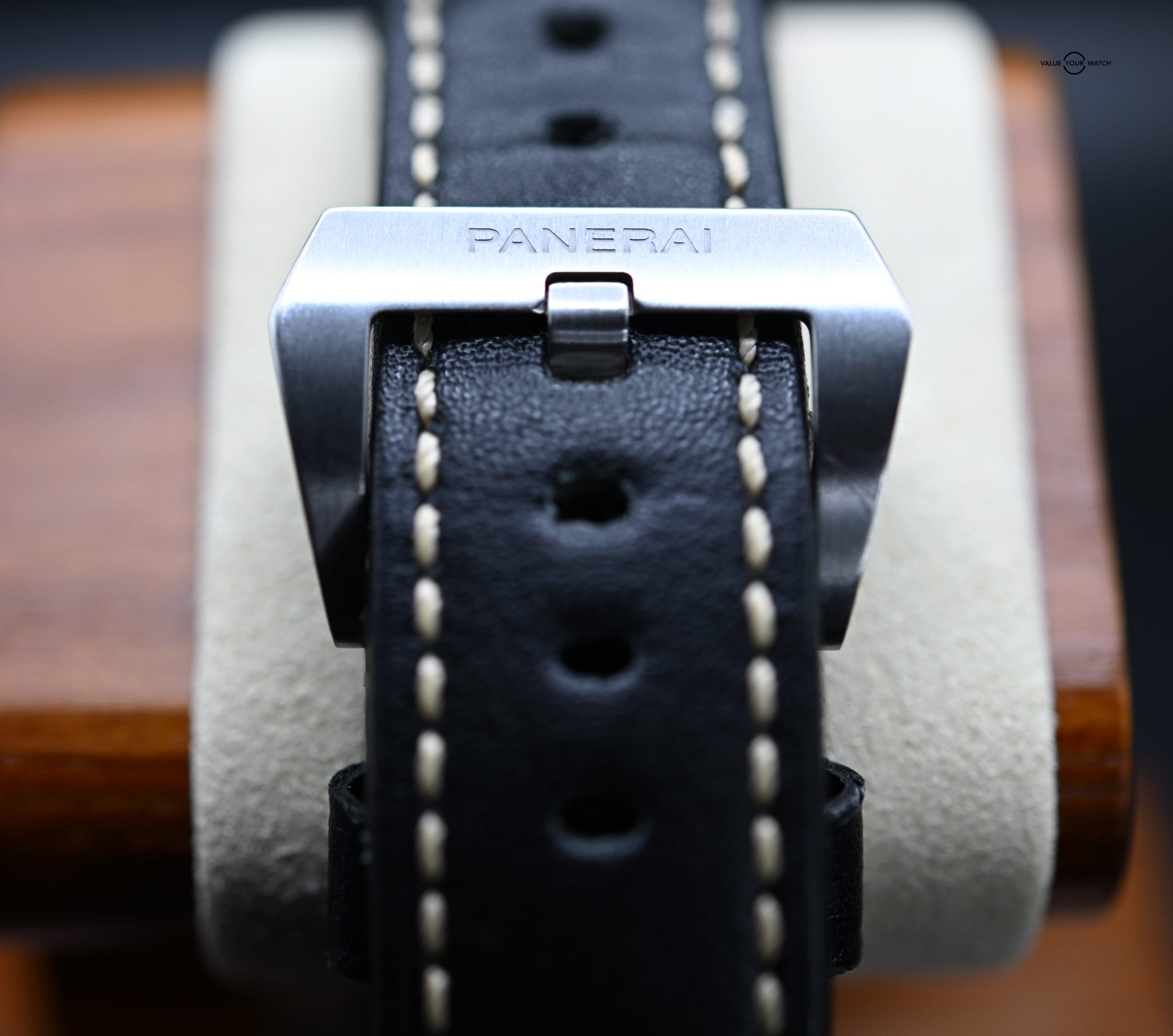 The PAM00524 has a transparent case back, which will allow you to view the automatic P.9100 movement, which provides a 72hr power reserve. Retail:$11,200