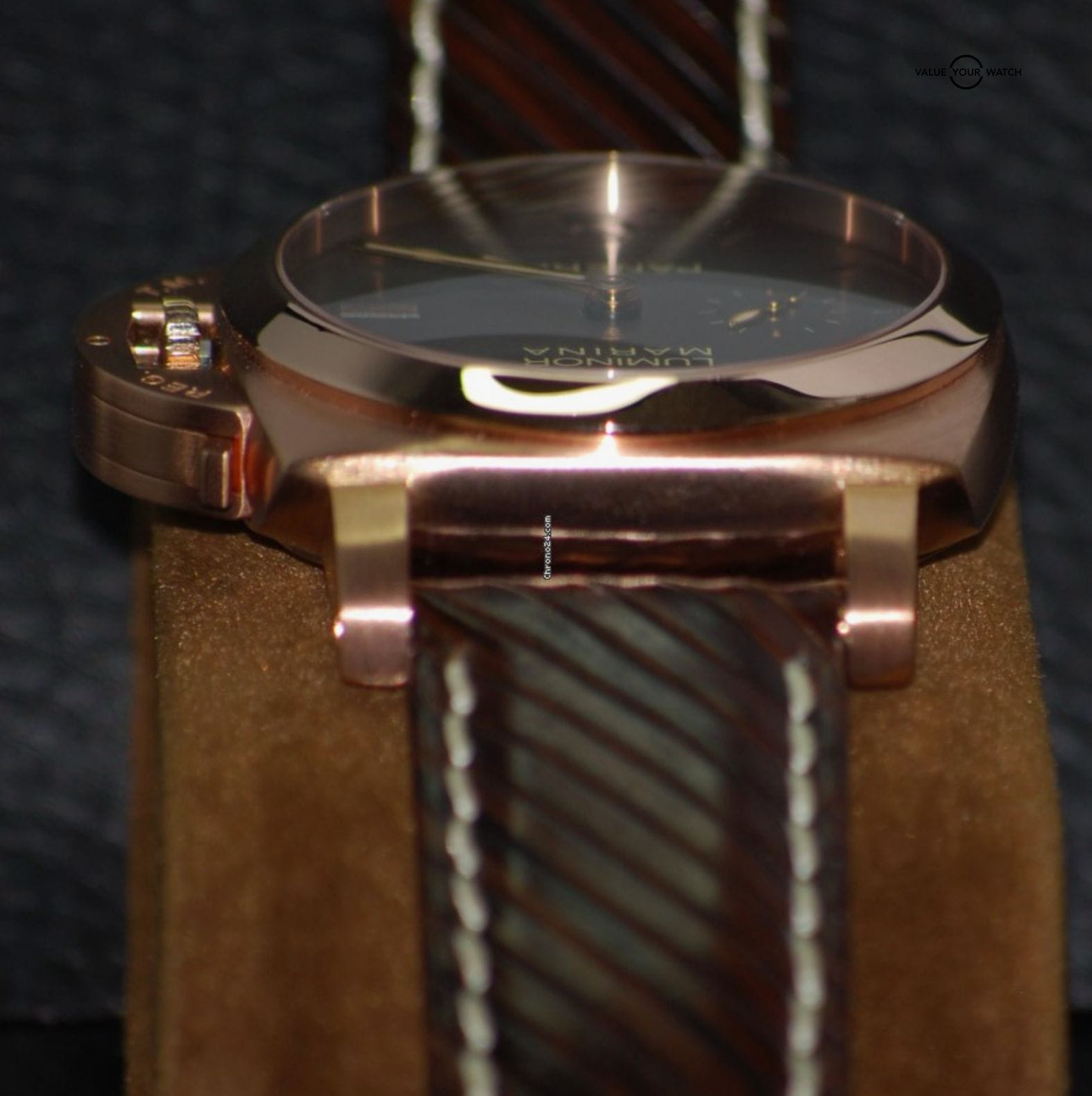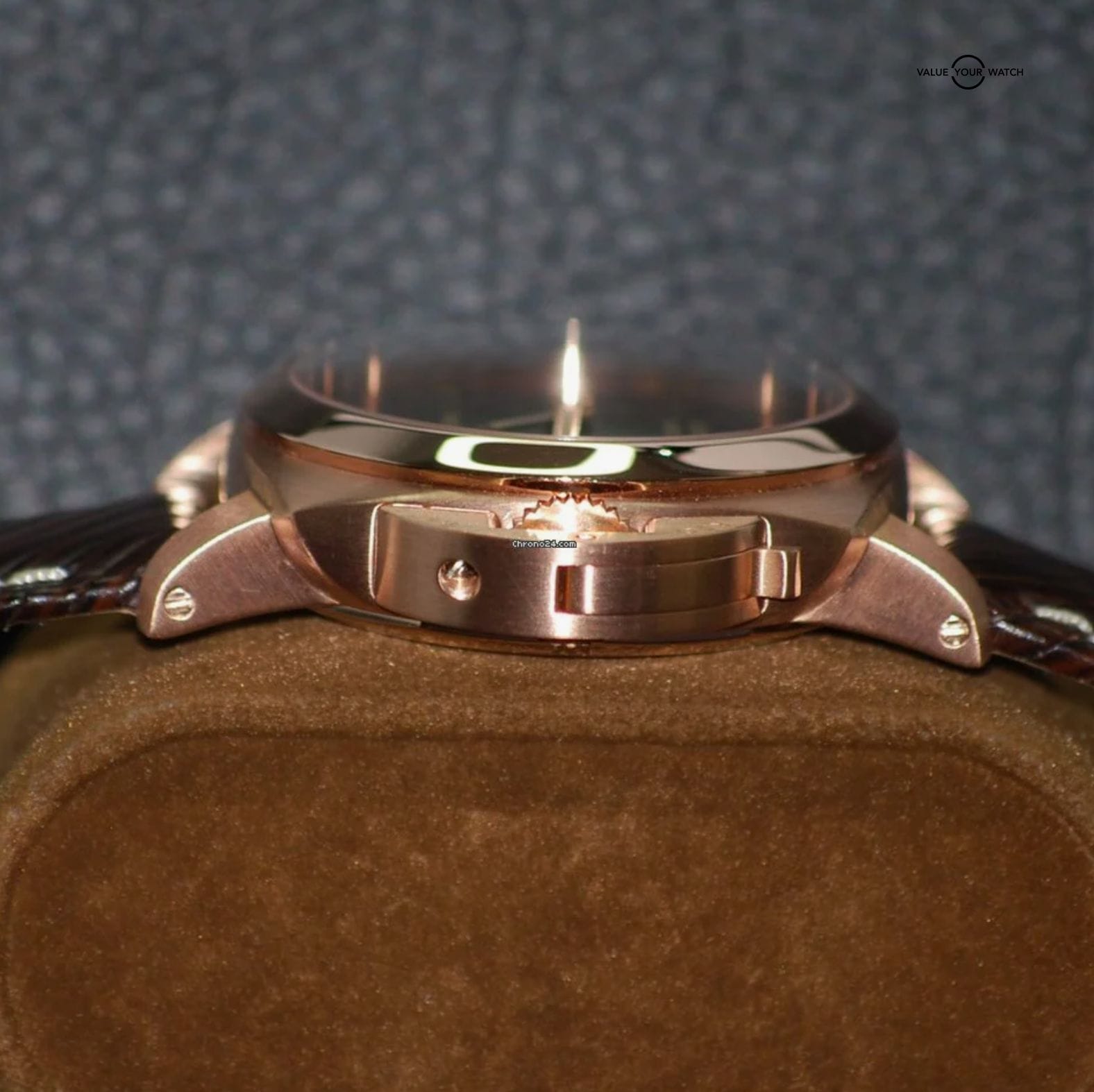 – Crown with Brushed 18k Rose Gold Crown Protector