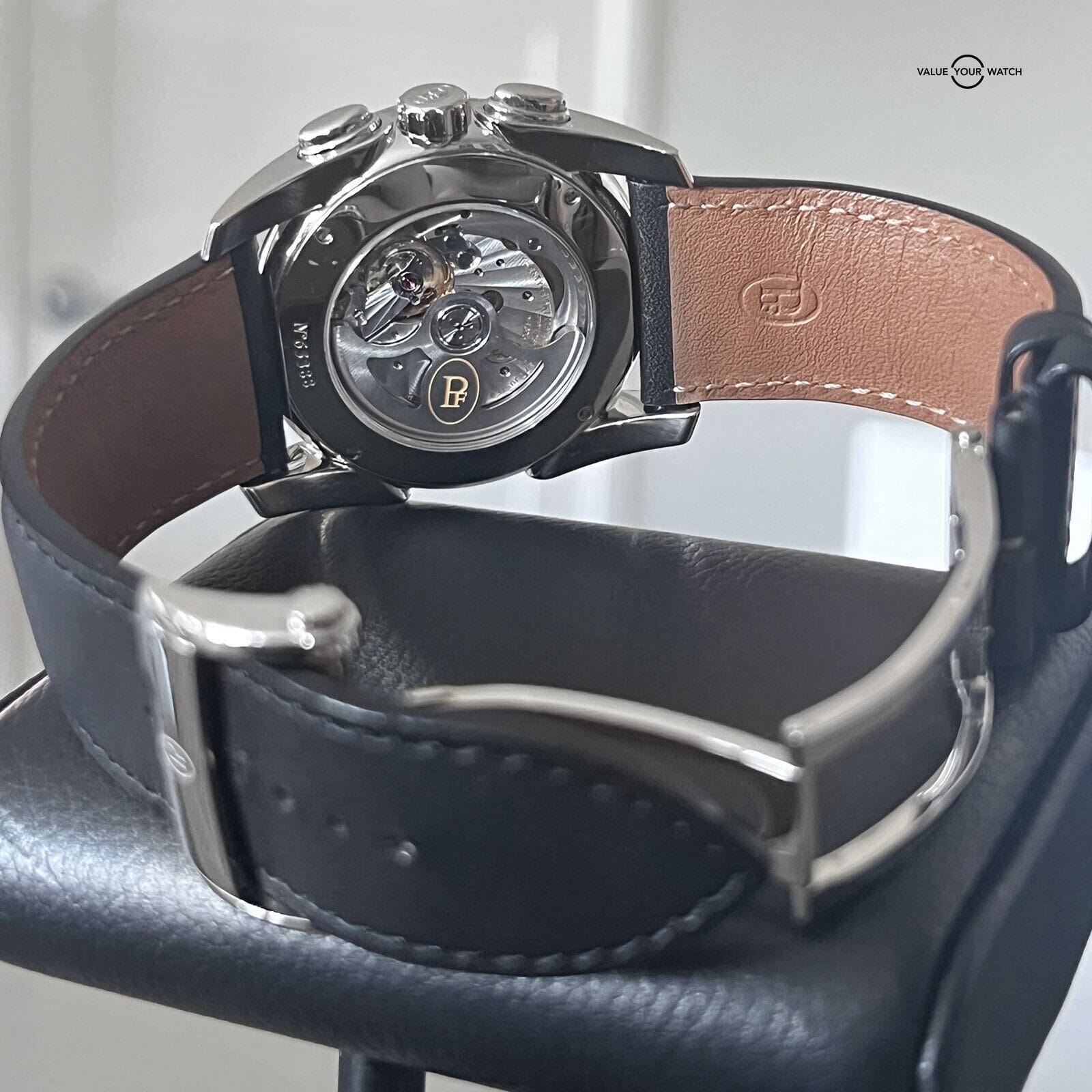 Movement: Inside the Parmigiani Tonda Metrographe ticks the in-house automatic movement, ensuring precise timekeeping and reliable performance.