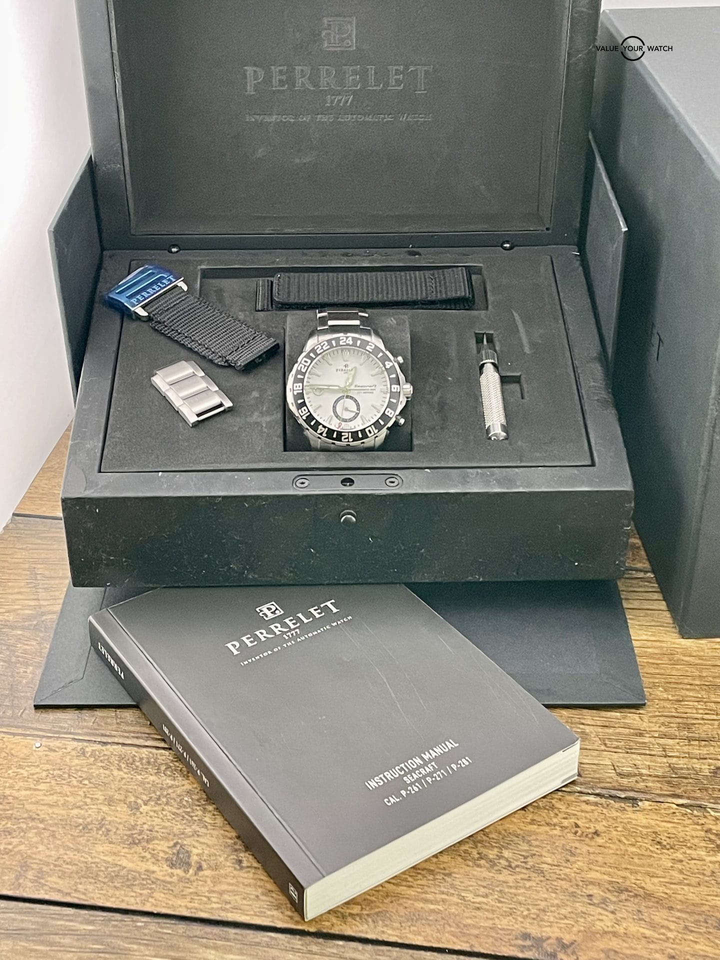 Specification: Perrelet Seacraft GMT SS White Dial 42mm Full Set Automatic Mens Watch Mint