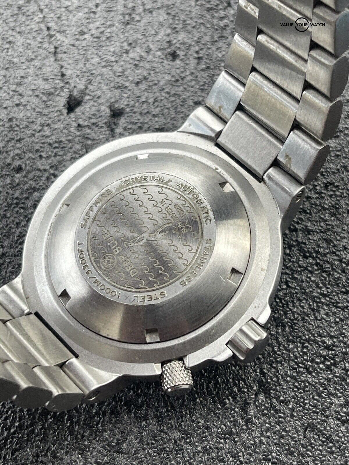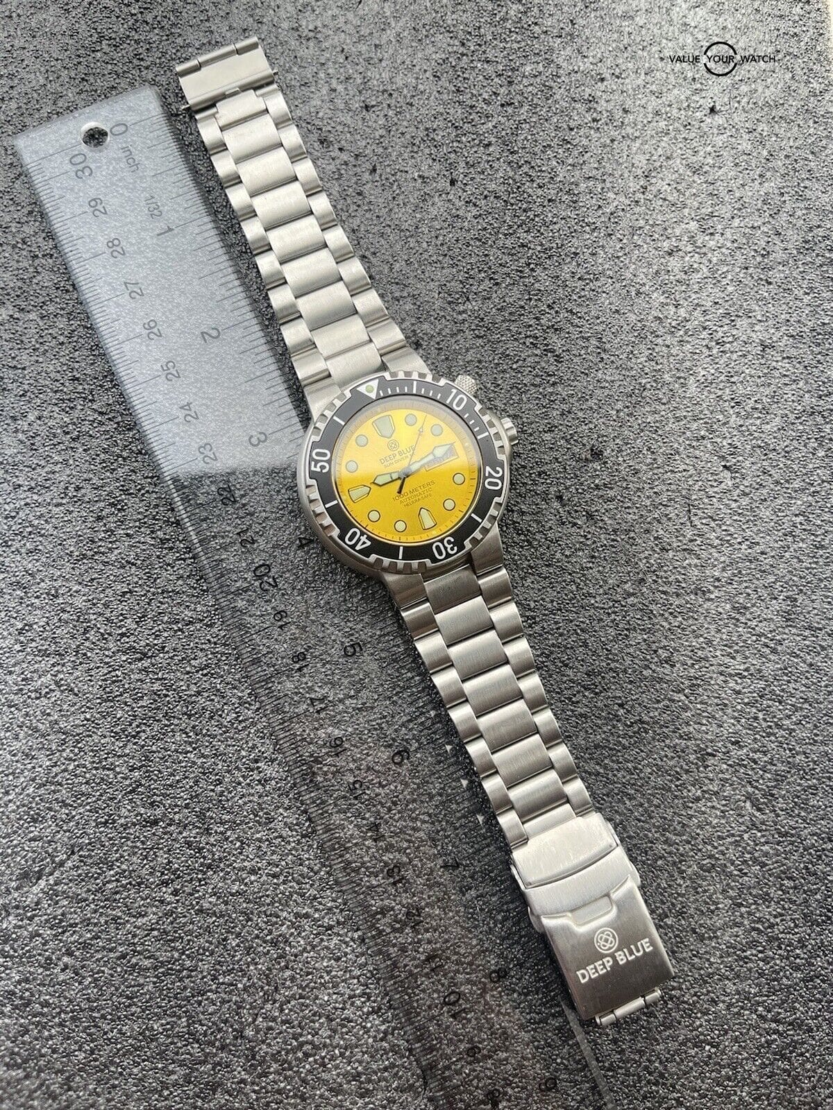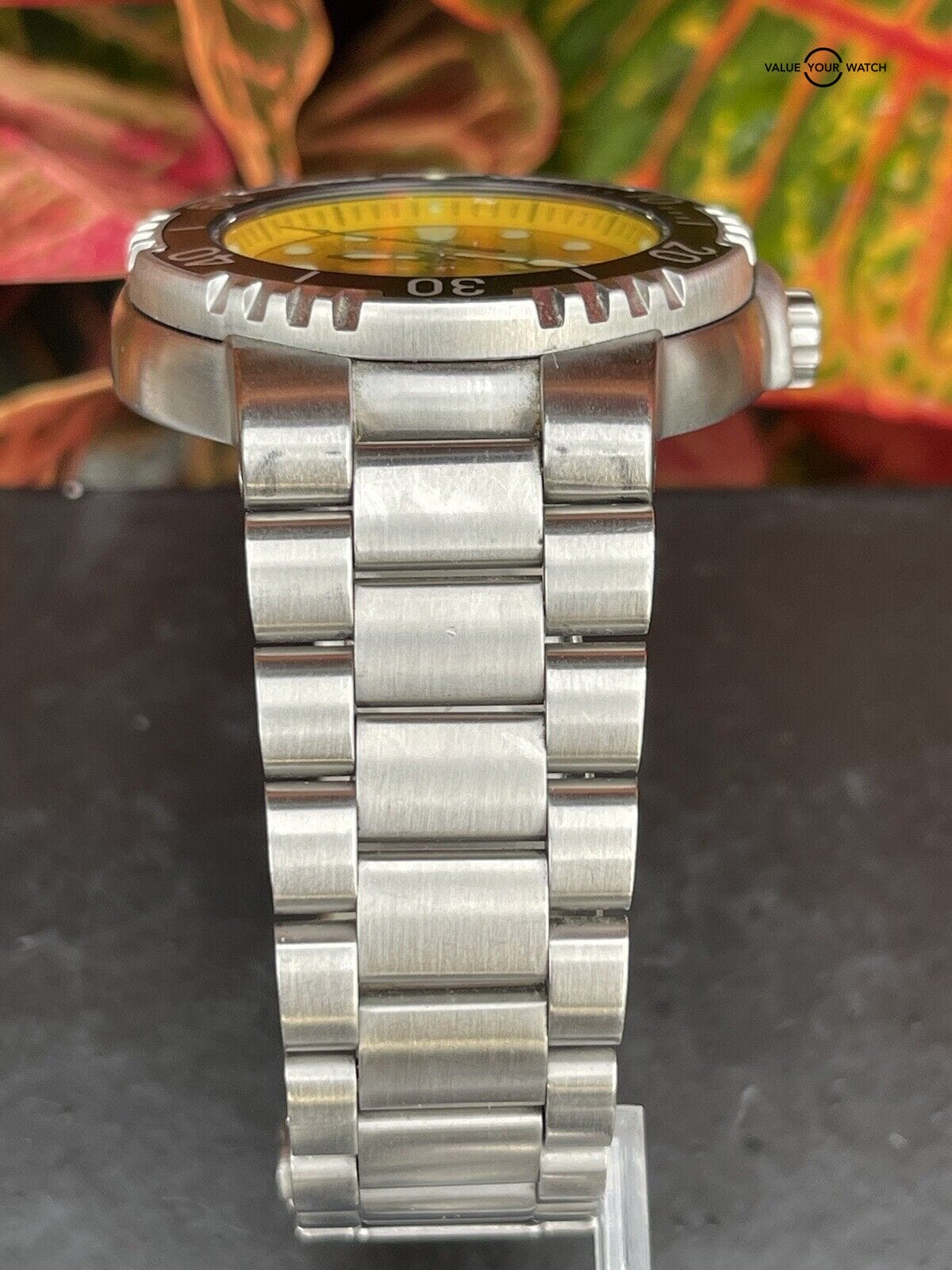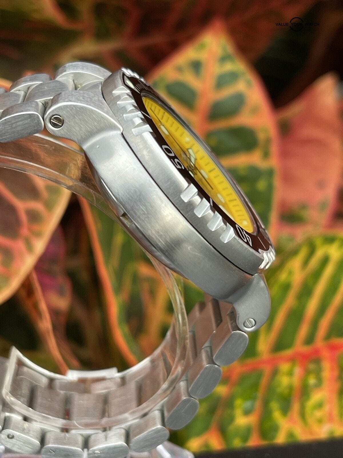 Here is a rare discontinued Deep Blue Sun Diver 1000m Yellow Dial Watch. This model rarely goes on sale. This is from an estate sale and is running.