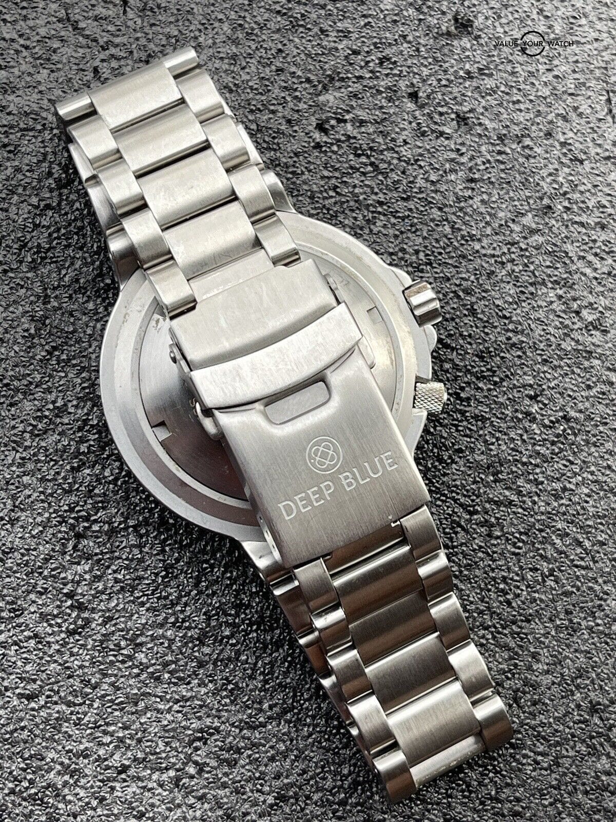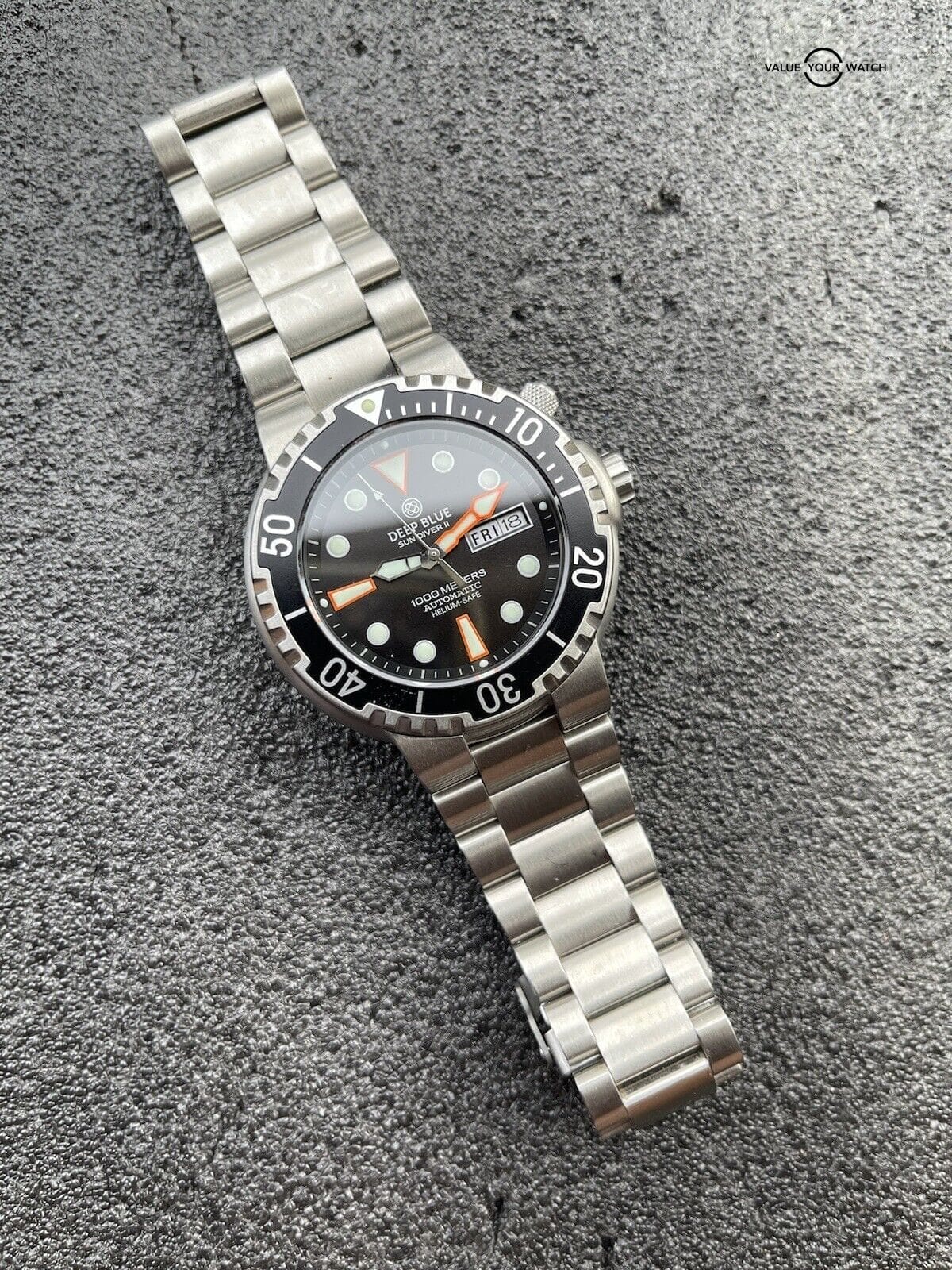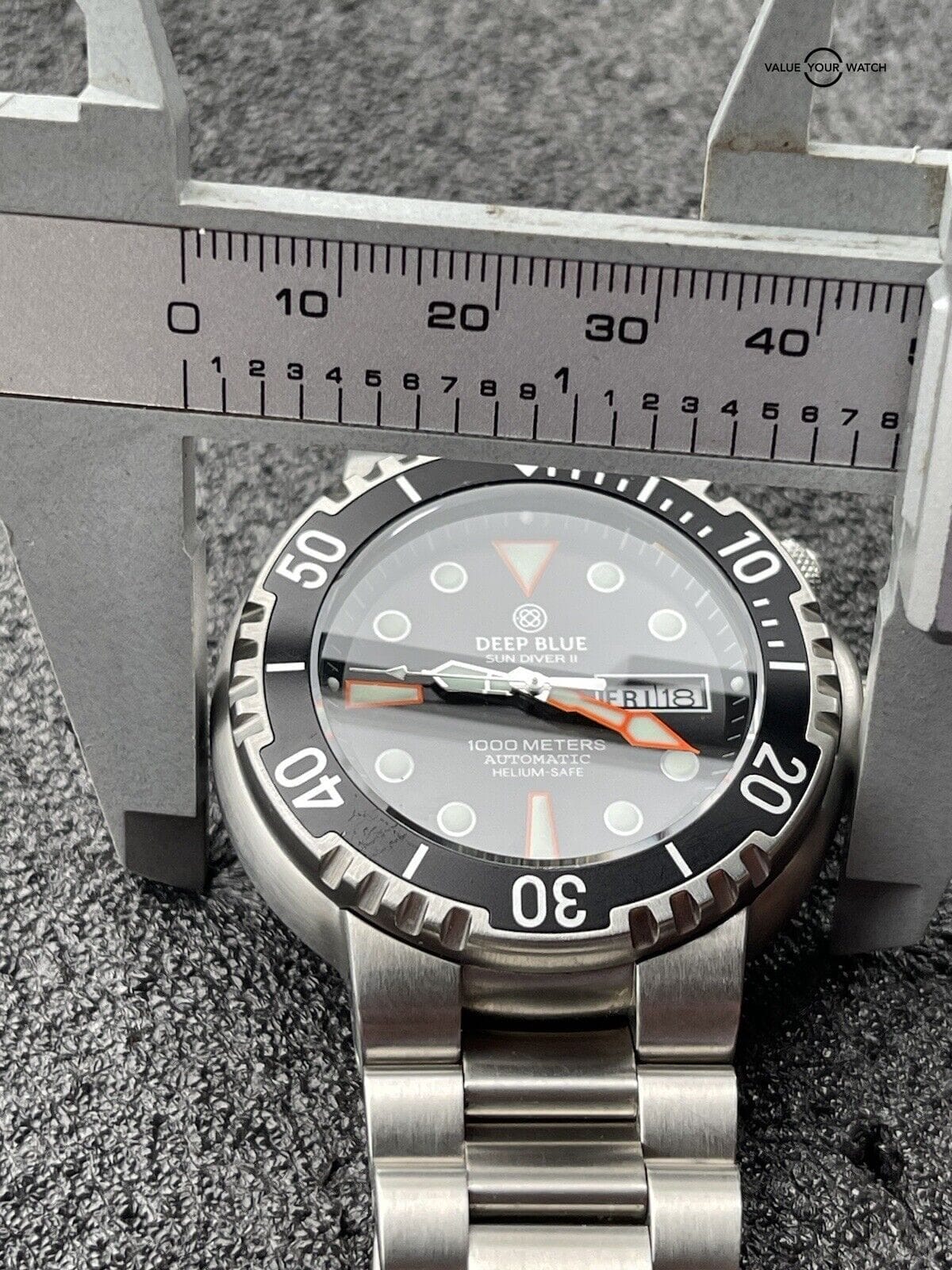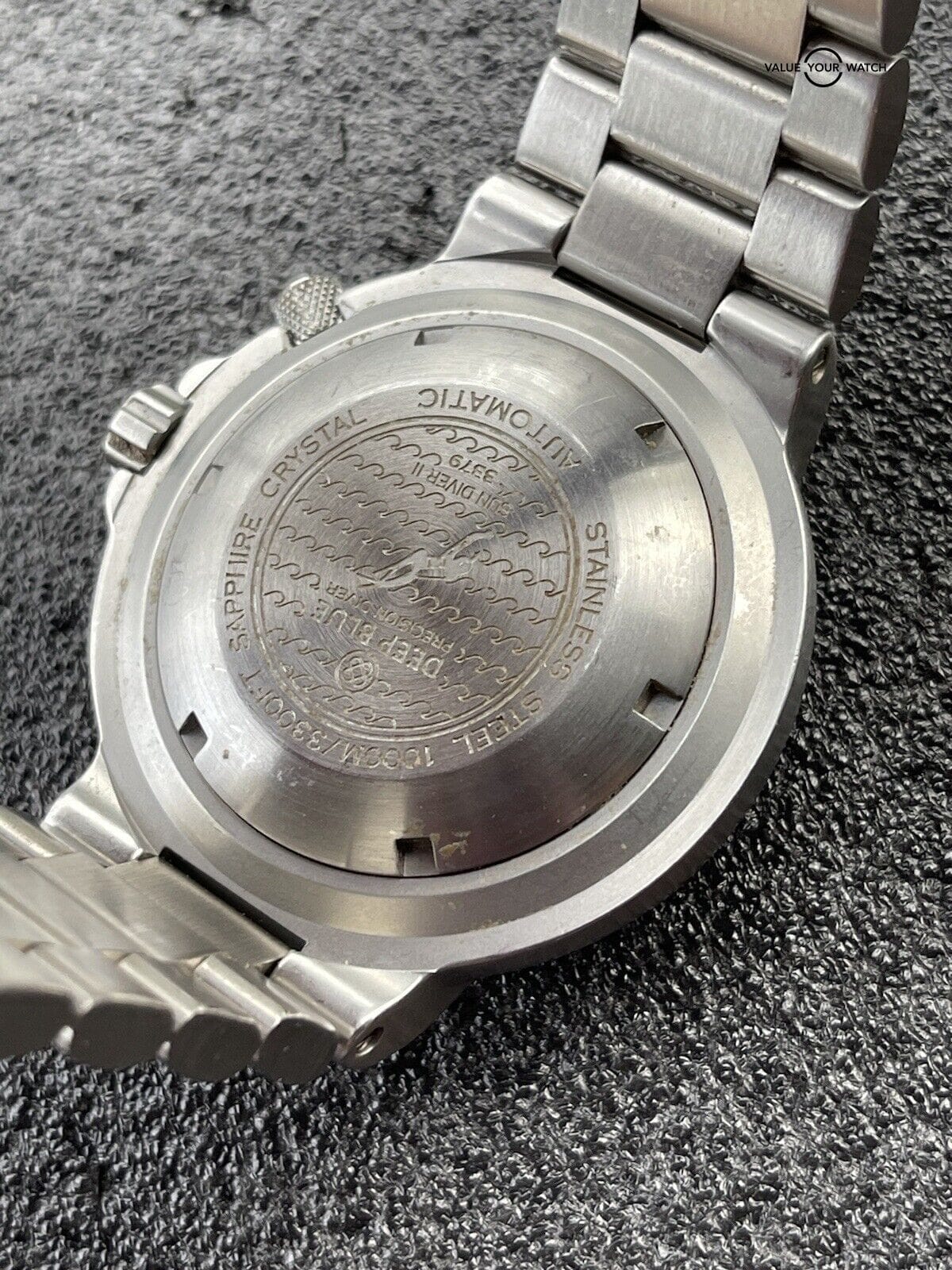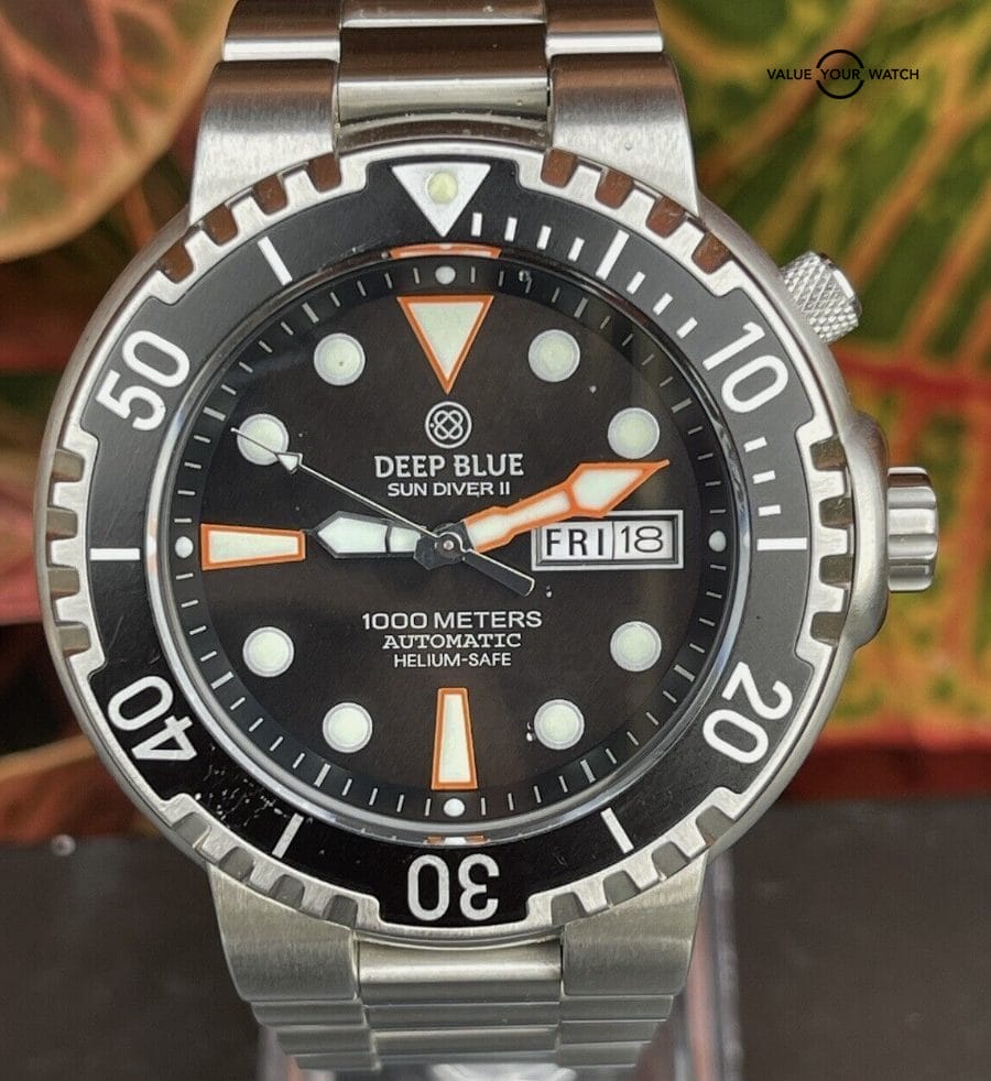 Here is a rare discontinued Deep Blue Sun Diver 2 1000m Black Dial Watch. This model rarely goes on sale. This is from an estate sale and is running.