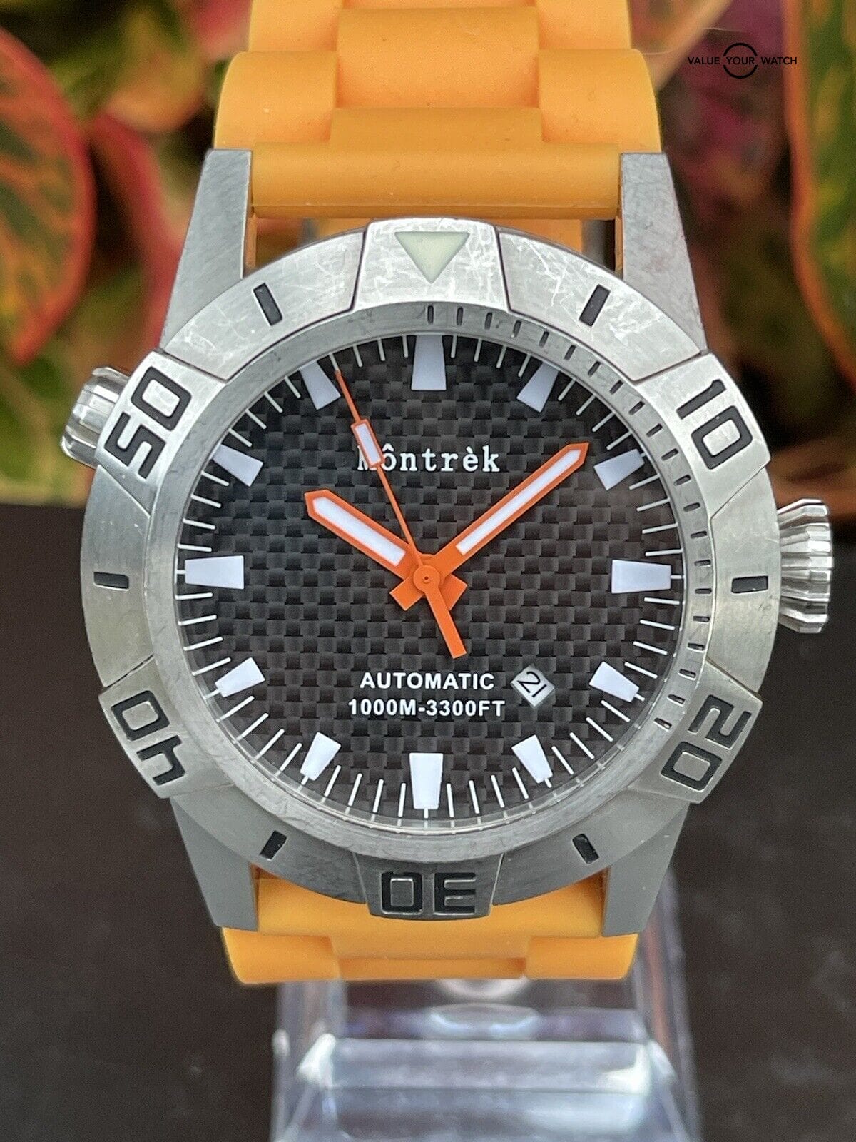 Here is a rare discontinued Montrek Round Automatic Diver 1000M Watch. This model rarely goes on sale. This is from an estate sale and is running.