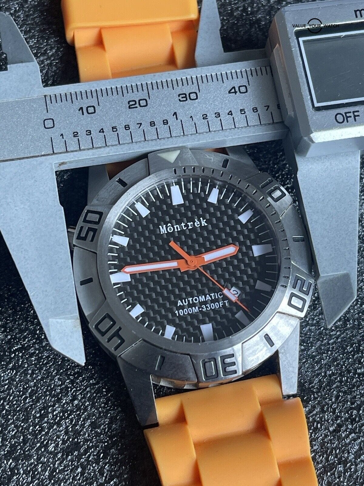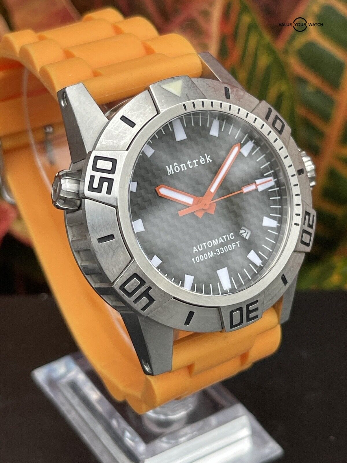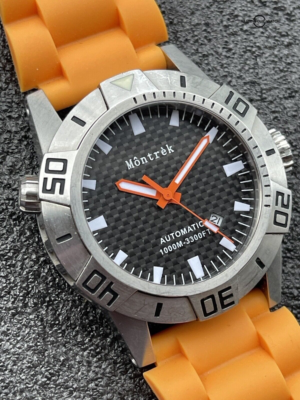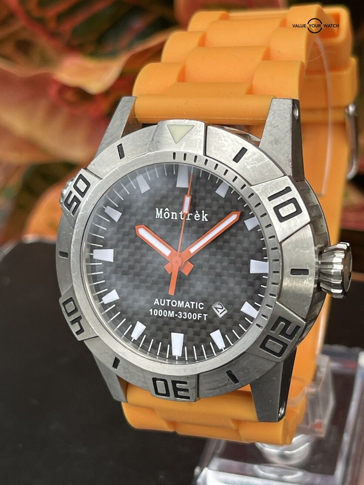 Here is a rare discontinued Montrek Round Automatic Diver 1000M Watch. This model rarely goes on sale. This is from an estate sale and is running.