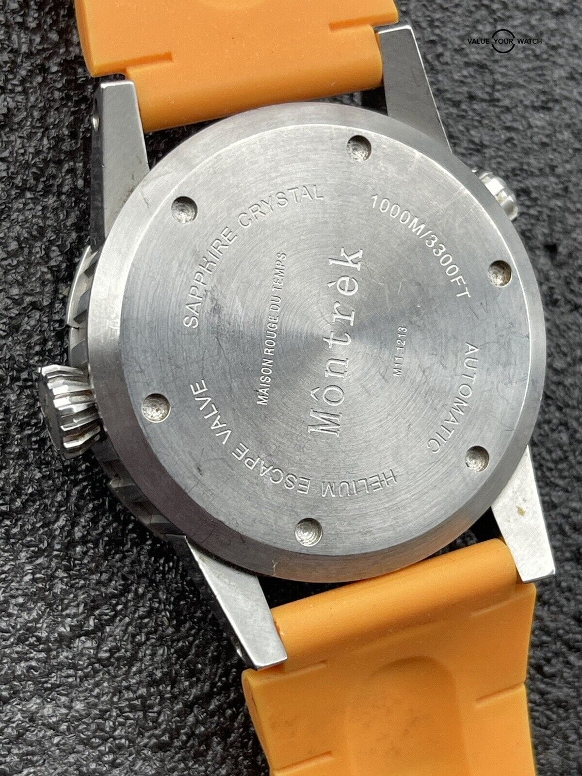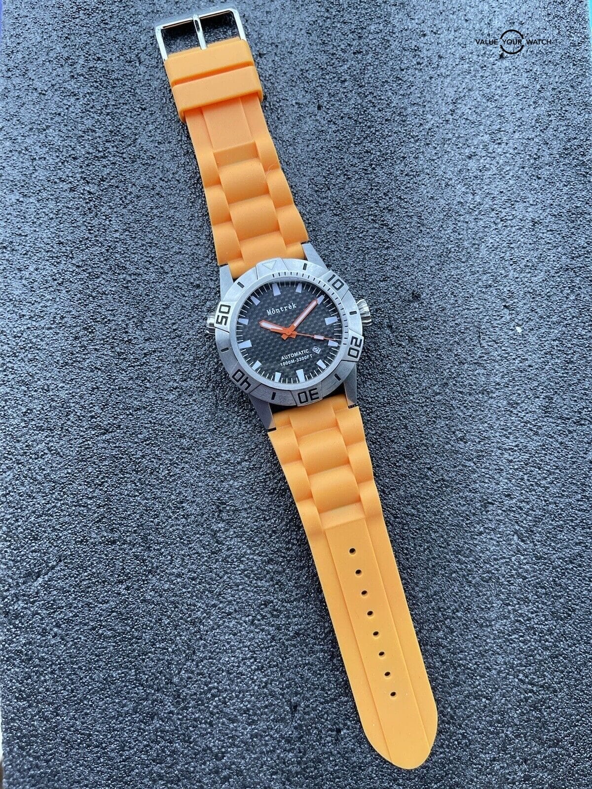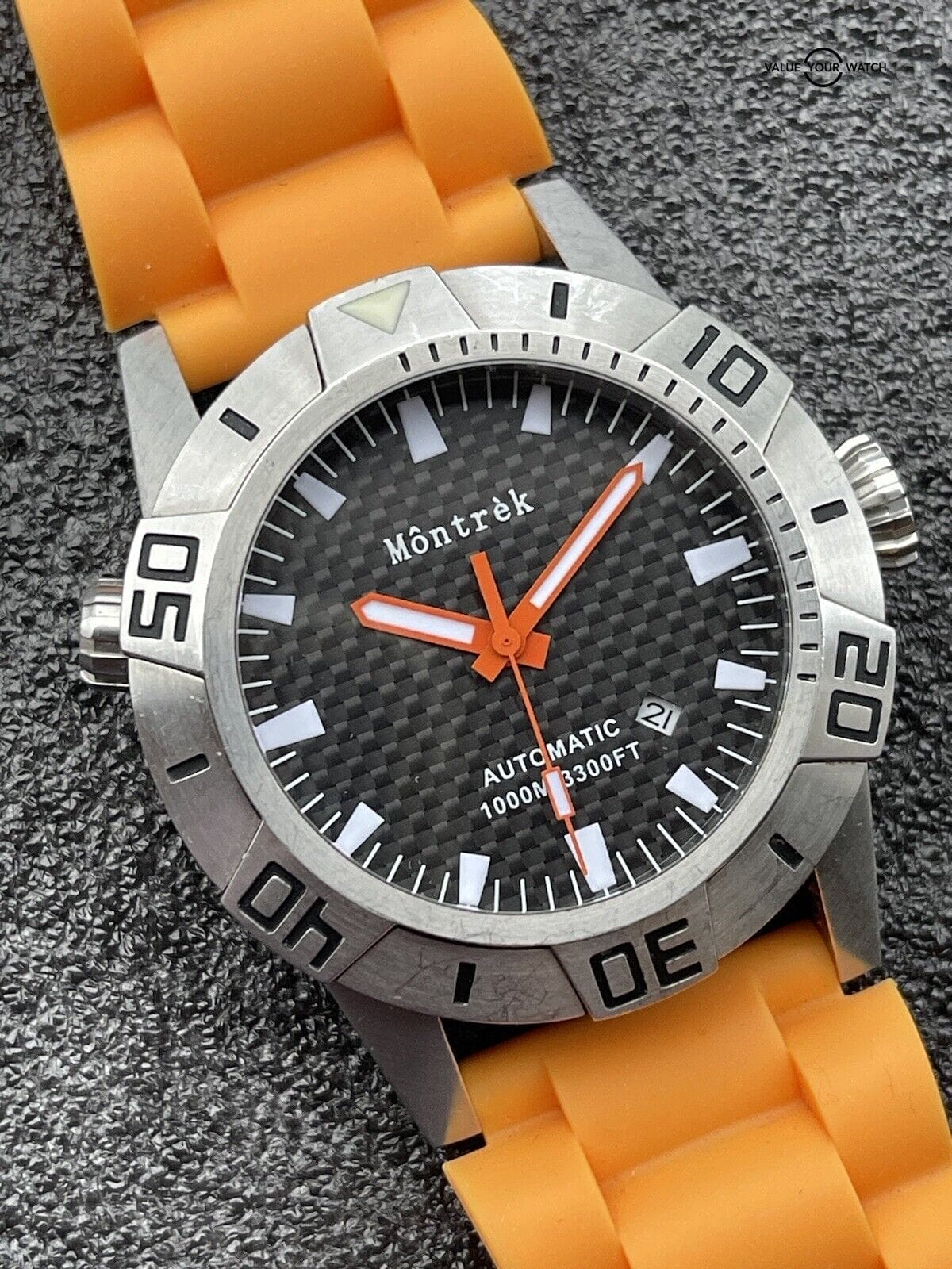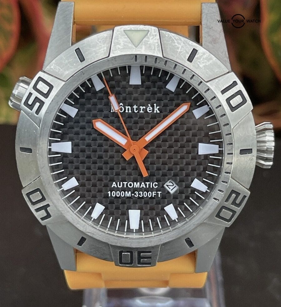 Here is a rare discontinued Montrek Round Automatic Diver 1000M Watch. This model rarely goes on sale. This is from an estate sale and is running.