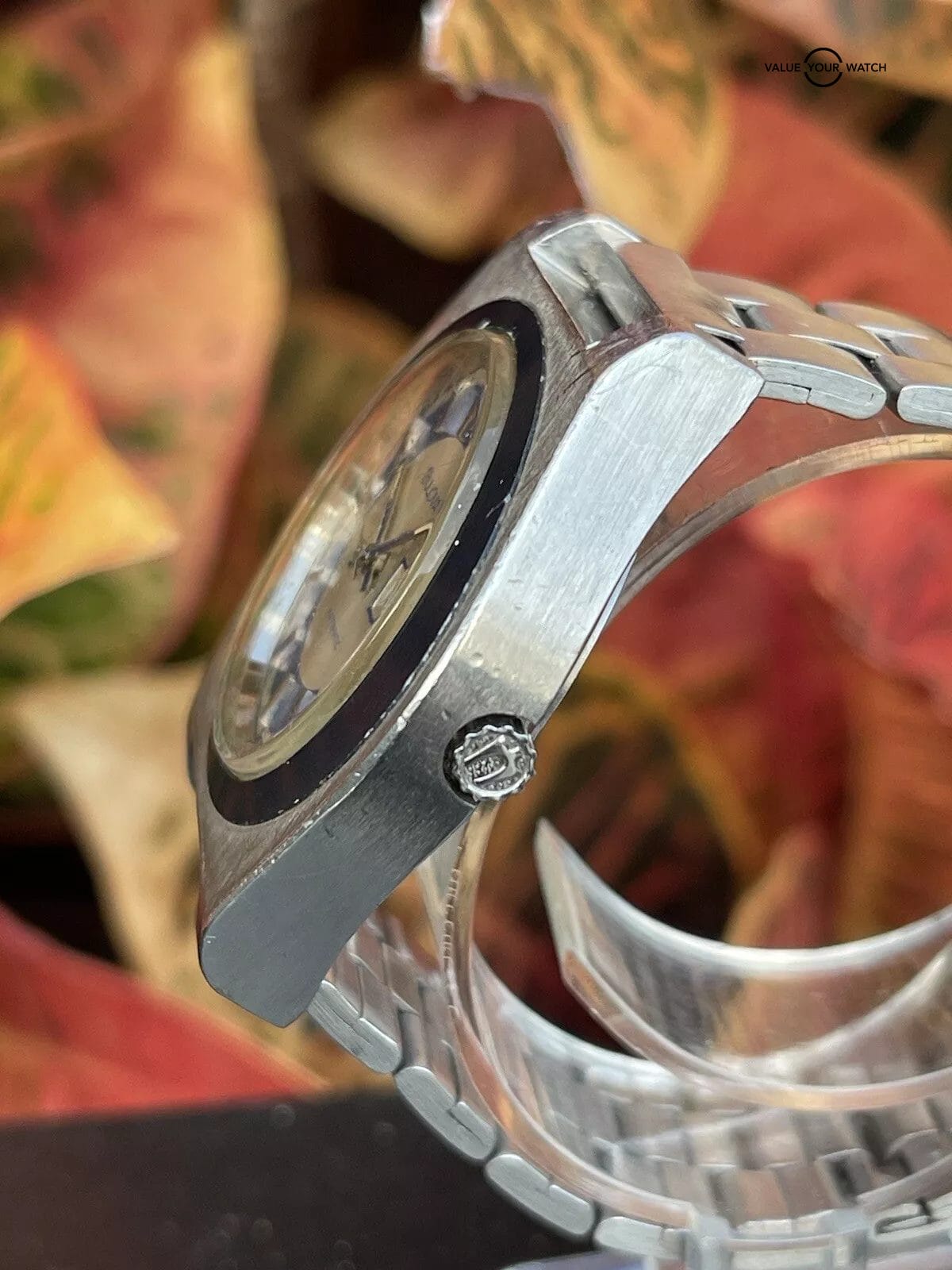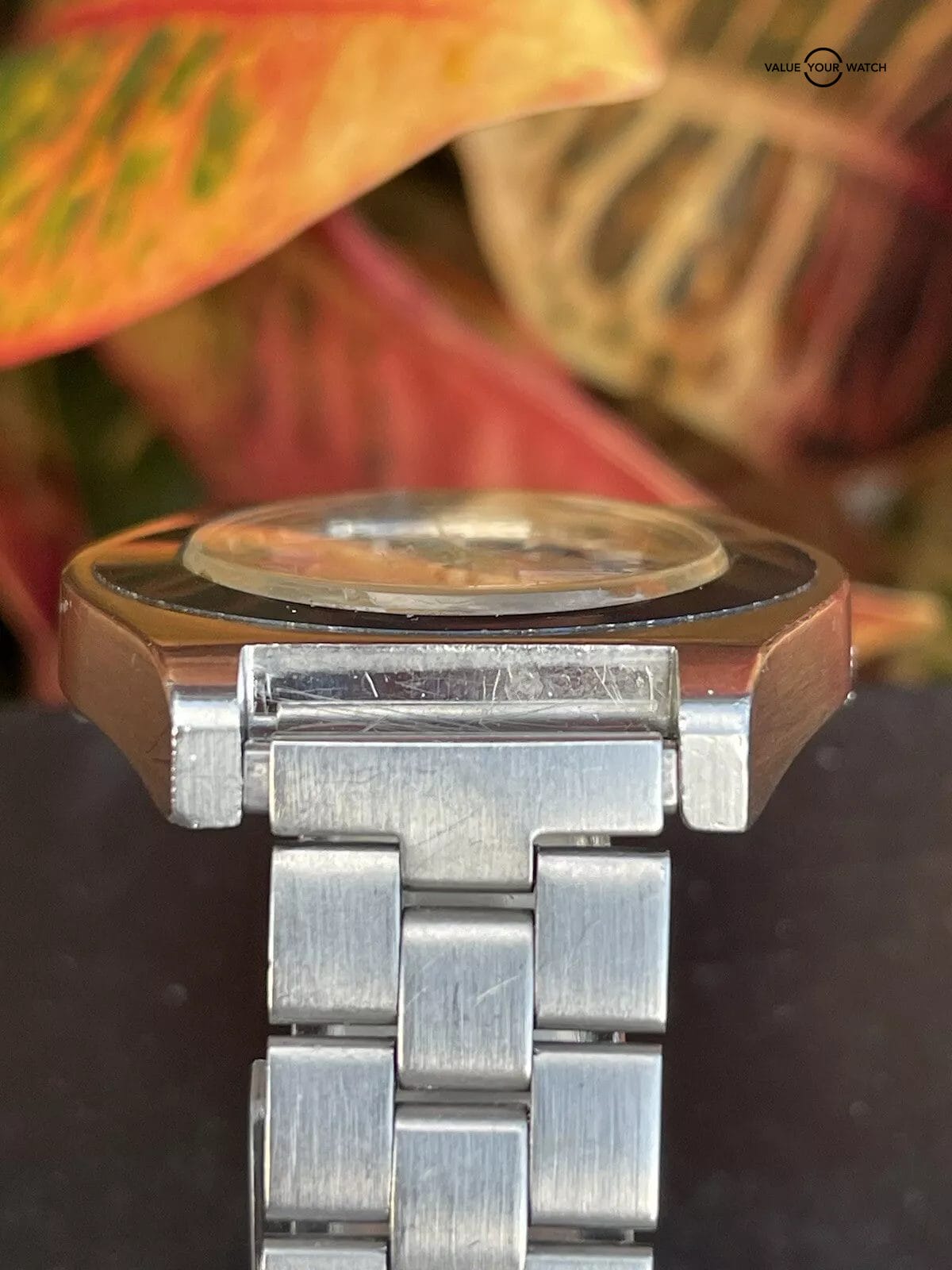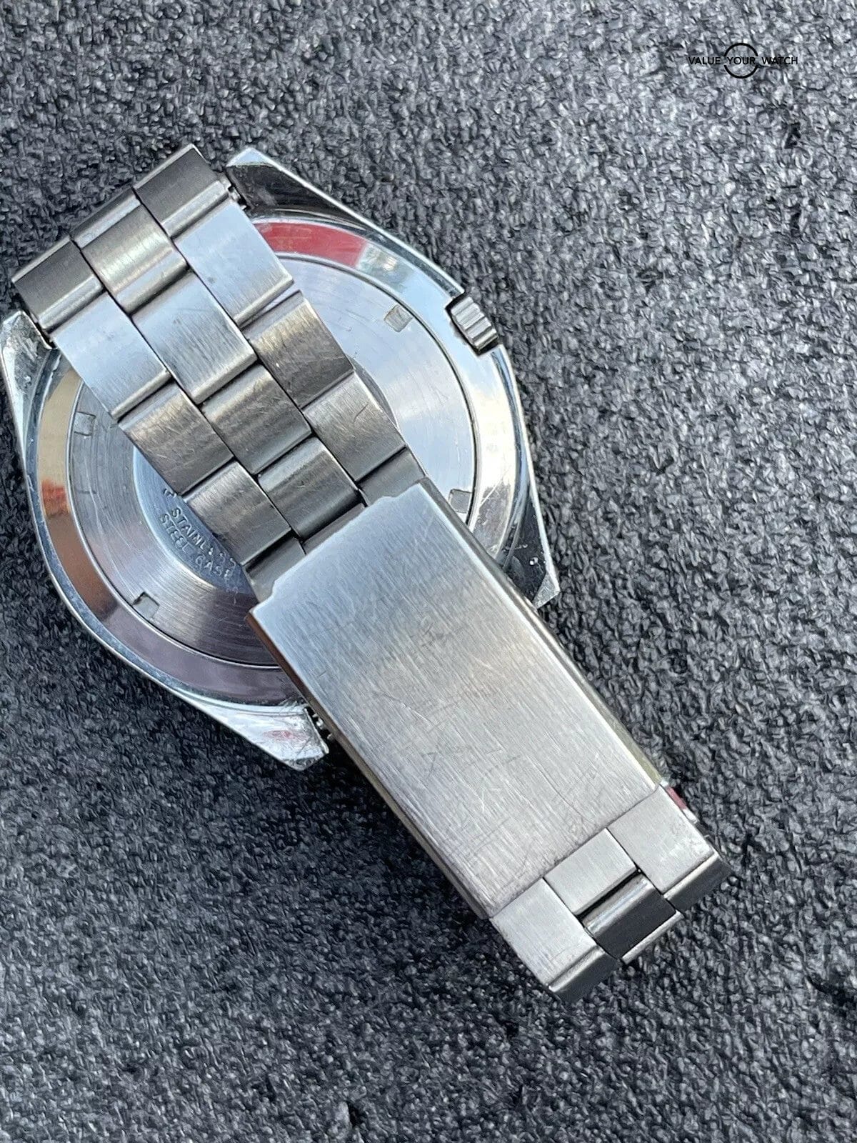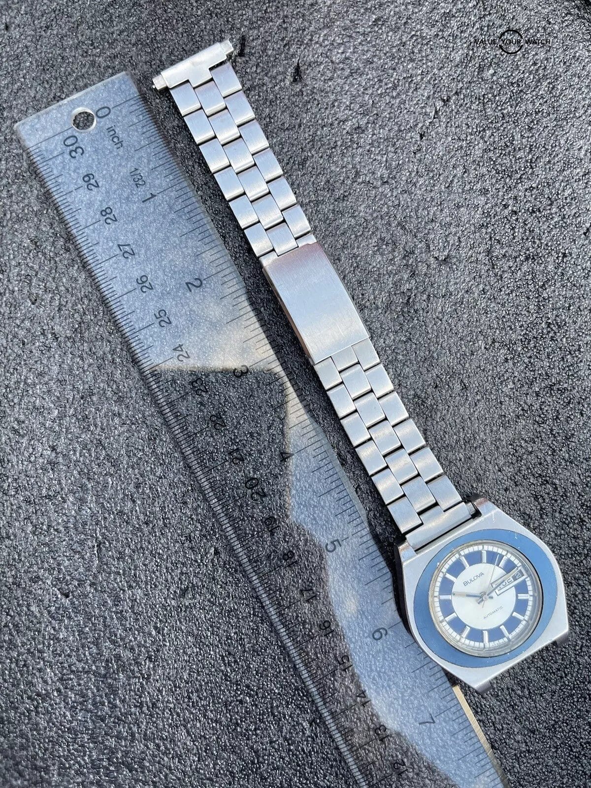Here is a vintage Bulova Jet Star Automatic Wrist Watch. This 40mm jumbo watch is from 1973 and features a rare blue and white dial. This came from an estate sale.