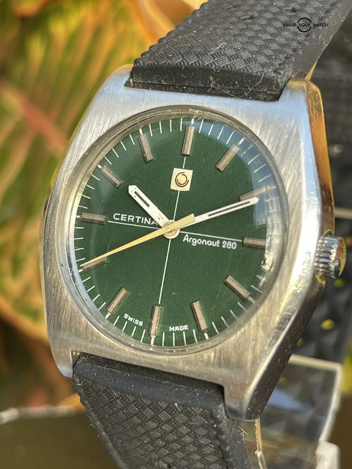 Specification: Vintage Certina Argonaut 280 Green Dial Watch Manual Wind 17 Jewels Cal. 25-66