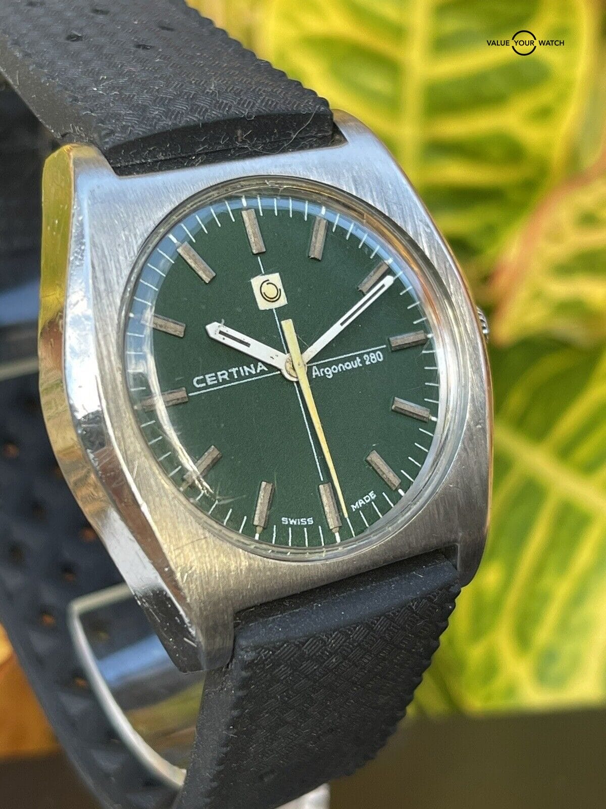 Vintage Certina Argonaut 280 Green Dial Watch Manual Wind 17 Jewels Cal. 25-66