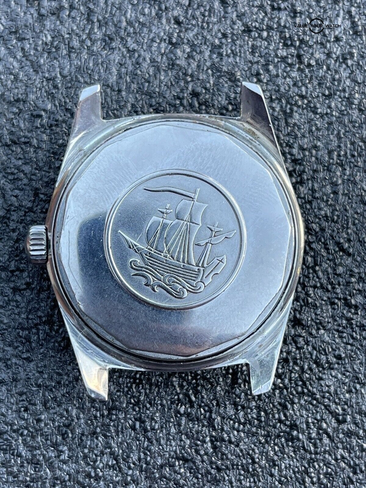 The case back of this vintage Tissot Visodate reveals the Seastar emblem, a symbol of Tissot’s commitment to water resistance. While not a true diver’s watch, the Seastar designation signifies a level of water resistance suitable for daily wear and occasional exposure to water.
