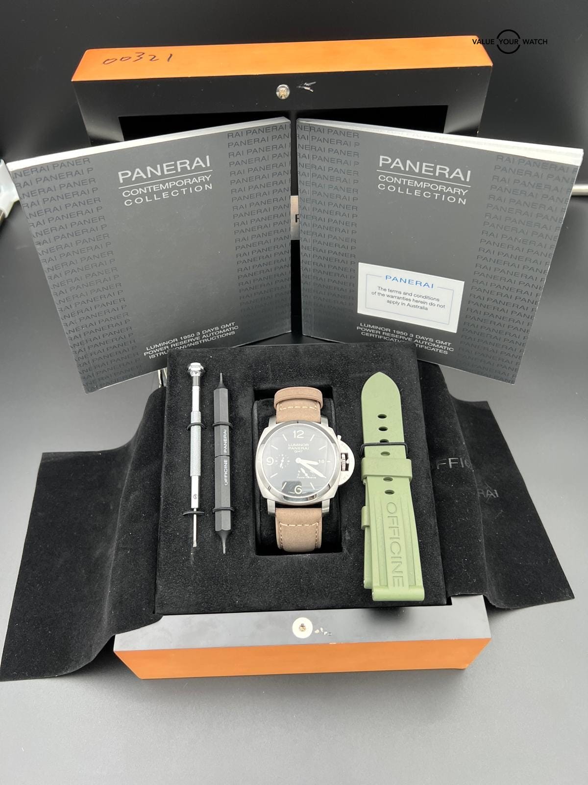 2013 Panerai Luminor GMT 1950 3 Days 44MM Black Dial Rubber Strap (PAM00321)