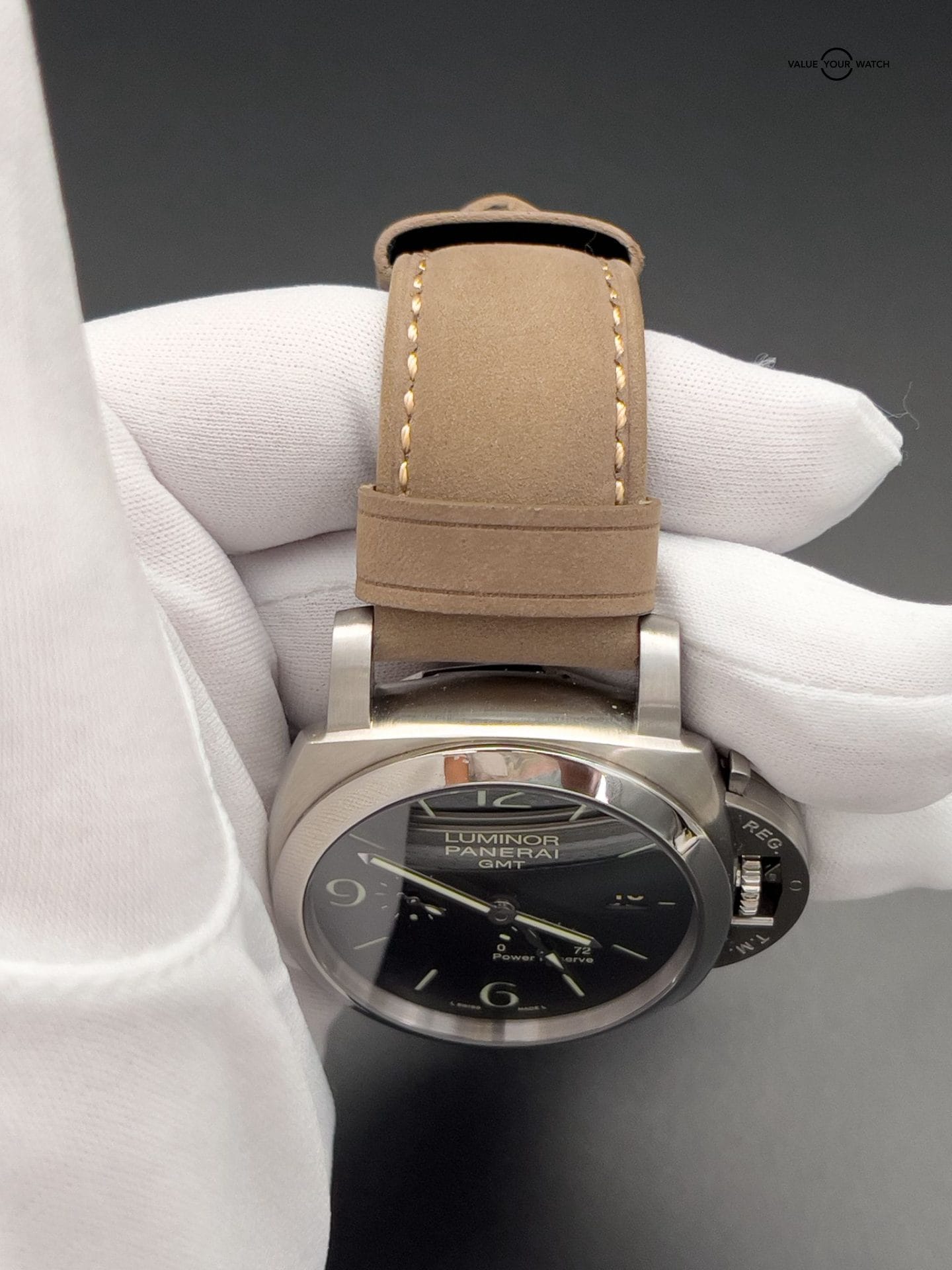 The Panerai Luminor 1950 3 Days GMT Power Reserve (PAM00321), is housed in a 44mm steel case with a smooth matching bezel. This eye-catching watch features a striking black dial adorned with luminescent Arabic numerals, hands, and hour markers. Its impressive functionality includes a Power Reserve Indicator, GMT Second Time Zone Feature, and a date display positioned at 3 o’clock. This is the perfect everyday timepiece that will sure create lasting memories and is the perfect conversation starter on any occasion. Don’t let this opportunity slip by; grab this exceptional timepiece today!