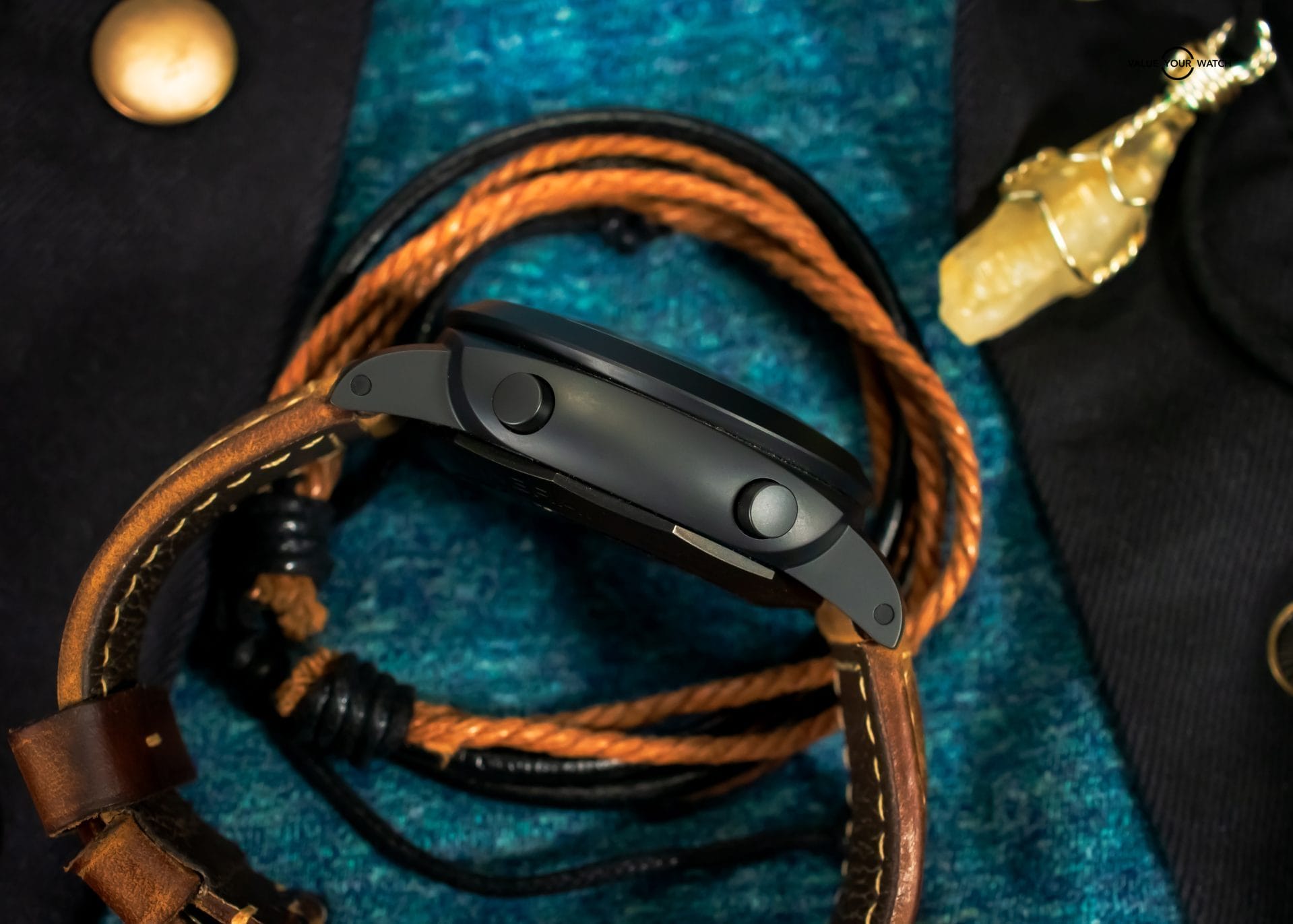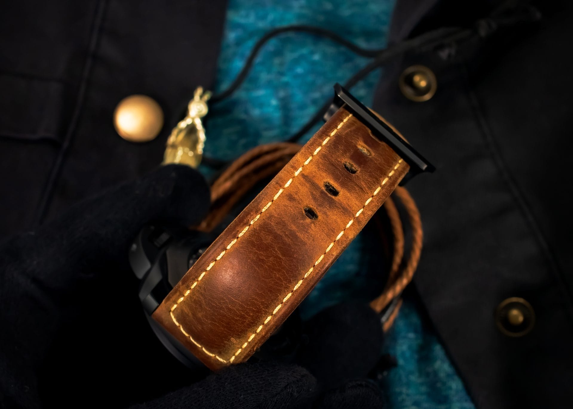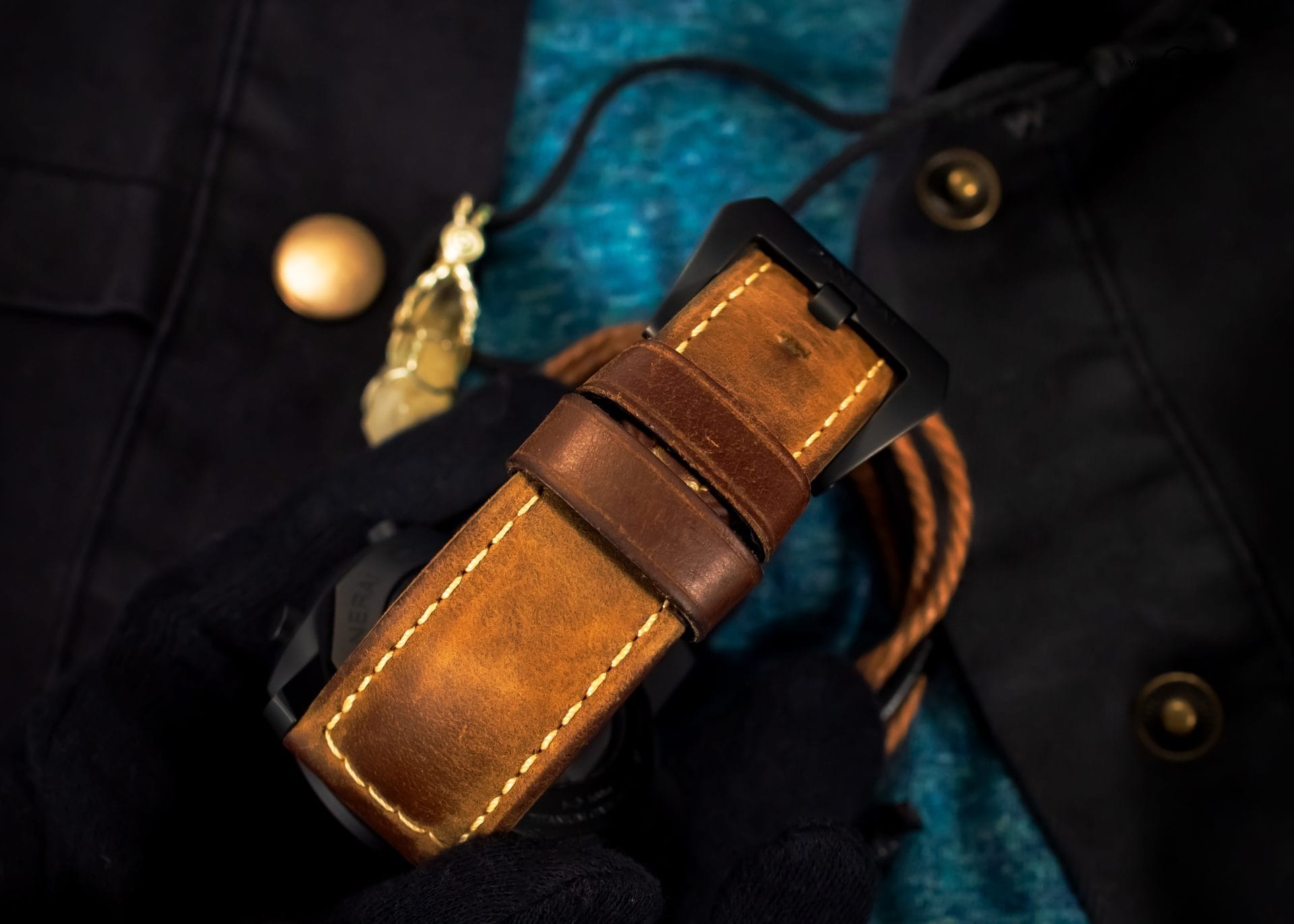 Bracelet – OEM brown suede leather, and OEM black rubber.