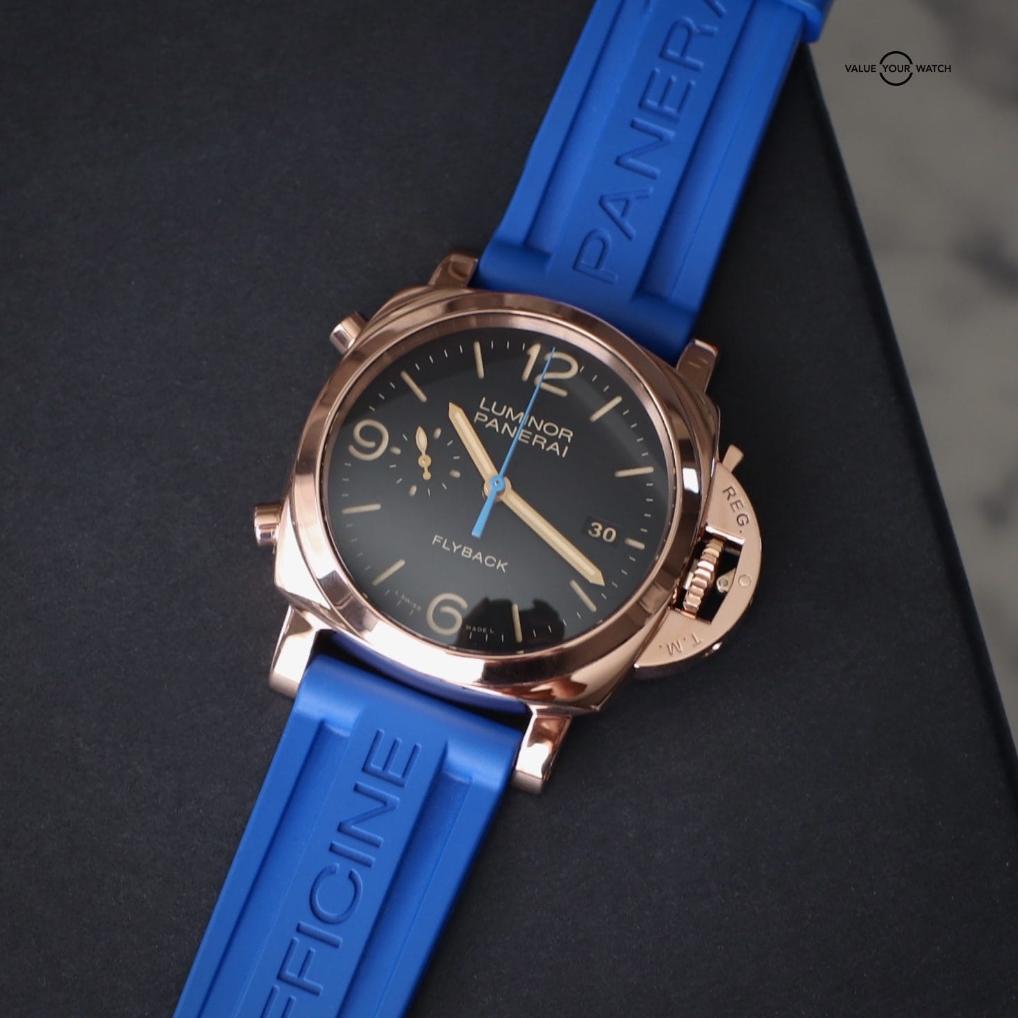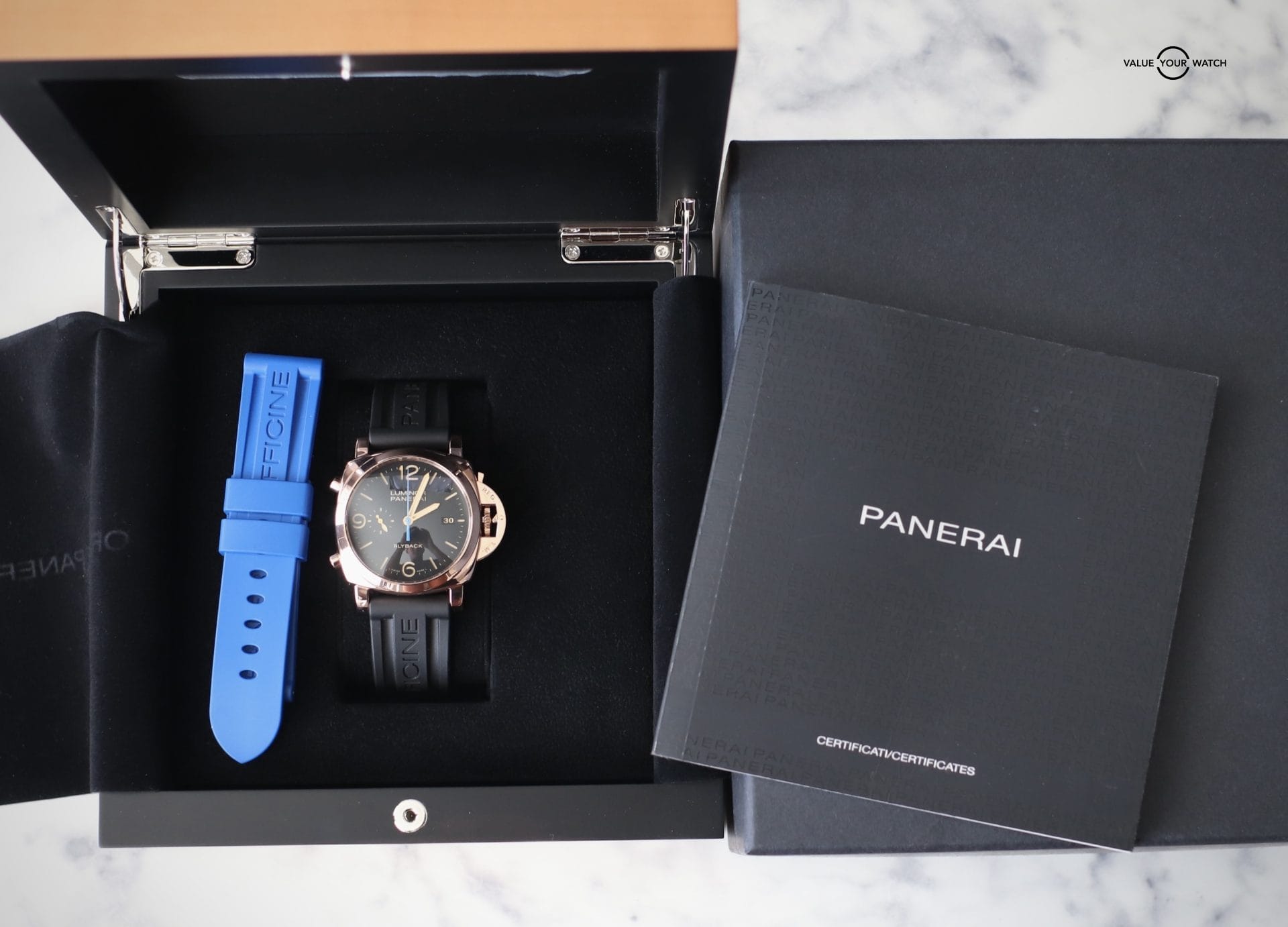 ✅ This watch comes COMPLETE with: inner and outer Panerai boxes, Panerai warranty booklet, and 2 Panerai straps (blue and black rubber)