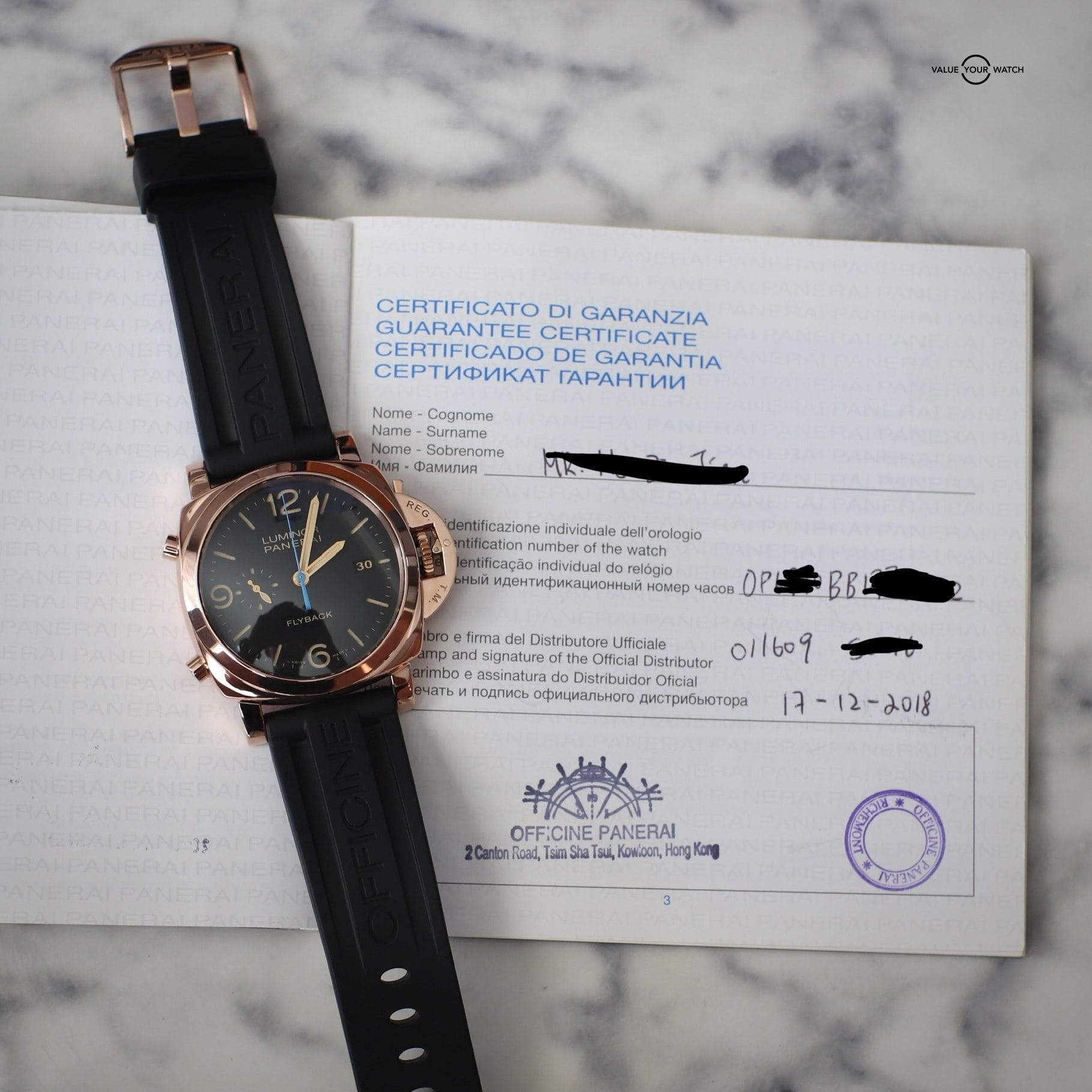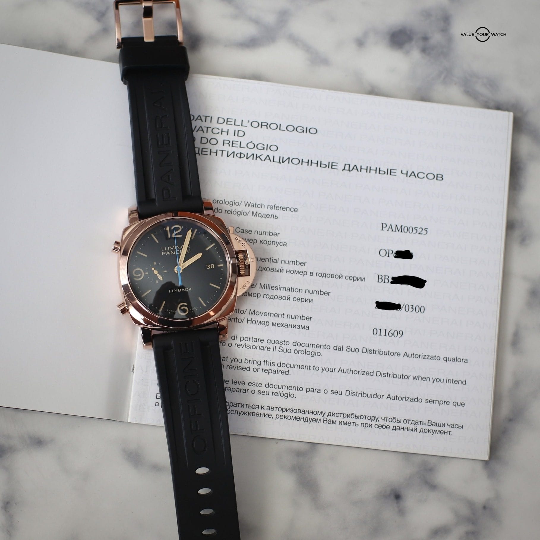 I would like to offer you my 2018 Panerai Luminor 1950 18k Rose Gold Flyback Chronograph 44mm – PAM00525 PAM 525