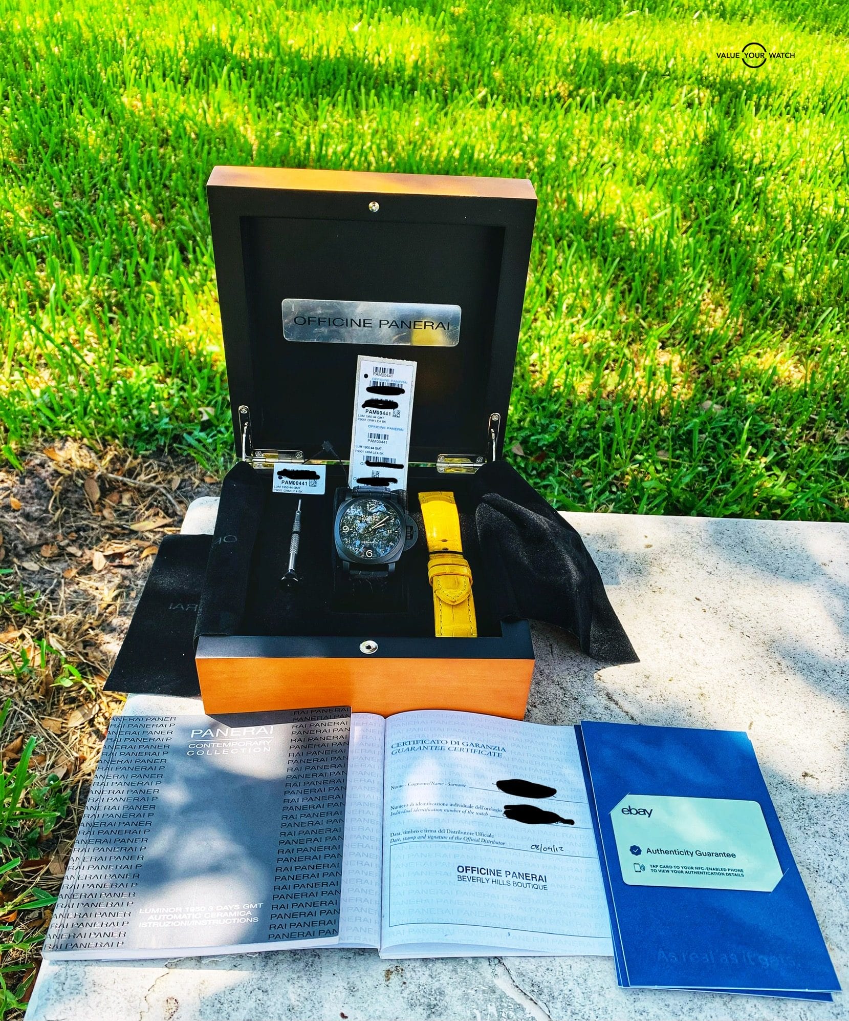 Comes with Panerai box, manuals, stickers, Guarantee Certificate from Panerai AD, tool, eBay authentication card, black OEM Panerai rubber strap, and extra leather strap.