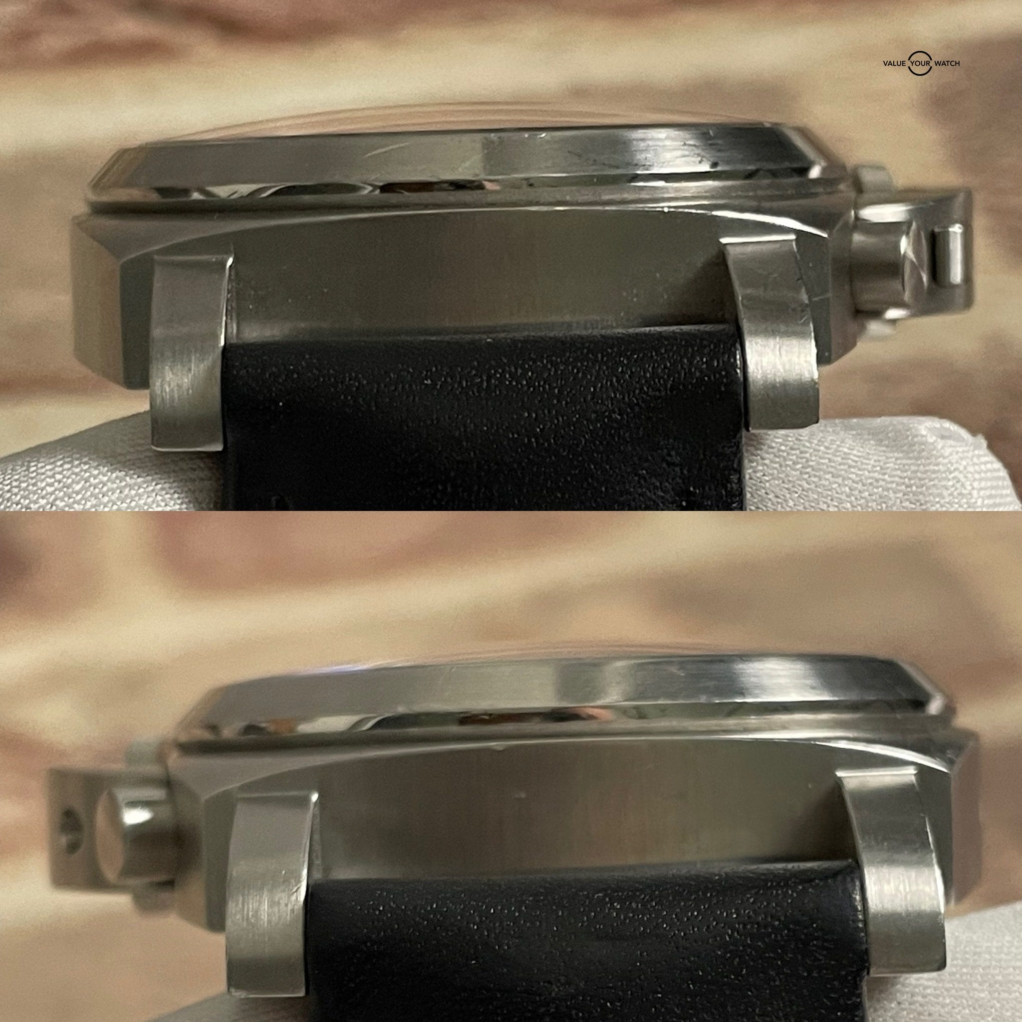 This watch includes box and papers from the AD it was purchased at, including the chronometer certificate and even the original purchase receipt. This piece is one of 1500 manufactured and has a serial number rang ‘O’ from 2012. It comes with 2 authentic Panerai straps, one black leather and one black rubber, as well as your choice of an additional after-market rubber or leather strap so you can change up the look of this watch to suit your mood and activities of the day. The case is unpolished so has its original factory brushing, but does show some signs of wear. It can however be polished back original before shipping if desired.