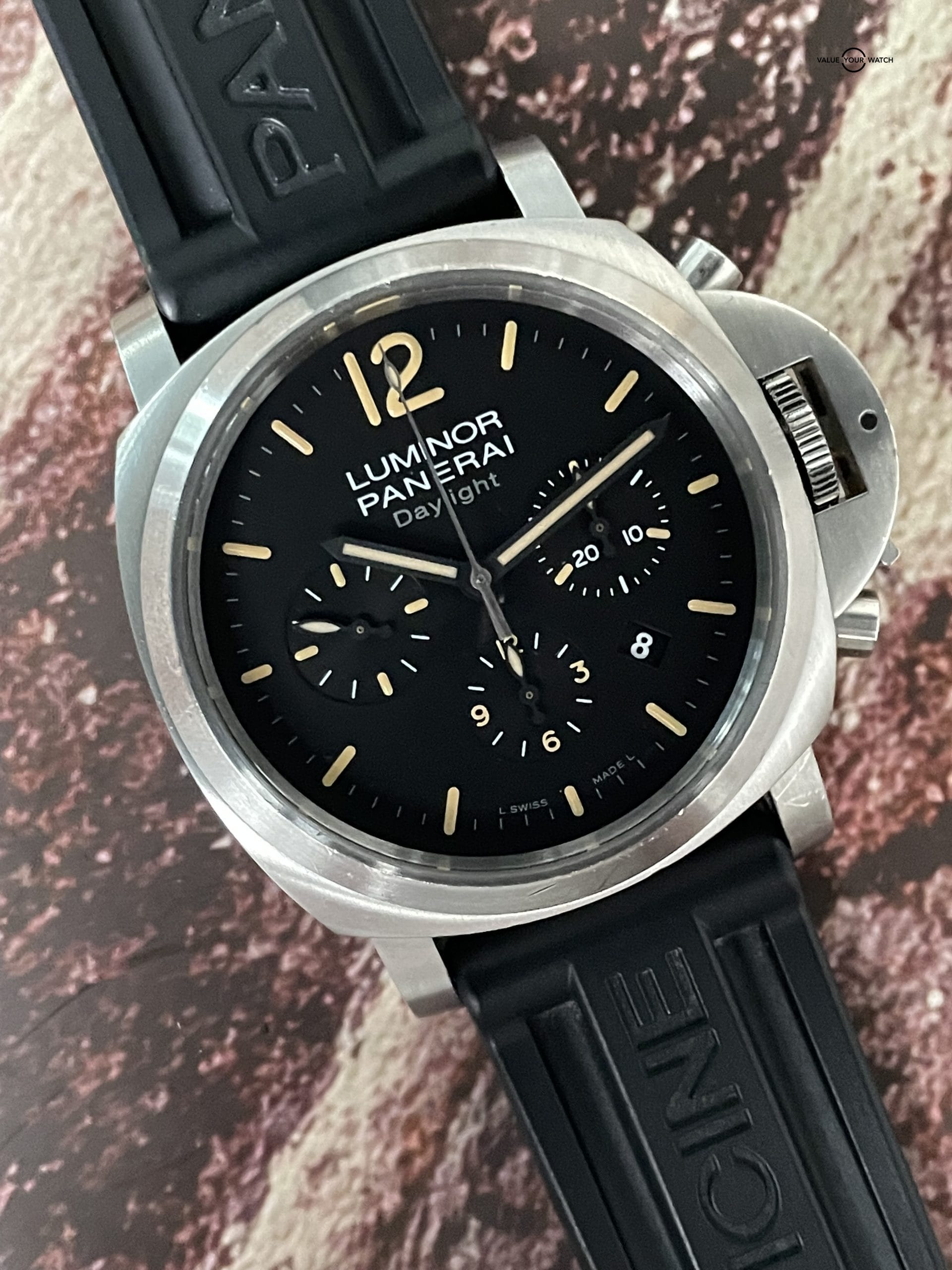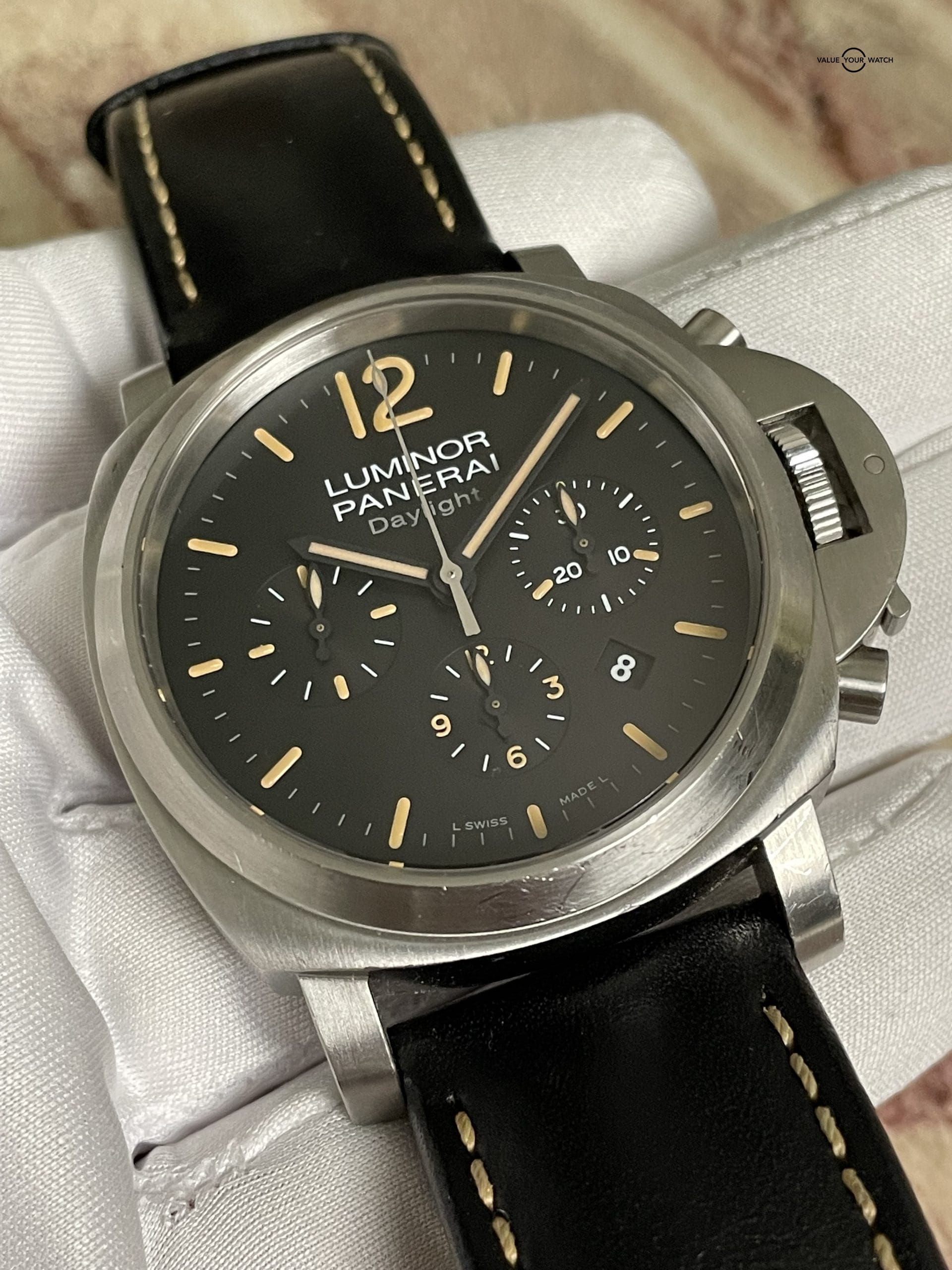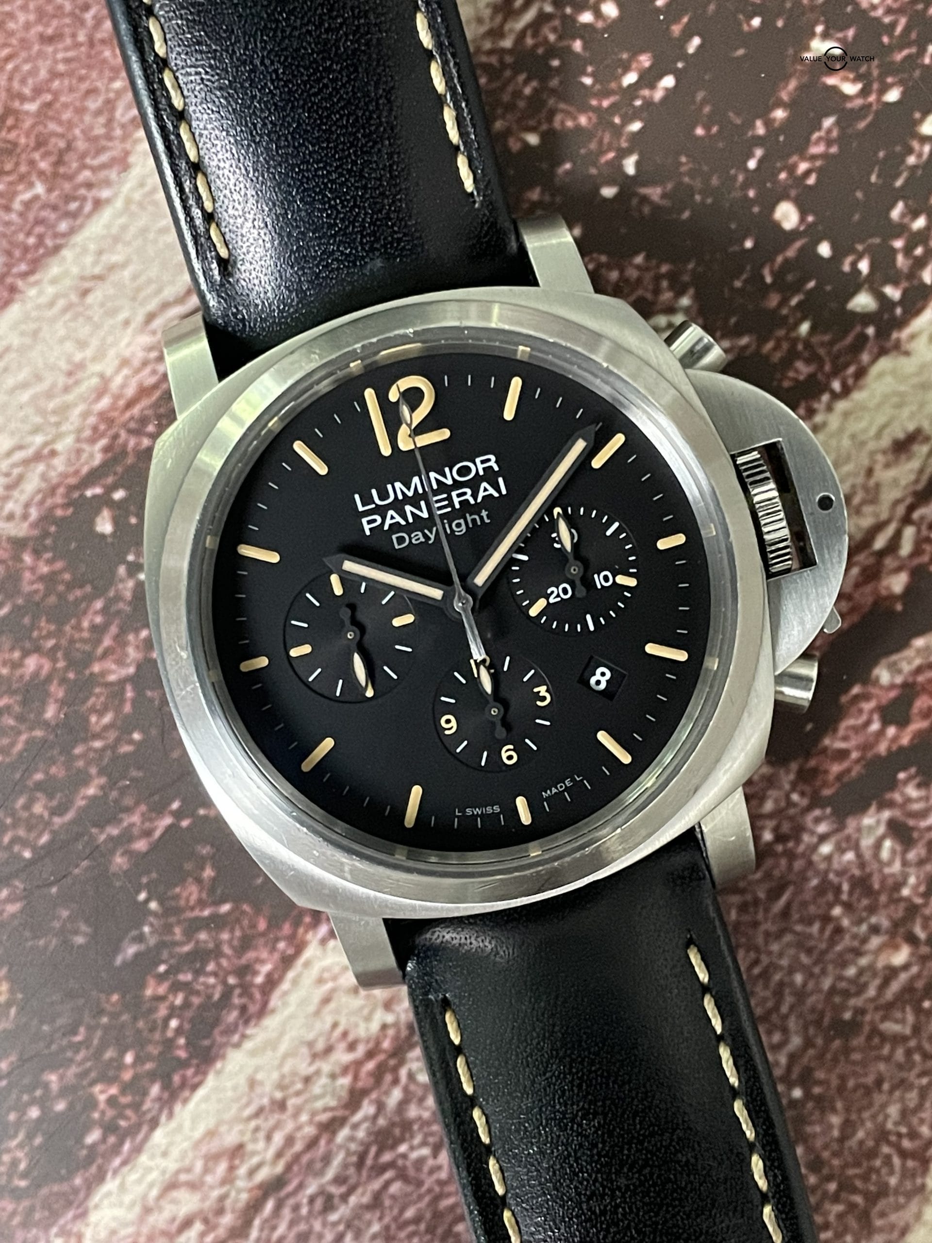 This is the Daylight version of the Luminor. The chronograph look and functionality makes it stand out and is more complicated than the standard Panerais. It is so enjoyable to work a Panerai chrono! A true all-round tool watch both from the aesthetics to the mechanics. Swiss watchmaking internals with the Italian styling elements we all love!