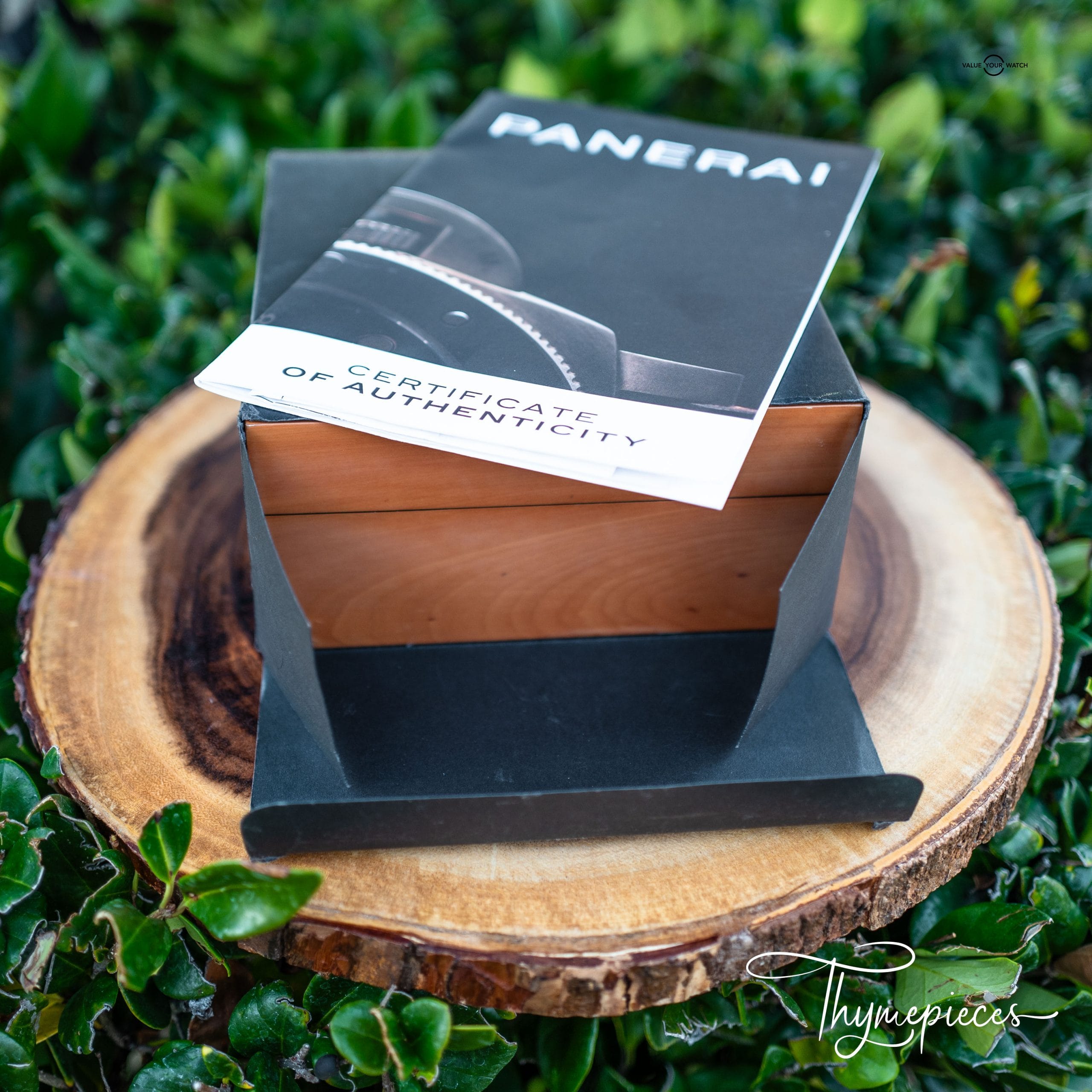 Original Outer Box, Original Inner Box, Original Strap, Additional Strap (for free), Original screwdriver, Certificate of Authenticity from Panerai Officine 2023, Receipts for Servicing, Receipts for Replaced Crown Unit and Bezel from Paneri Officine