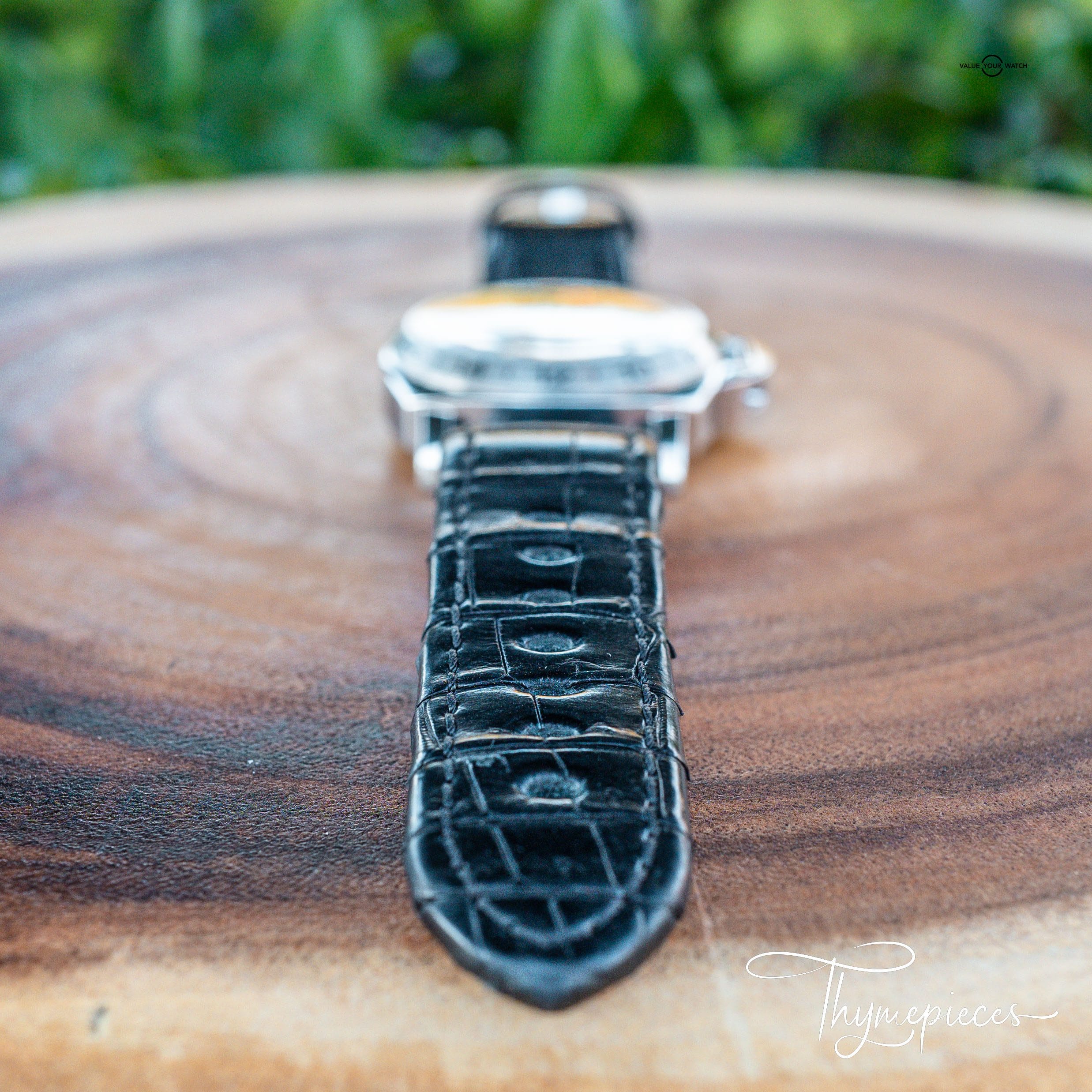 Paneristis will appreciate the original double box, original black strap, and most especially the cracked tritium on the minute hand.
