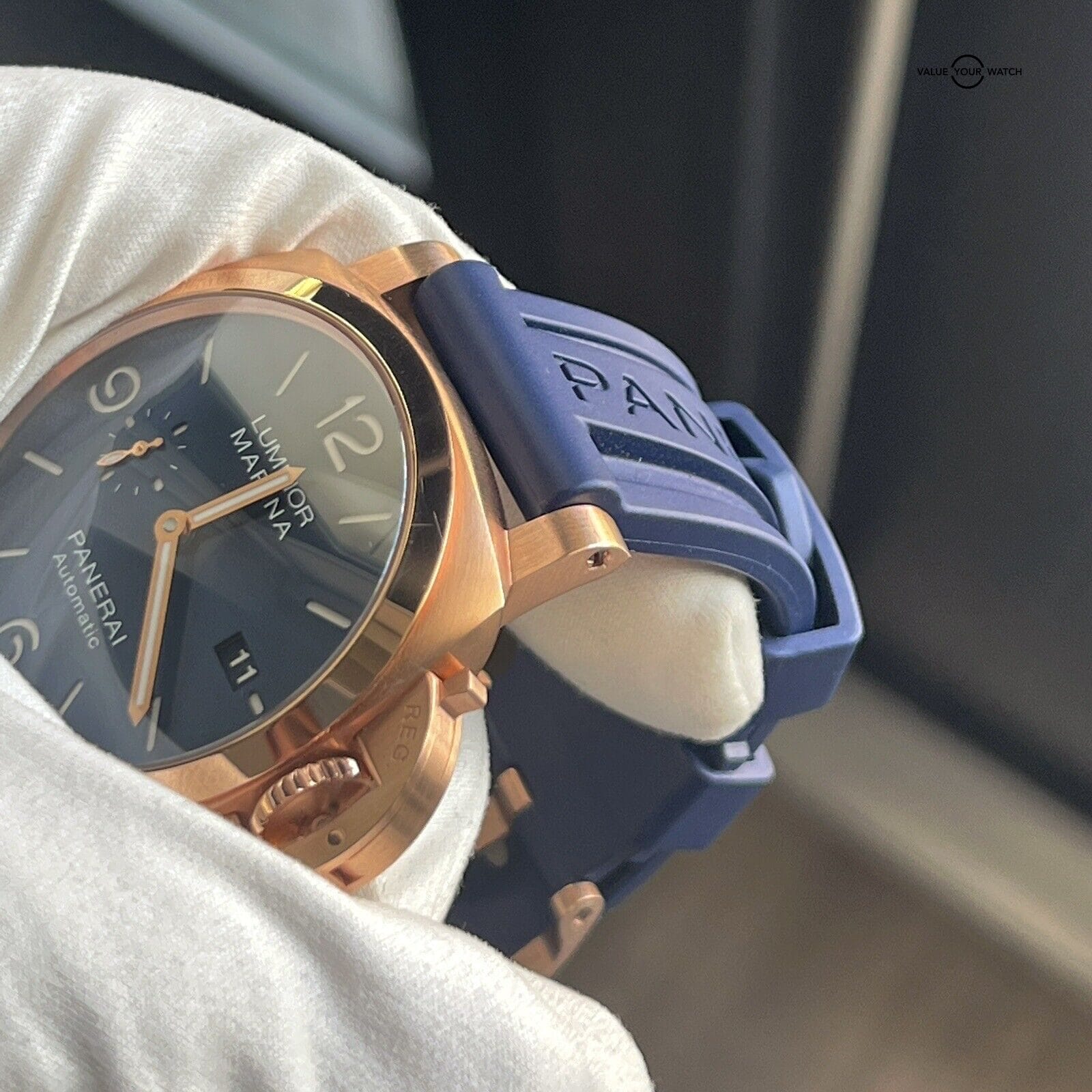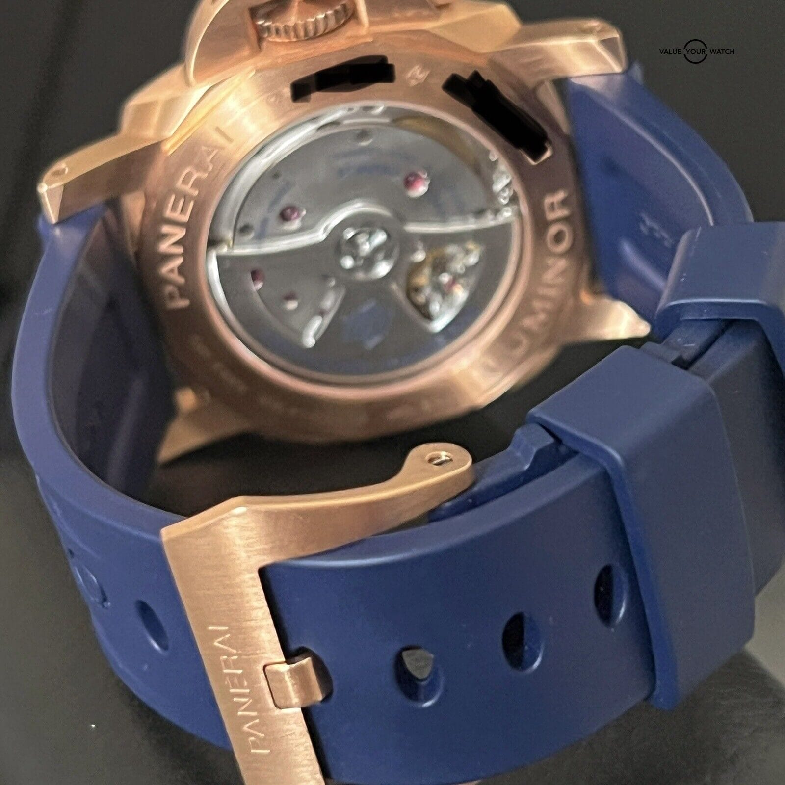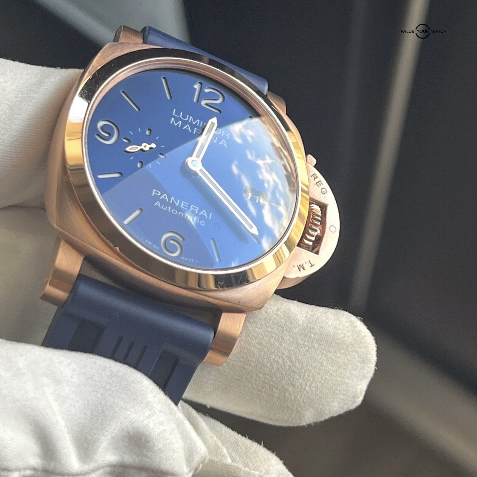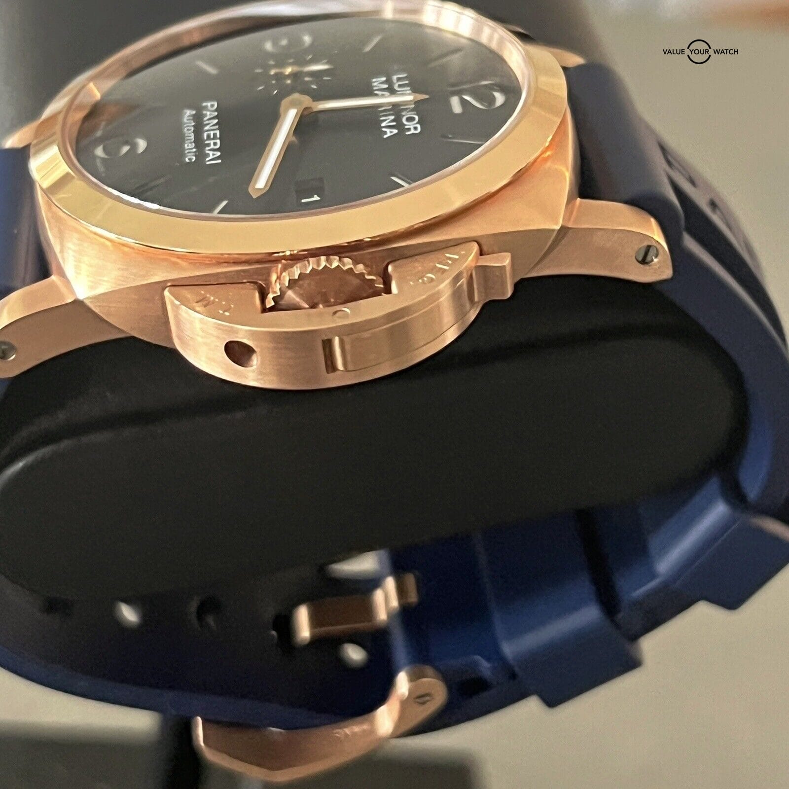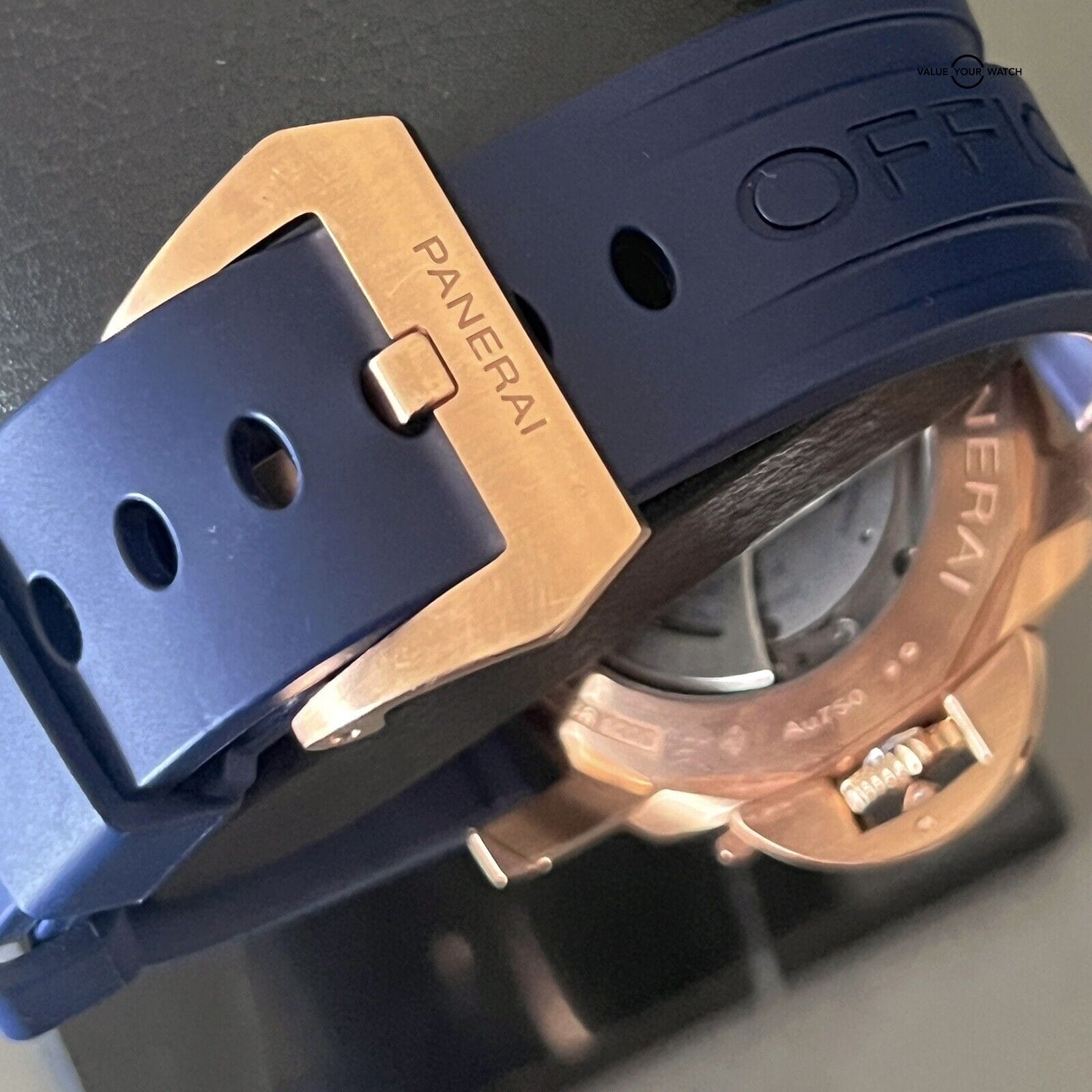 Panerai Luminor Marina Goldtech Sole Blu 44mm 18k Rose Gold Men’s Watch PAM01112