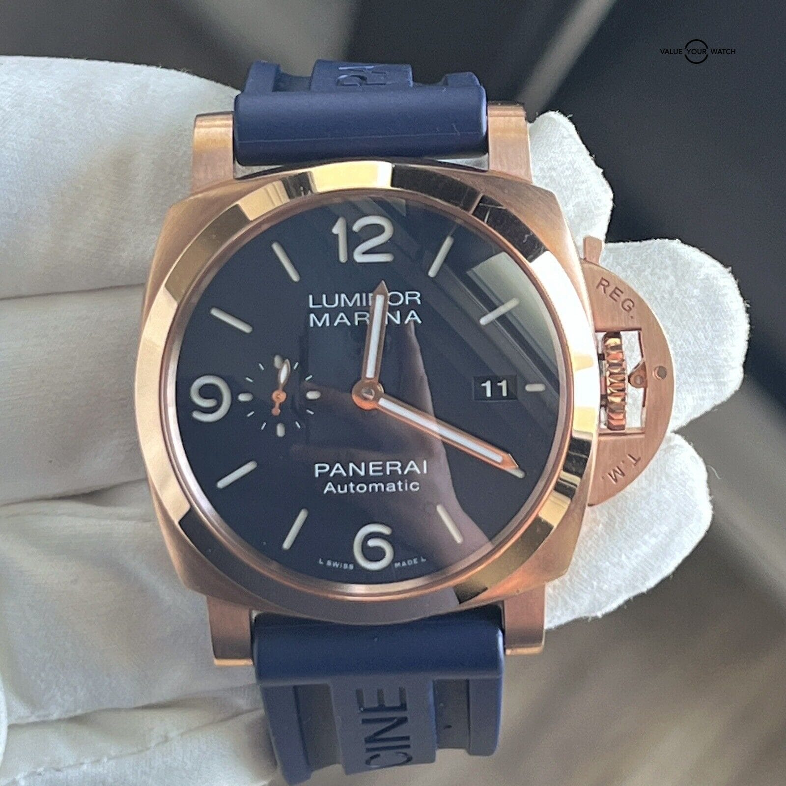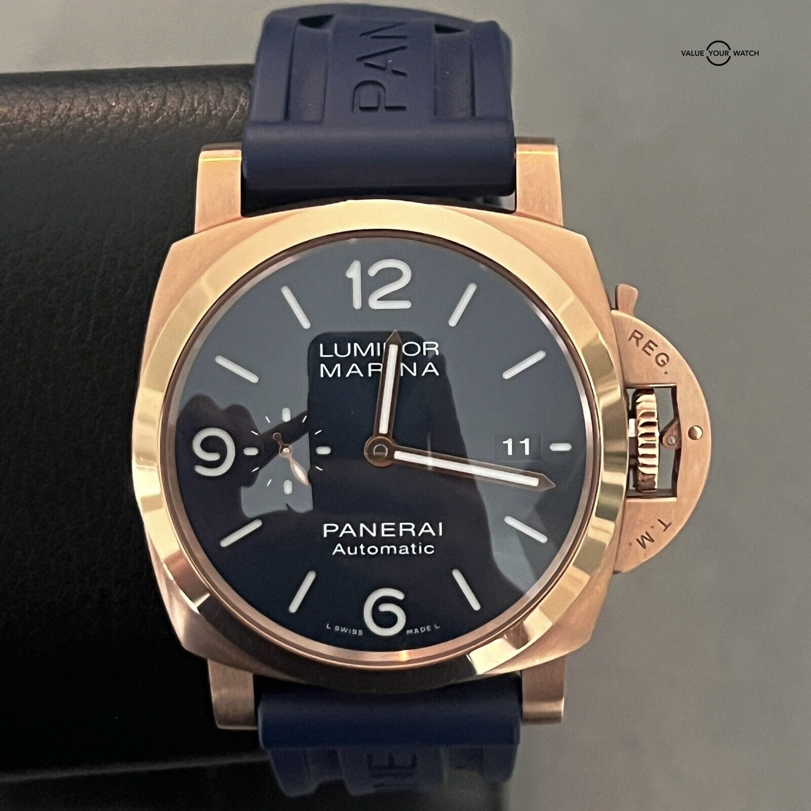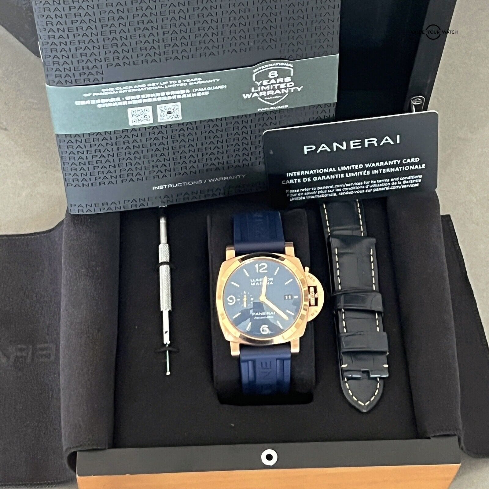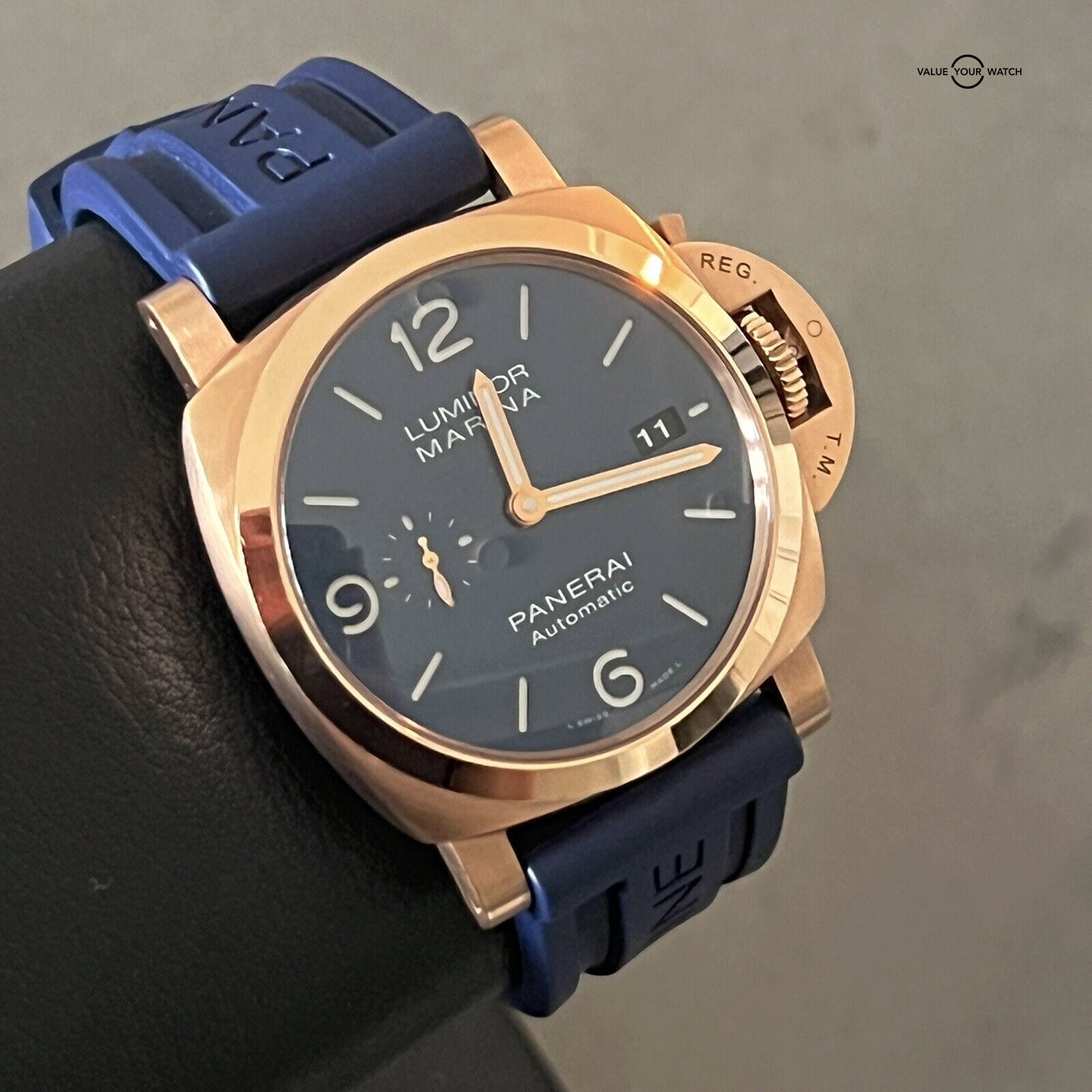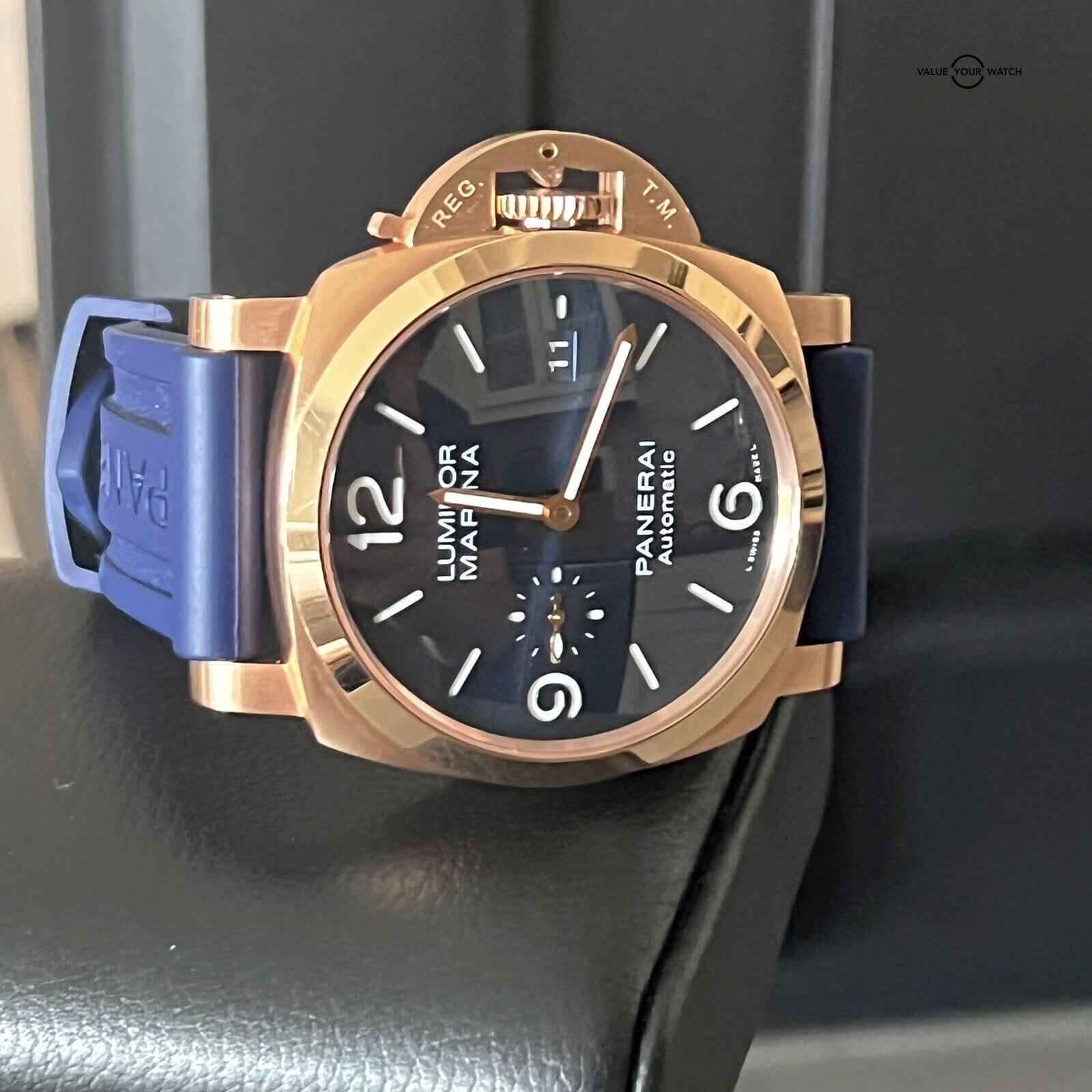 Panerai Luminor Marina Goldtech Sole Blu 44mm 18k Rose Gold Men’s Watch PAM01112